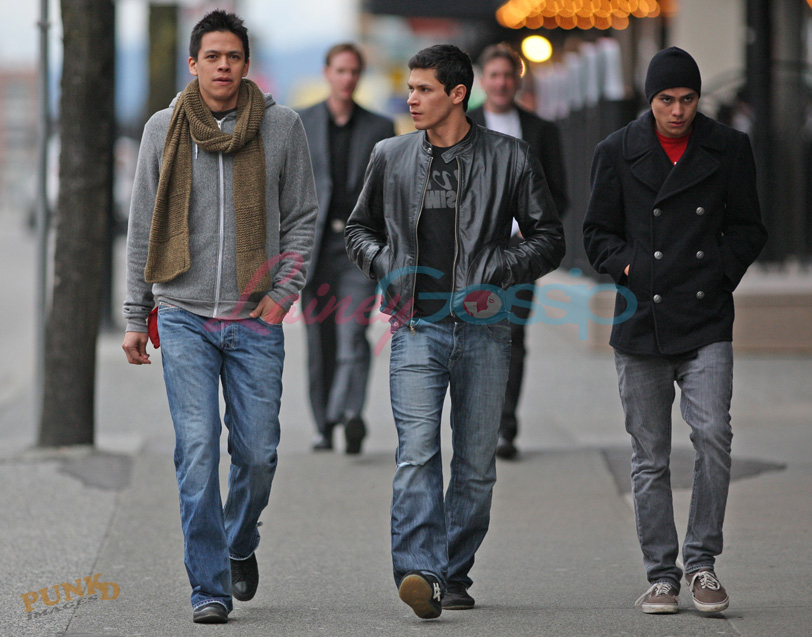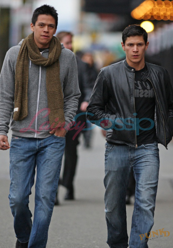 Wolf sighting in Vancouver yesterday. From left to right: Chaske Spencer (Sam), Alex Meraz (Paul), and Kiowa Gordon (Embry) looking all wolfy badass but also kinda virgin paparazzi adorable...