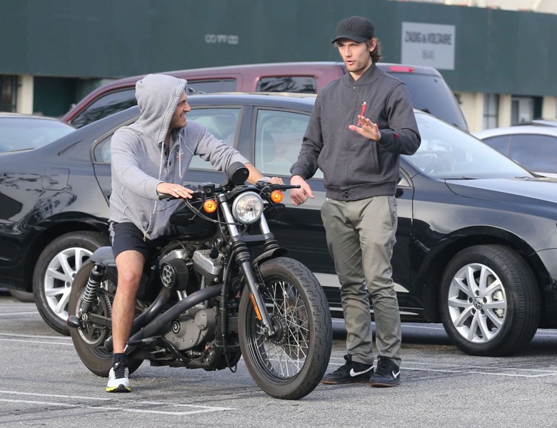 Here he is with a friend in West Hollywood yesterday.