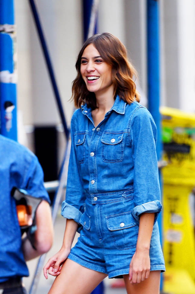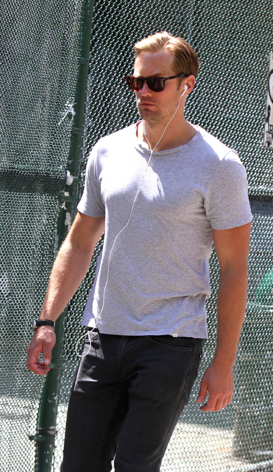Both Alexa Chung and Alexander Skarsgard were photographed in New York yesterday. She was promoting a clothing line in a cute denim romper with tricked out booties and he was walking around in a white t-shirt, trying to go unnoticed. Alex been on a break for a while, ever since wrapping on Tarzan. I was wondering whether or not there would be a Tarzan panel at Comic-Con. There wasn’t. I don’t remember seeing a trailer for it yet either, have you? I just looked online and, hilariously, found this, obviously not legit but, still, great…in its own way: