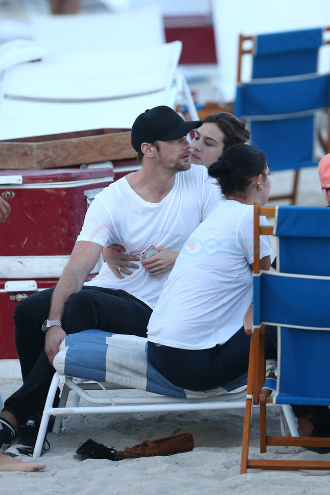 Alexa Chung and Alexander Skarsgard rang in 2016 together in Miami. Check them out on the beach, hanging out with friends. How is it that Rita Ora can show off a bikini every five minutes in Miami, giving us great shots of her nipples, and we can’t get any of him with his shirt off? I just realised I know Rita Ora’s cup size but I don’t know a single one of her songs.