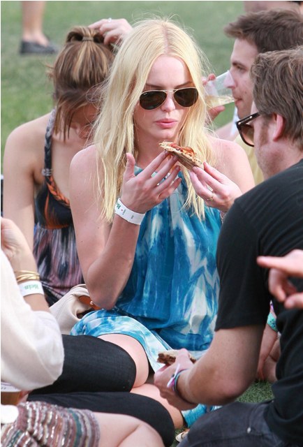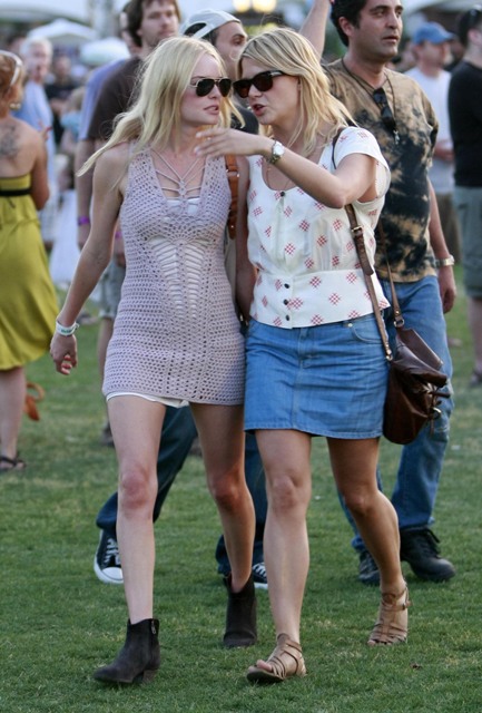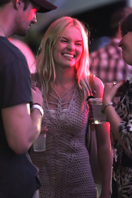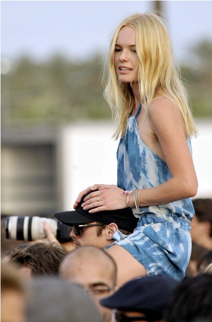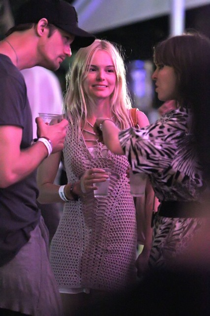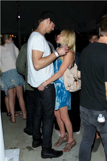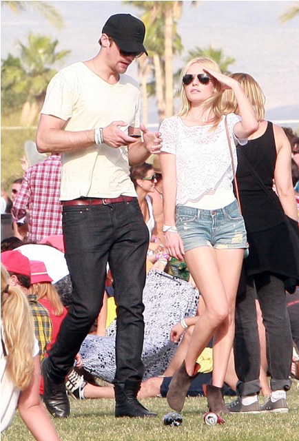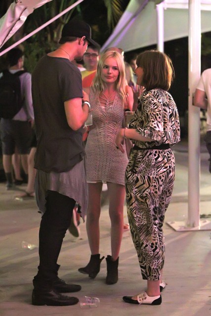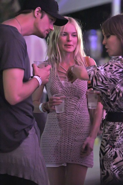 Alexander Skarsgard and Kate Bosworth were all over Coachella this weekend. She brought her cutest oufits, they did nothing to hide their affection, they wandered about in the open, she tried to eat food, she sat on his shoulders, calling attention to the fact that she was on his shoulders, and invited the paps to shoot her... and believe me they all know, they ALL know that the place is crawling with photographers. But as you can see, Alex and Kate didn’t seem to have a problem with it until...
