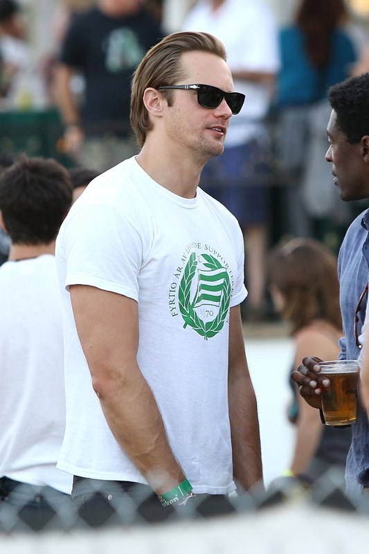 It’s a big place, no doubt. They can probably avoid each other quite easily. And they can run into each other quite easily, considering how many VIP sponsor tents there are and how much they like being in those VIP sponsor tents for free sh-t. Jonathan emailed me the other day asking where the famous people pee at Coachella. Luxury mobile toilets. Luxury is a fluid definition but it’s probably a lot cleaner than where everyone else is eliminating their beer sh-ts. This is why I avoid music festivals: beer sh-ts. People drink beer. Then people sh-t. I don’t know how we got from Alexander Skarsgard and Kate Bosworth to beer sh-ts.