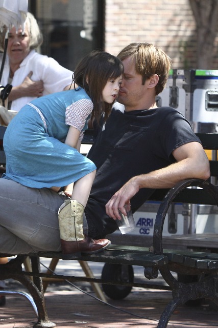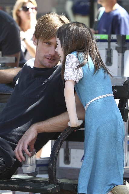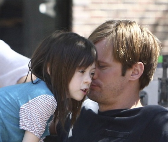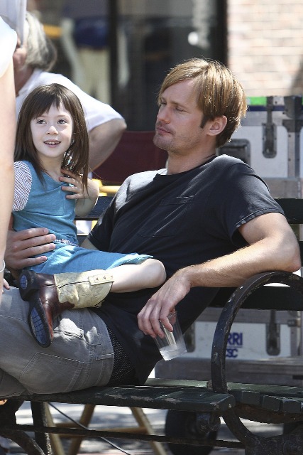 But you are not here to discuss the impact of divorce on children. Because you’re all jizzy for Skarsgard making cutesy faces of his own with the girl. Does it make up for how gross Eric is on True Blood this season? Does it make up for how gross True Blood is in general this season? I’ve not watched in 3 weeks. But someone sent me a video of Eric and Sookie f-cking in some winter wonderland and I wanted to kill myself. Her love scenes with Stephen Moyer/Vampire Bill were actually a lot better. So you can imagine how lame she and Eric are.