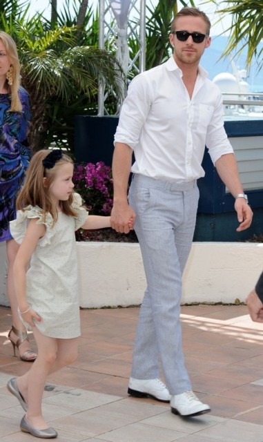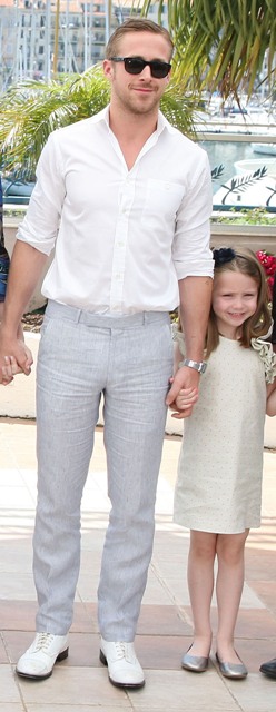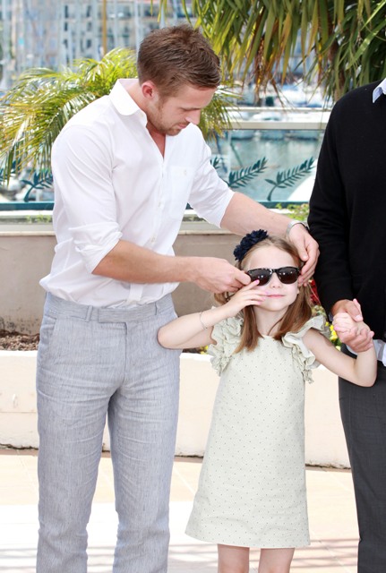 It’s kind of a signature move for Ryan Gosling. And, perhaps, to those who aren’t feeling him, part of his Try. To cute-pose with his little girl co-star Faith from Blue Valentine. During promotion, at every opportunity, he’d give us all the quivers with her in his arms.