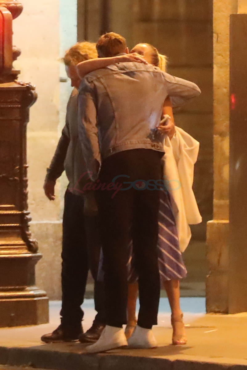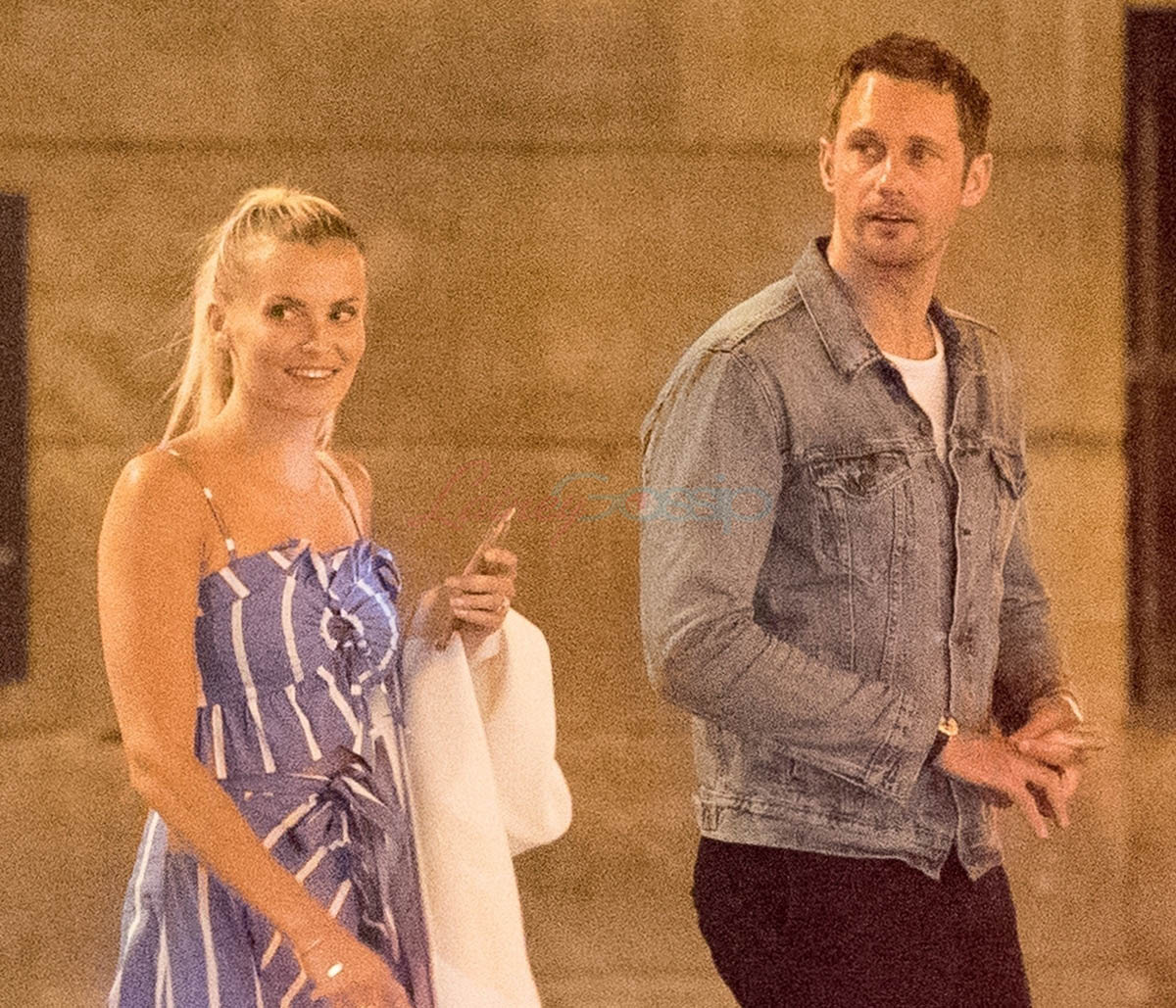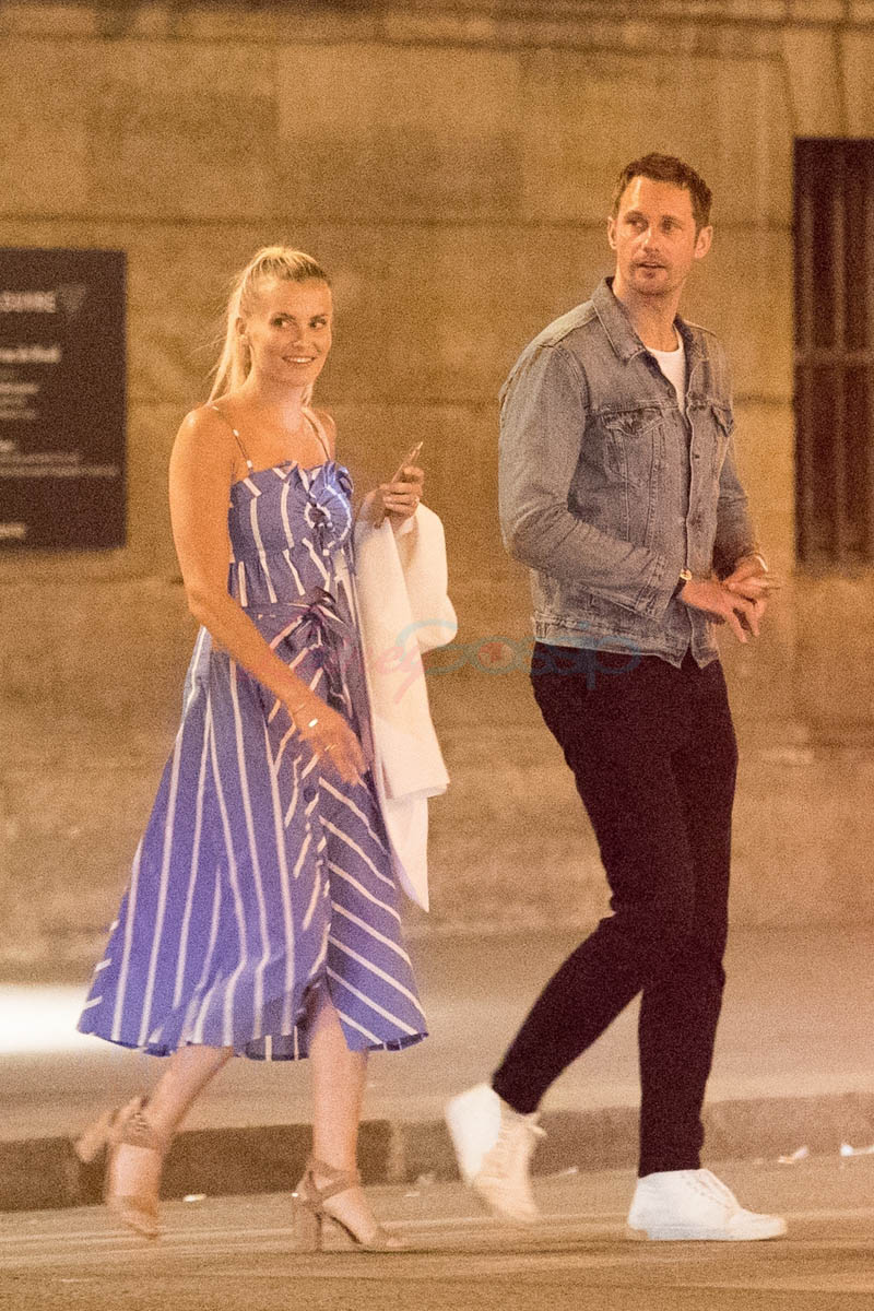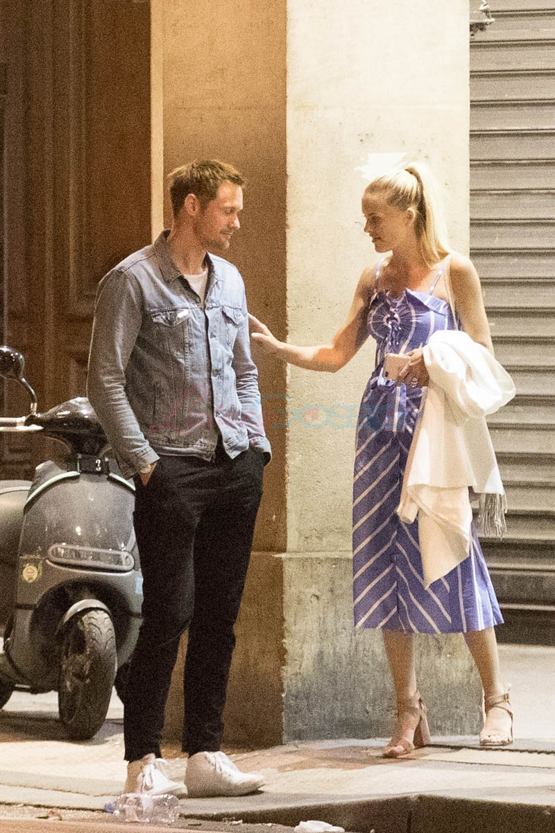 There were rumours earlier this month that Charlize Theron and Alexander Skarsgard are dating. Can’t remember which US tabloid tried to make it happen. In Touch, US Weekly, Star, Life & Style, OK! - one of those, take your pick. It wasn’t worth mentioning. And now here’s Alex in Paris with an unidentified blonde woman and some other friends having dinner the other night. They seem like they enjoy being around each other but my Photo Assumption isn’t pinging anything more, at least not from these shots.