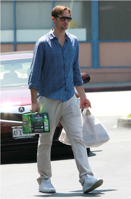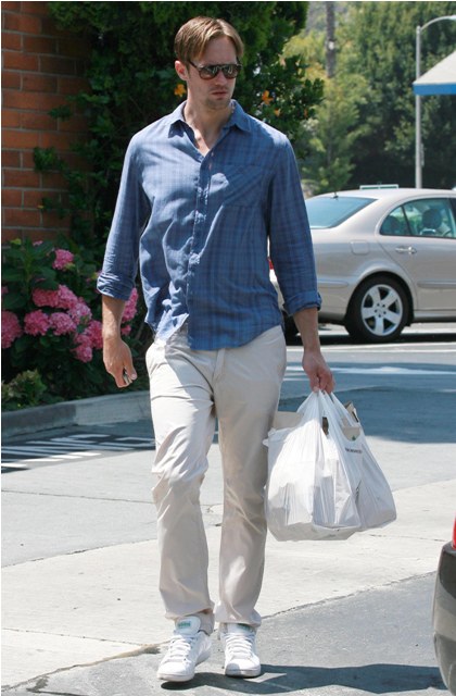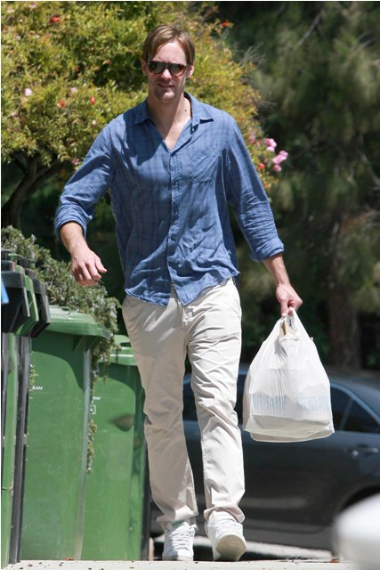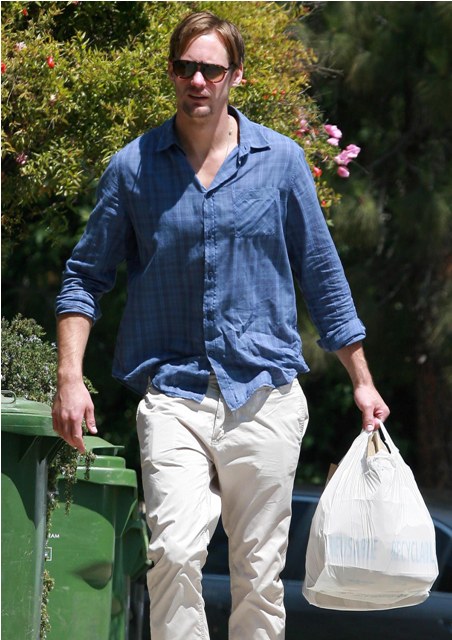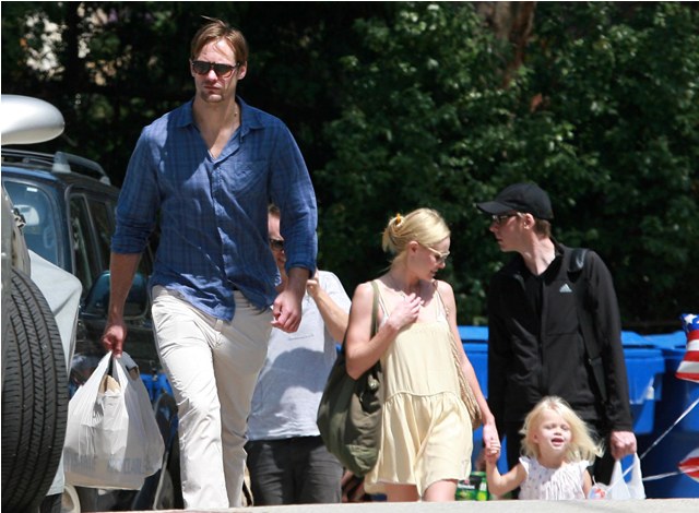 That’s Alexander Skarsgard, seen here heading to a party at a friend’s place with his girlfriend Kate Bosworth, now a Stage 5 Clinger which means that, like Jessica Biel before her, now that she’s hooked her ass onto the man’s spotlight, she will not and cannot be removed easily.