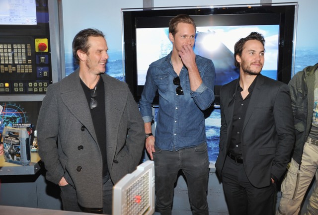 Taylor Kitsch and Alexander Skarsgard were at a toy fair yesterday promoting Battleship.