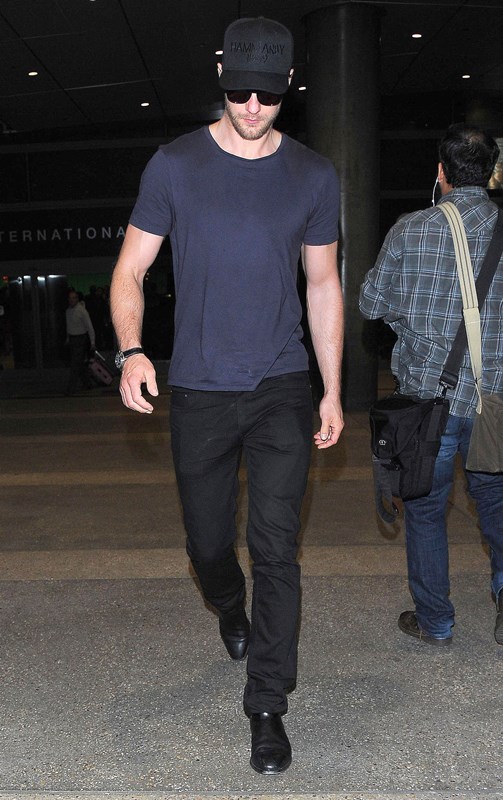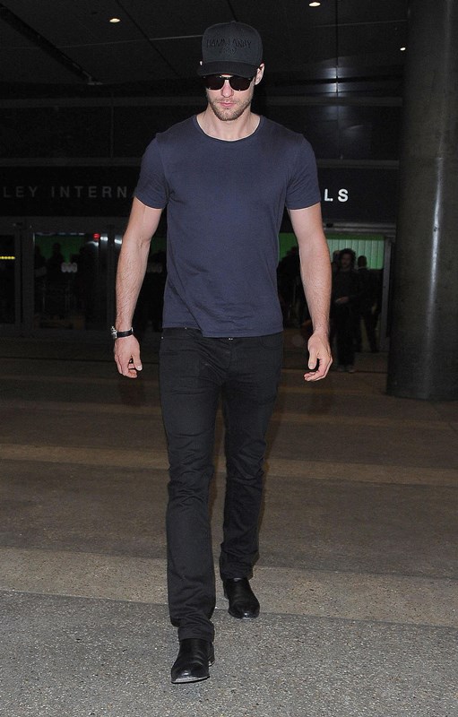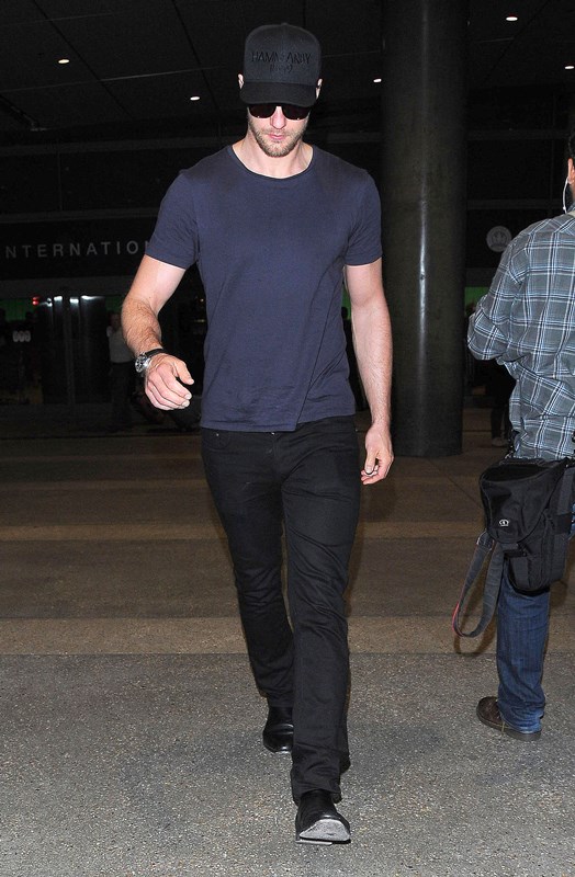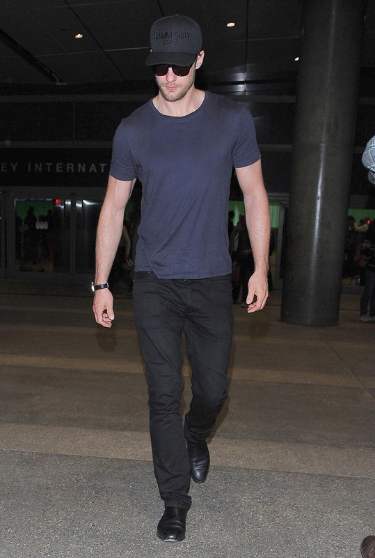 Here he is yesterday, arriving back in Los Angeles yesterday, likely from London. He was pretty low-key when he was over there too. I think I only saw a couple of pap shots of him at the Chiltern Firehouse, where everyone goes, and that was before the summer even started.