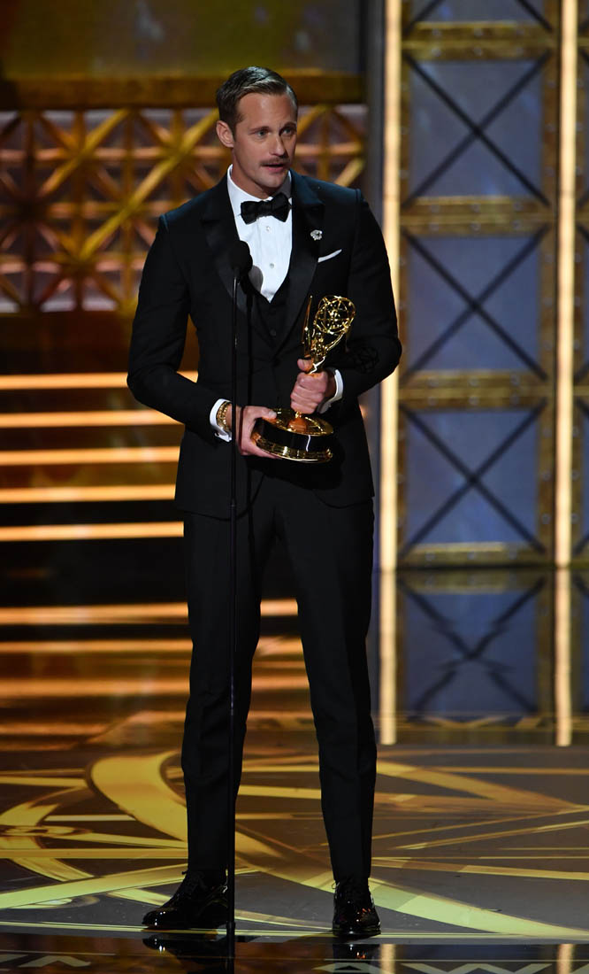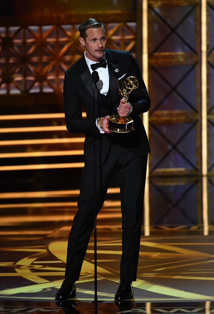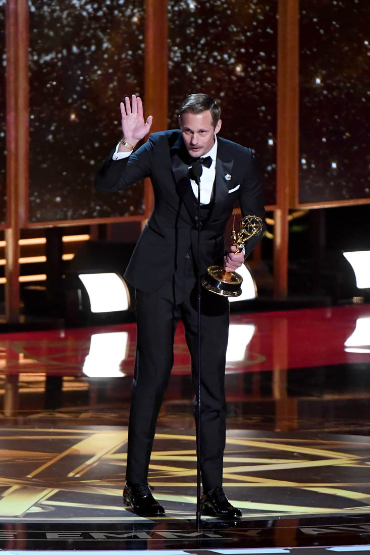 So, Alexander Skarsgard is now an Emmy winner. Perry Wright was a singular role. It’s a performance he absolutely deserved to be rewarded for. Skarsgard’s Perry was haunting and horrifying. We now know that he can deliver on screen in multiple roles (including True Blood) and with this affable Emmys appearance, his career is on a serious upswing. (Lainey: haha, unintentional Tarzan joke!)
