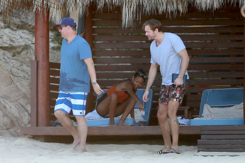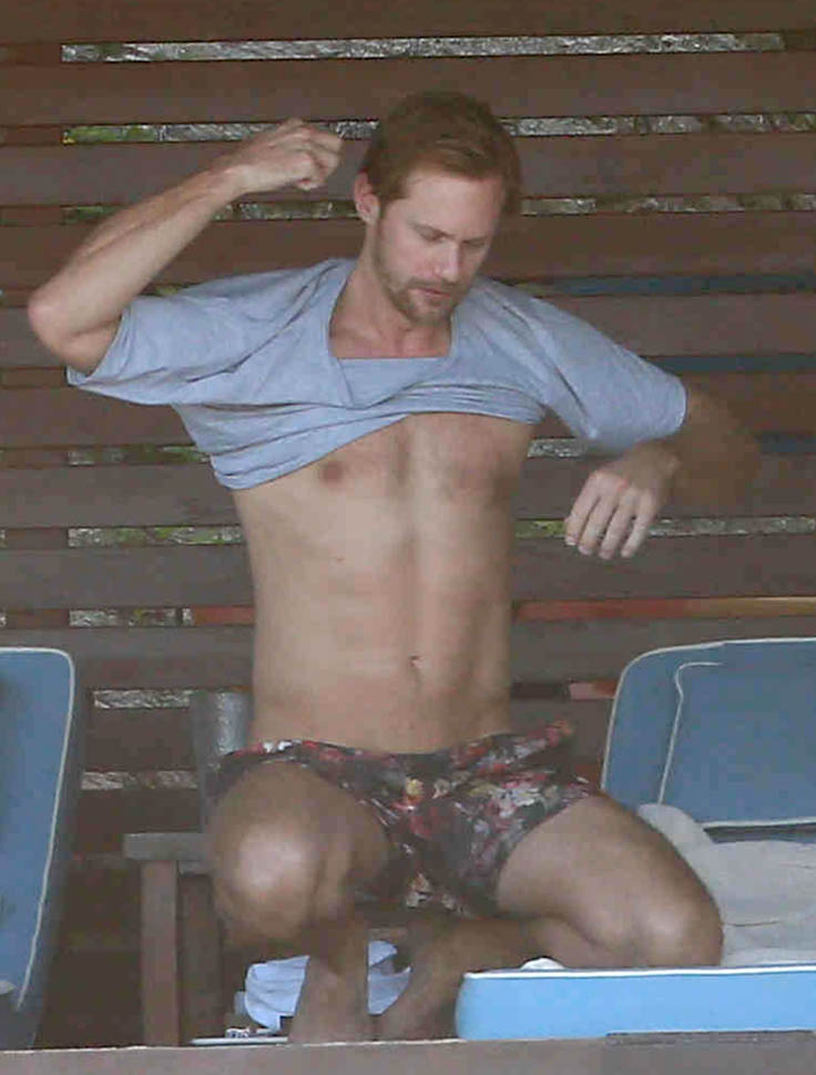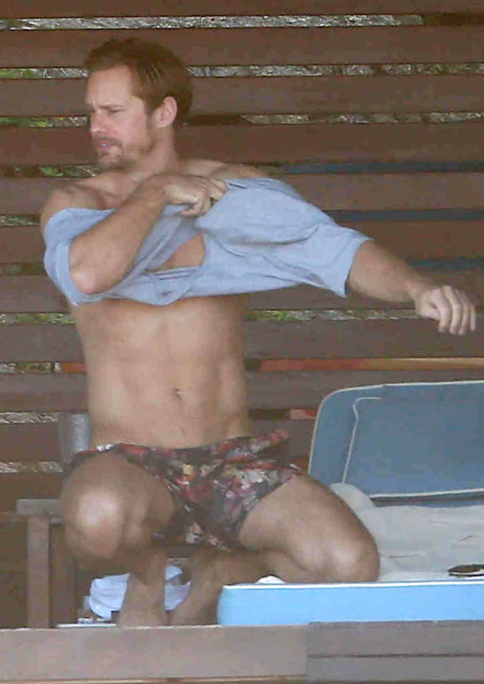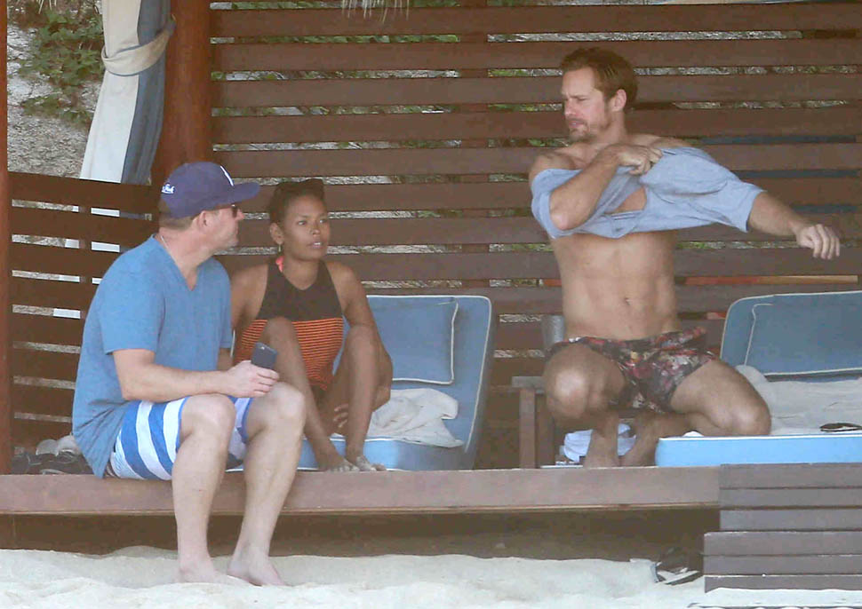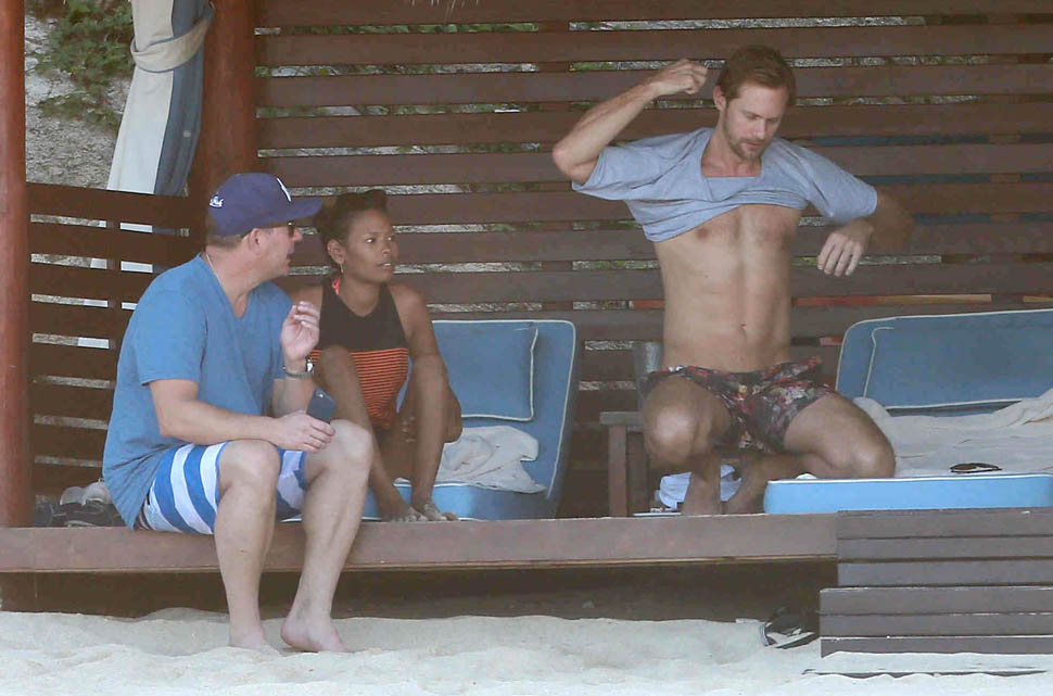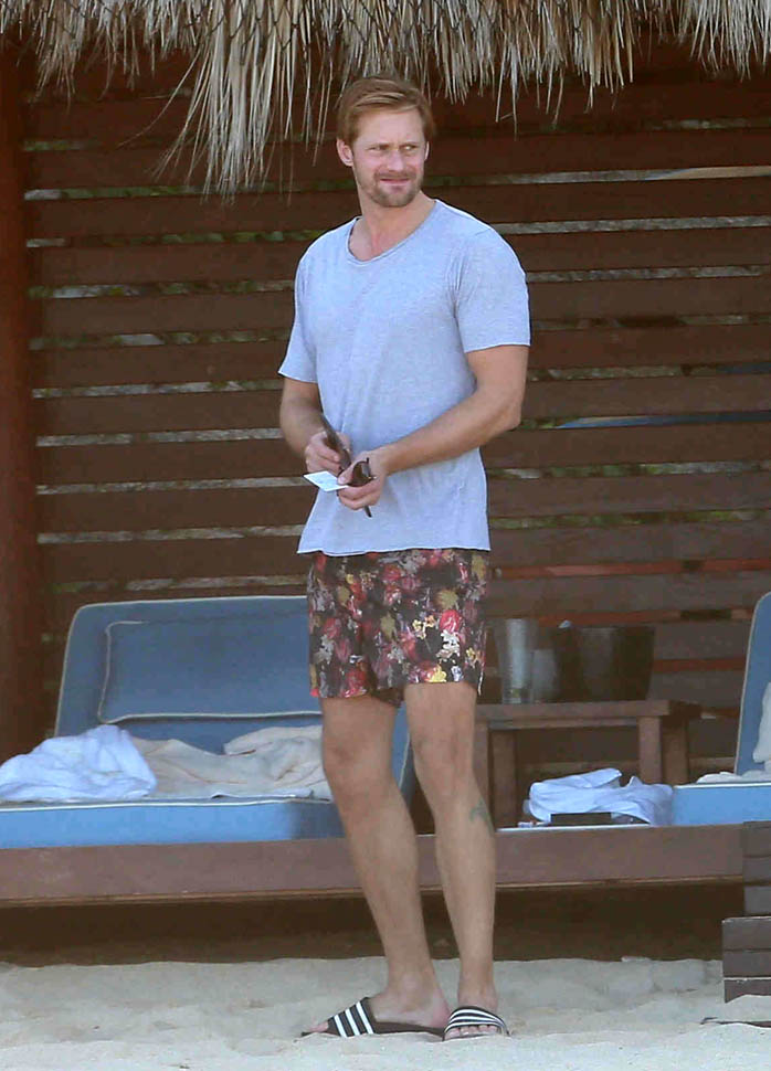 Have you watched the Funny Or Die videos of Alexander Skarsgard and Jack McBrayer? It was part of Greenpeace’s Save The Arctic campaign and it’s pretty cute – and informational! Also, it’s the most I’ve been attracted to Alexander in a long, long time. The feeling is so primitive I’m almost ashamed of it. And it’s definitely a lot stronger seeing him in the cold than it is seeing him in the sun, on holiday last week in Mexico. Am guessing too that he’s probably not too happy about us seeing him this way either, considering the juxtaposition of the Funny Or Die videos being released a couple of days ago and now he’s taking it easy on the beach.