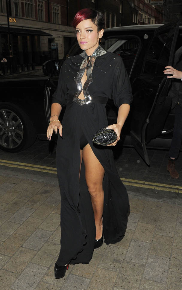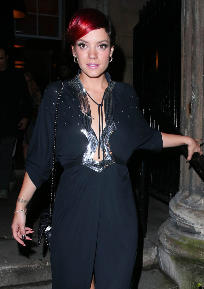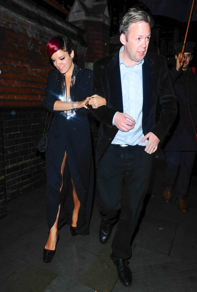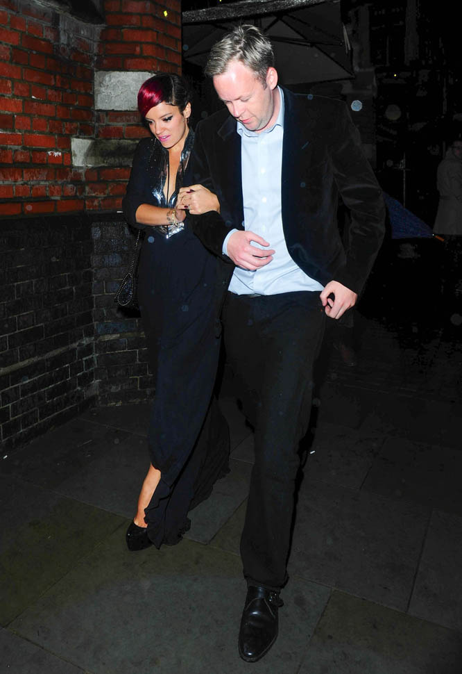 Attached – Lily and husband Sam Cooper leaving the Chiltern Firehouse last night.