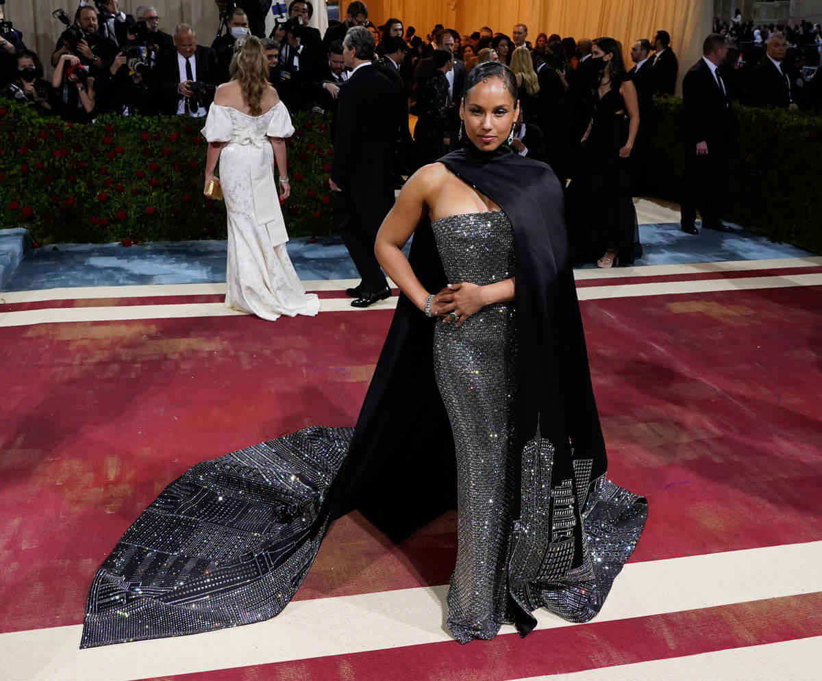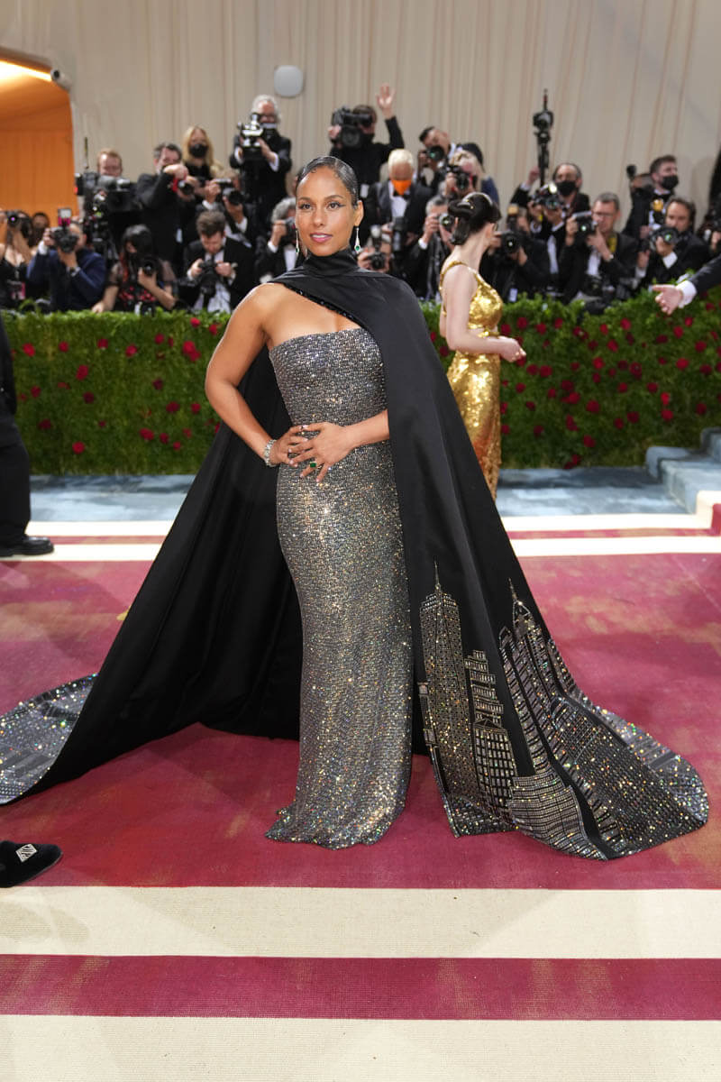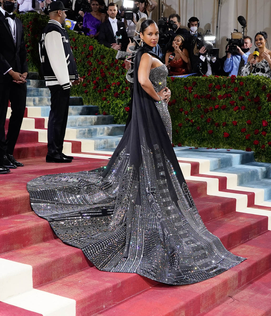 One of my best dressed picks from this year’s gala is Alicia Keys. Hands down. If there’s one thing Alicia’s always going to give you, it’s New York City and she did not disappoint. The “Empire State of Mind” singer showed up in a dress inspired by the Empire State Building. The look designed by fellow New Yorker, Ralph Lauren, features a jewelled strapless gown and one-shouldered black cape with a jewelled NYC cityscape. And the lights were hitting it just right on that carpet. It was extra and over the top in a controlled and classic way. Check out the fourth shot in this carousel.