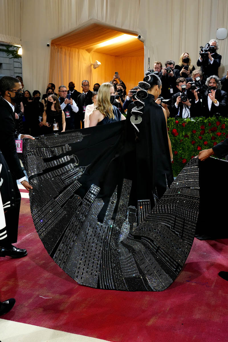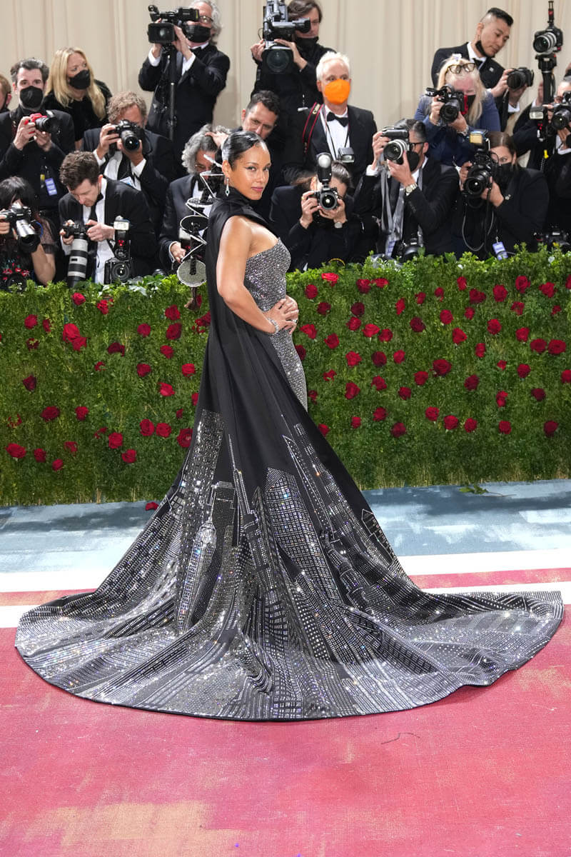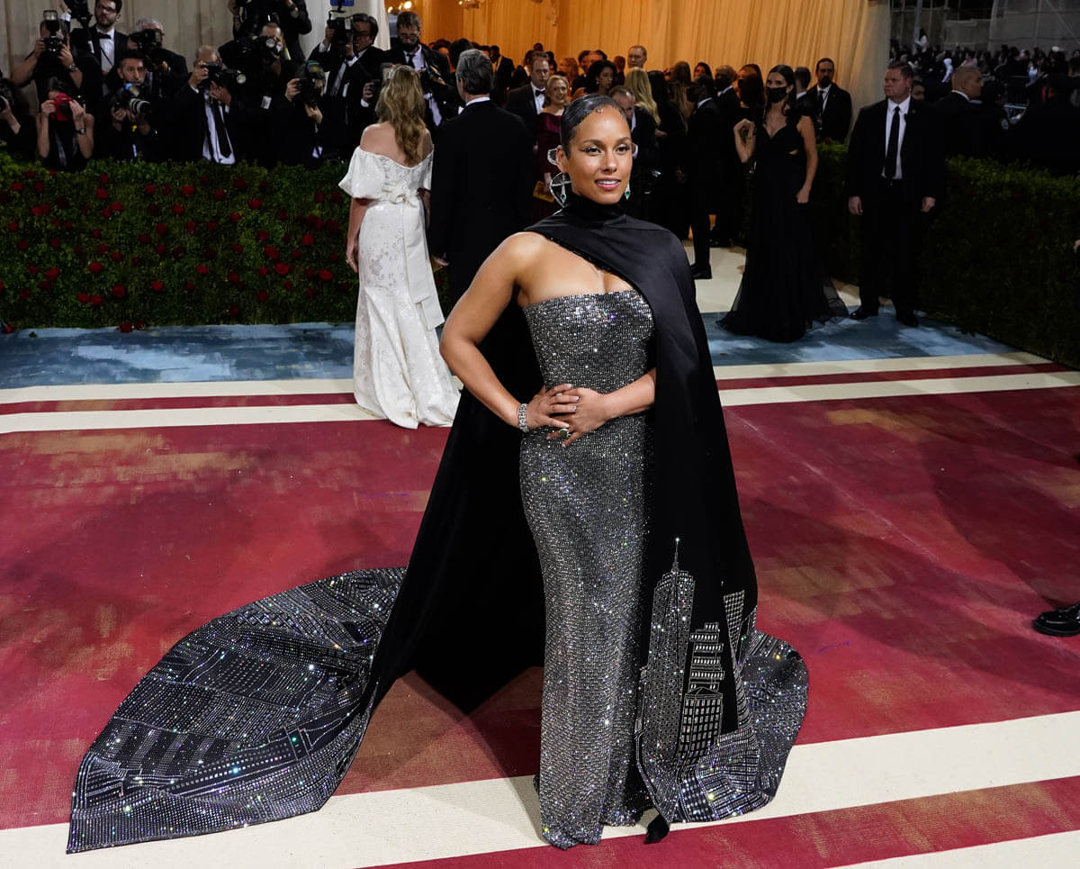 One of my best dressed picks from this year’s gala is Alicia Keys. Hands down. If there’s one thing Alicia’s always going to give you, it’s New York City and she did not disappoint. The “Empire State of Mind” singer showed up in a dress inspired by the Empire State Building. The look designed by fellow New Yorker, Ralph Lauren, features a jewelled strapless gown and one-shouldered black cape with a jewelled NYC cityscape. And the lights were hitting it just right on that carpet. It was extra and over the top in a controlled and classic way. Check out the fourth shot in this carousel.