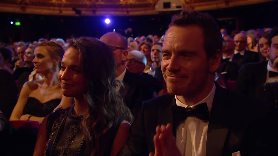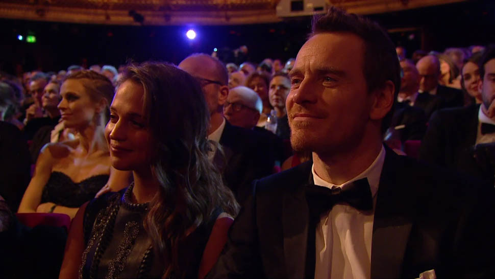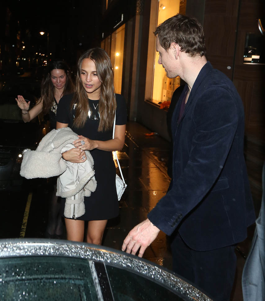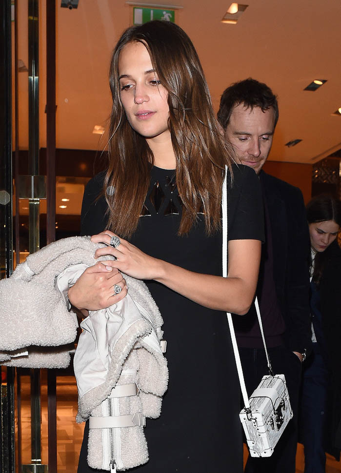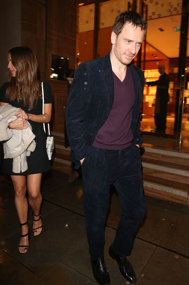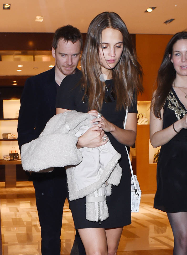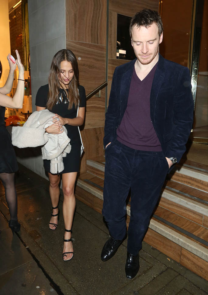 Alicia Vikander and Michael Fassbender were out together on Saturday night before the BAFTAs. Here they are leaving the party at 2am. They were also seated together during the BAFTAs proper, as they were both nominated. But they did not walk the carpet together. Michael walked with Kate Winslet, his co-star in Steve Jobs, while Alicia posed alone.