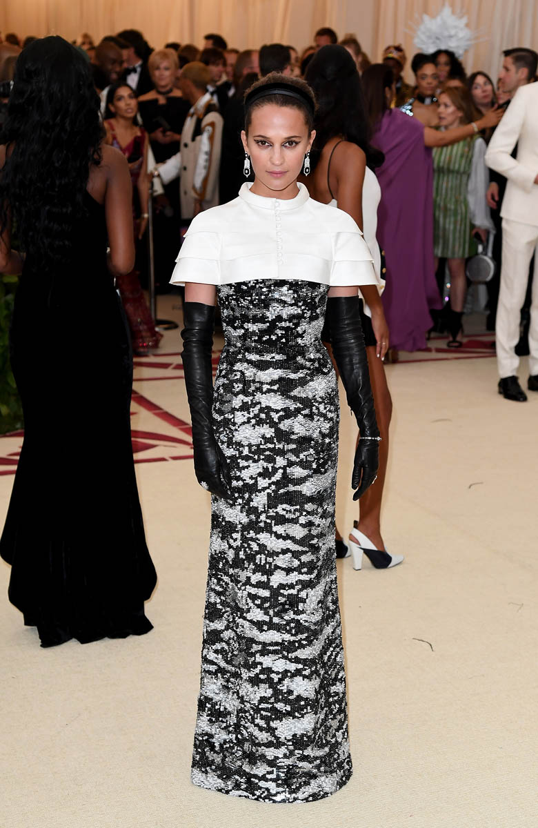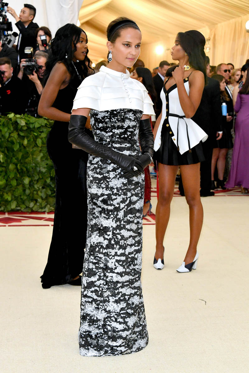 OK none of these women are actually dressed like nuns, but let’s go with it. First, Alicia Vikander (who, to me, has very low energy on the red carpet) and Jennifer Connelly, who I was semi-excited about seeing. Both are in Louis Vuitton and both designs clearly had a nun mood-board. It’s the features around the shoulders I’m most interested in – Google tells me that part of a nun’s habit, the white fabric around the shoulders, is called a guimpe. (If I’m wrong, you can yell at me – clearly 7 years of catechism is not helping me tonight.)