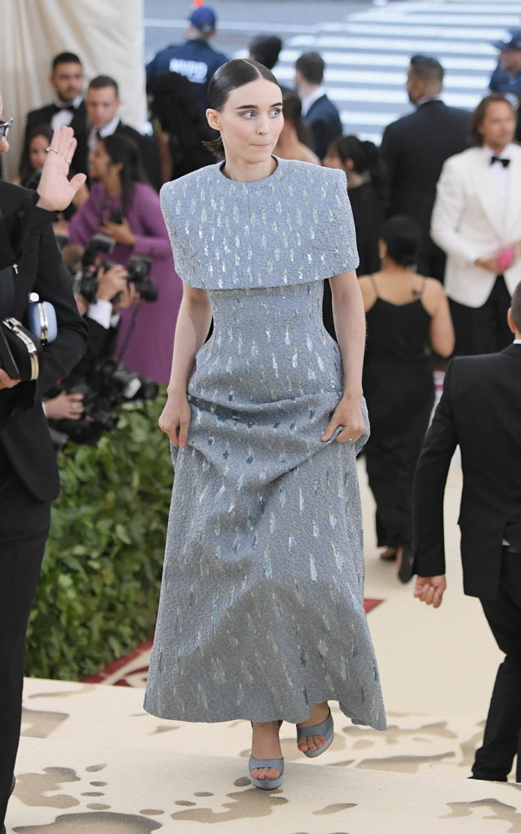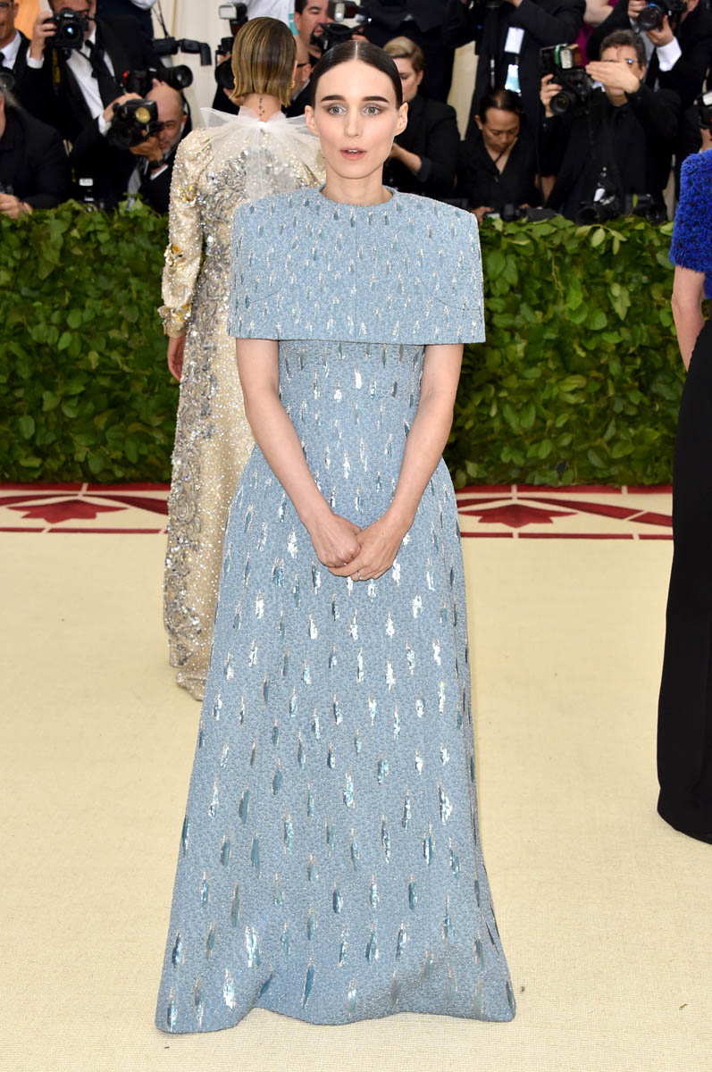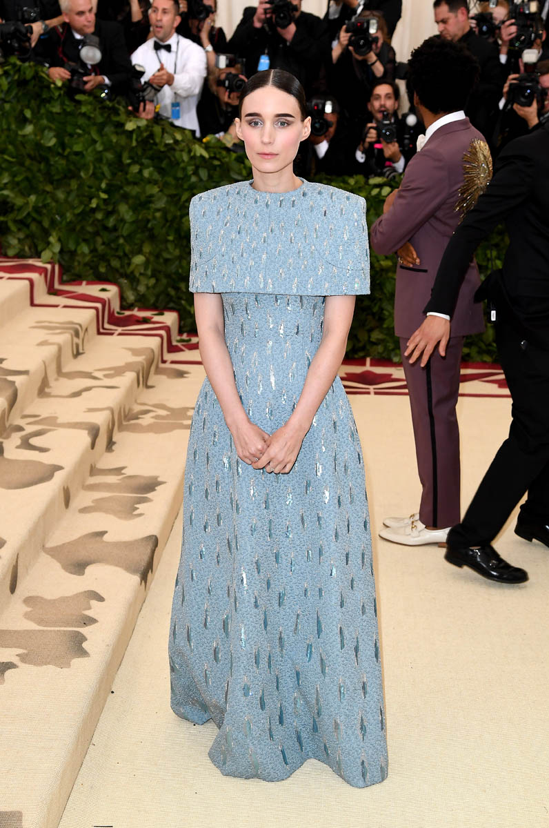 For Rooney Mara, I’m trying to unpack what the cape means. This gown was part of the Givenchy Spring 2018 collection, so it’s been seen before. There were several gowns in that collection that would have fit well with the theme, and many were done in black and white (colours she has favoured in the past). Beyond her options in the studio, Givenchy would have surely made her a gown – she is the new face of the brand, and this is a major event.