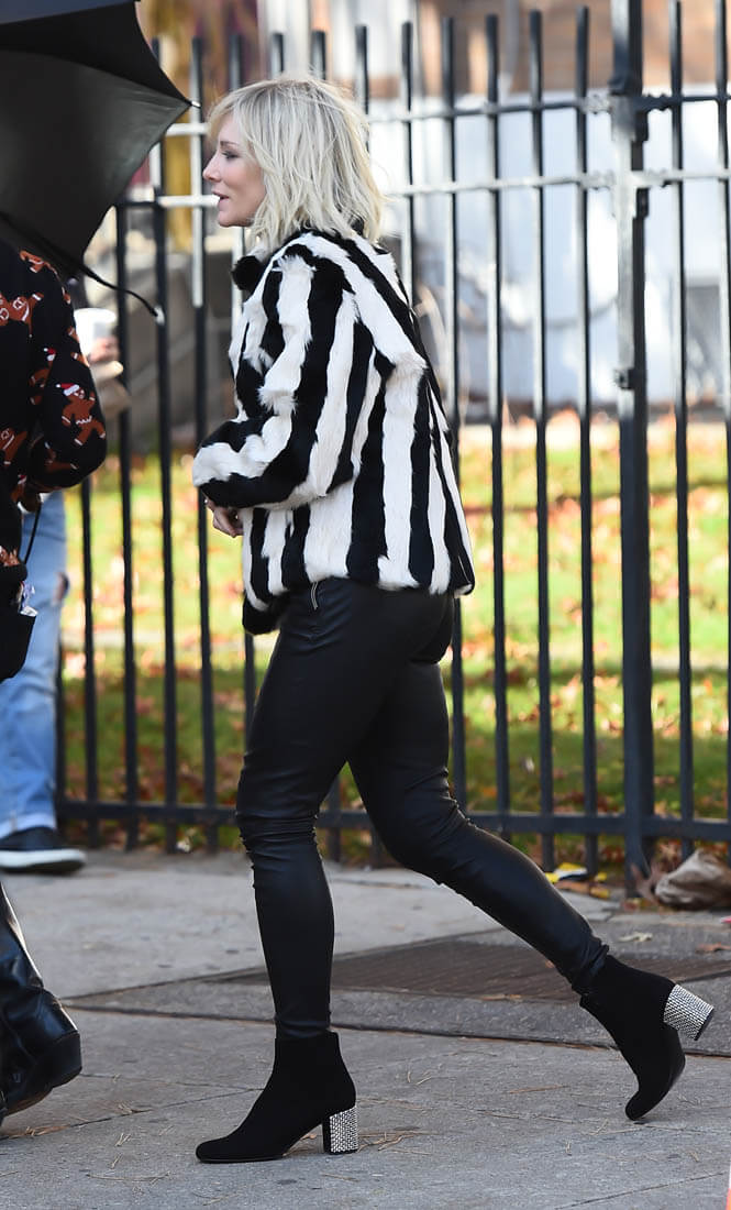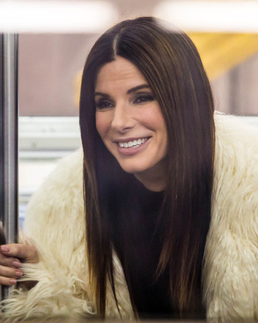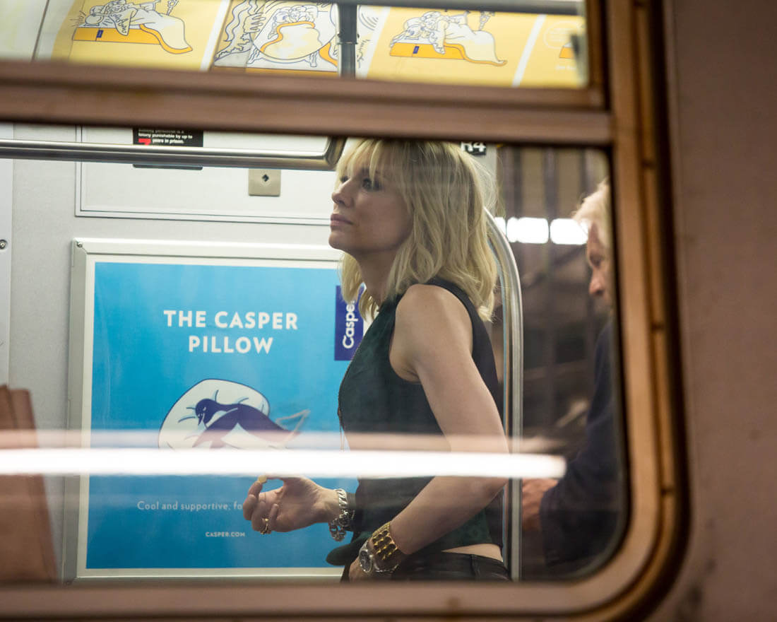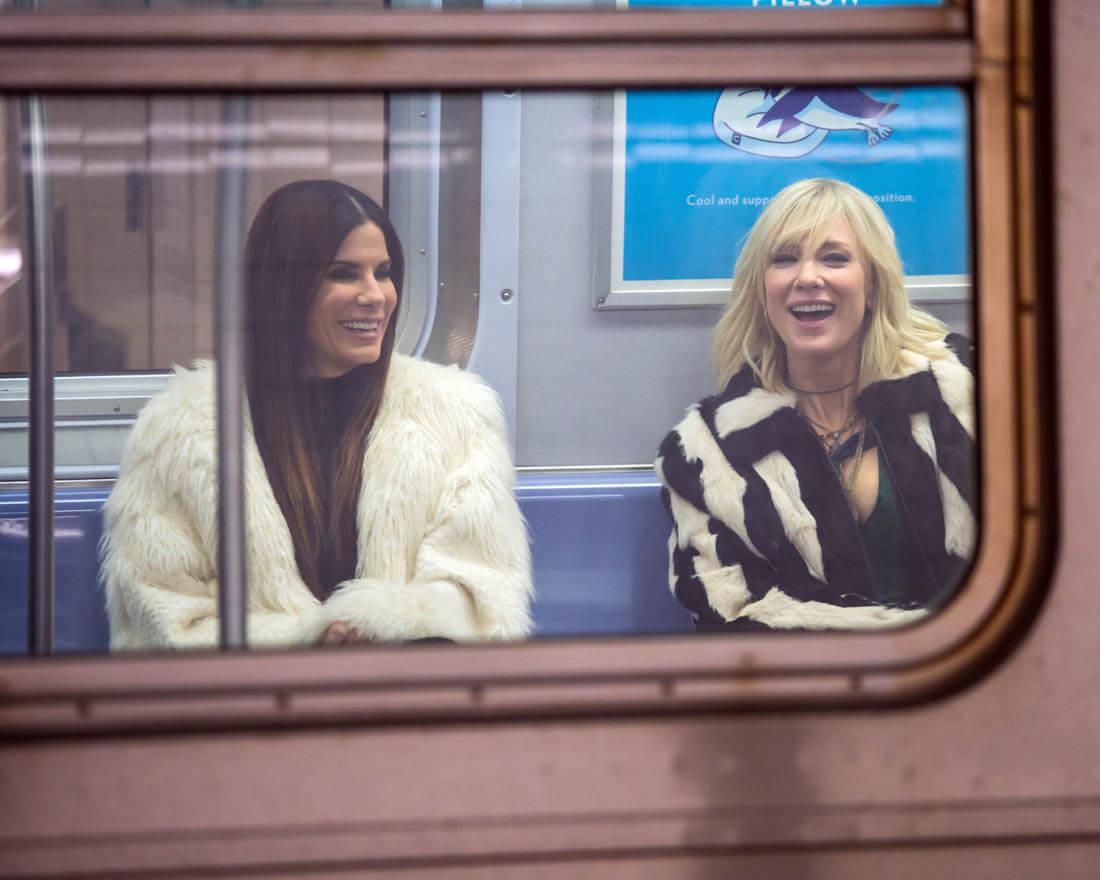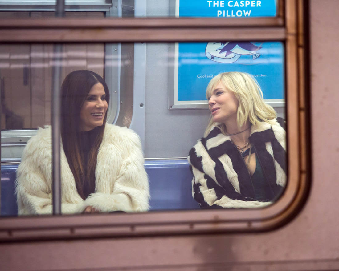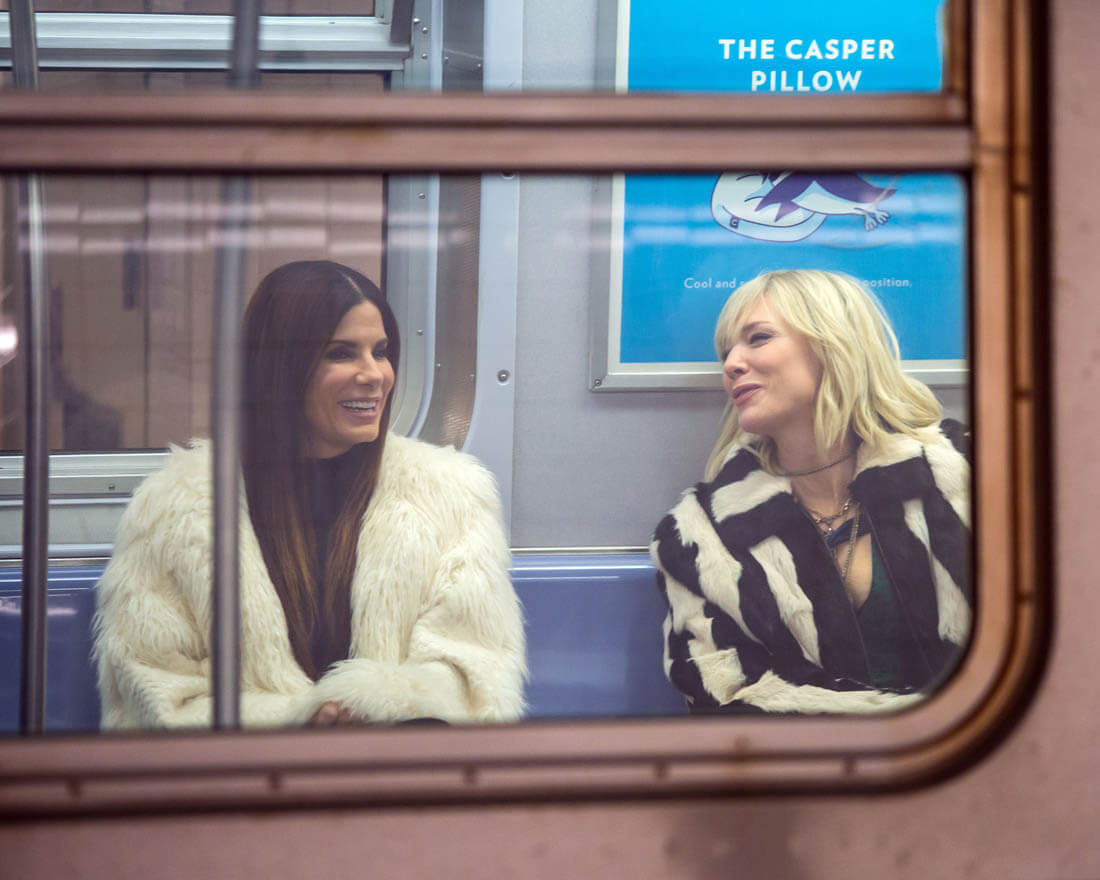 Ocean's Eight continued filming in New York this weekend and all eight women were on set for a scene on the subway: Sandra Bullock, Cate Blanchett, Rihanna, Anne Hathaway, Sarah Paulson, Mindy Kaling, Awkwafina, and Helena Bonham Carter. I can’t wait to see this movie. I can’t stand that we still have to wait almost another year for it. I want to see how these characters are represented. I want to see these women bring those representations – presumably, considering the diversity of the cast – a wide variety of representations, to life. Right now, based only on costumes, I have some ideas. Kathleen wrote about Rihanna’s hacker girl a couple of weeks ago. As for Anne Hathaway…