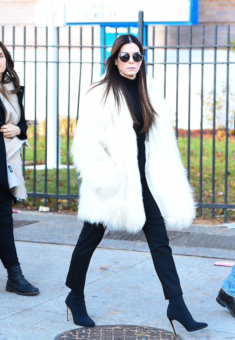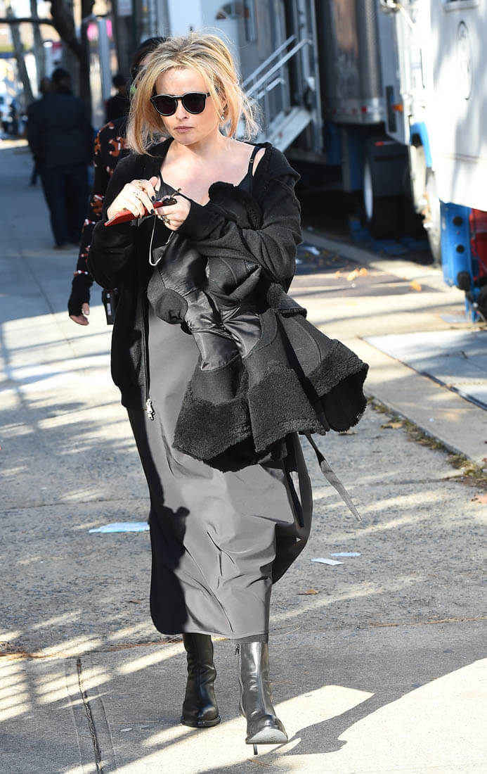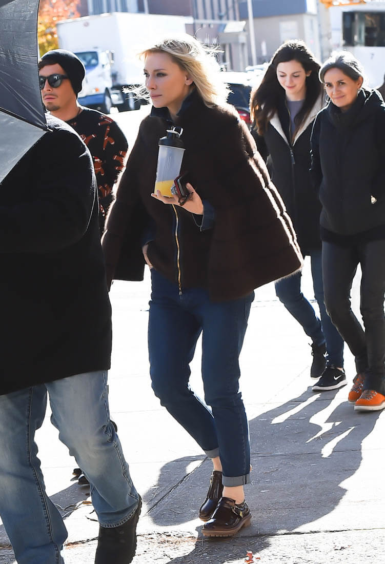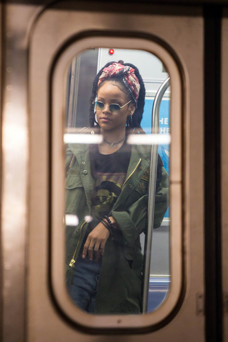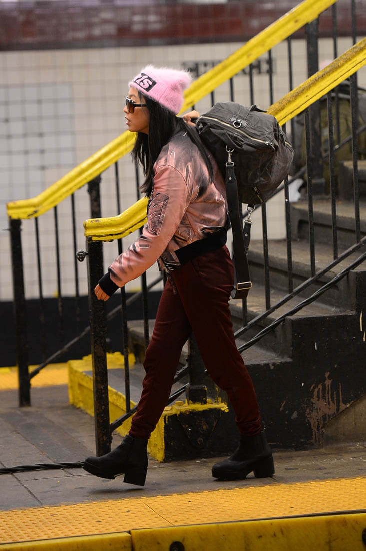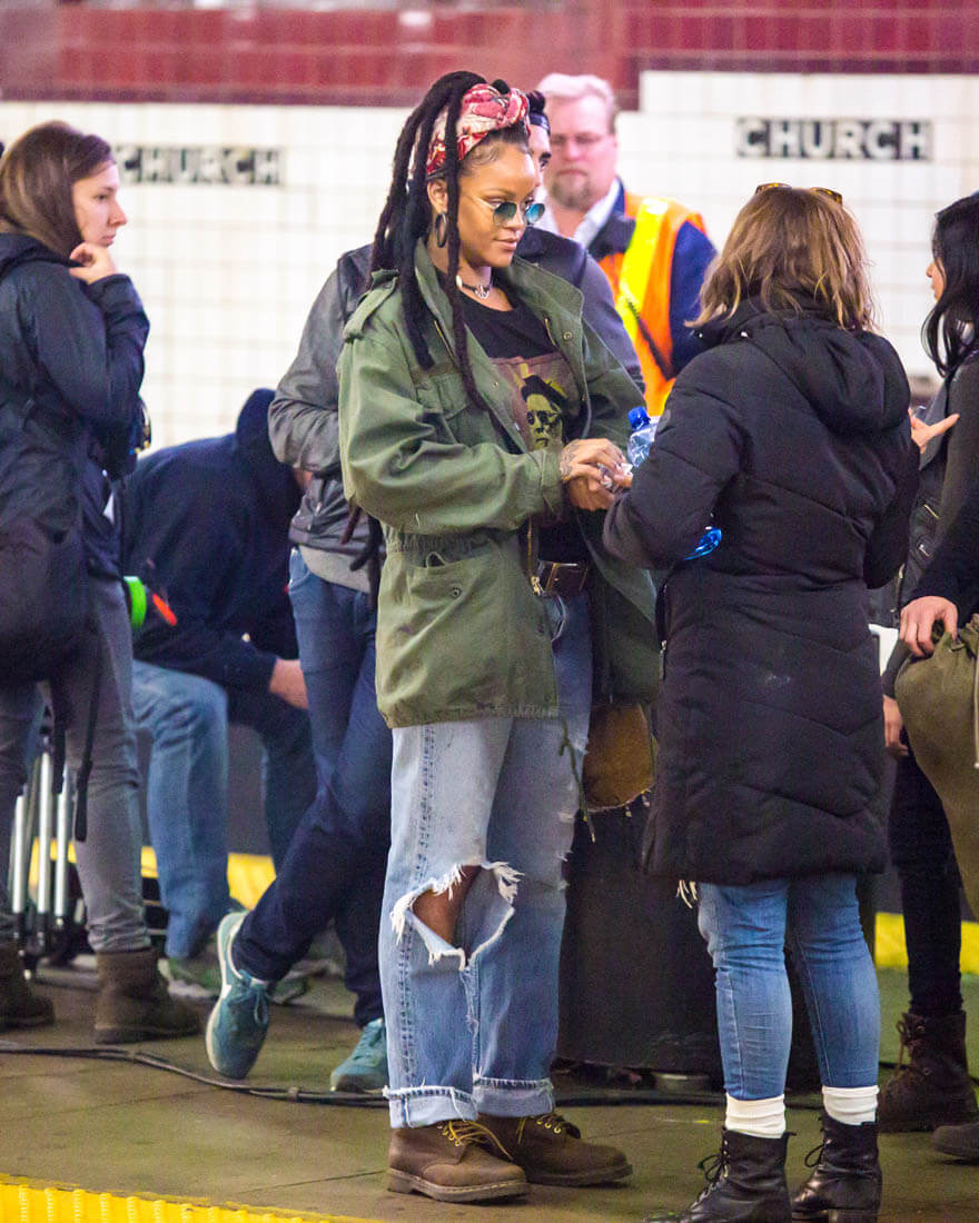 Ocean's Eight continued filming in New York this weekend and all eight women were on set for a scene on the subway: Sandra Bullock, Cate Blanchett, Rihanna, Anne Hathaway, Sarah Paulson, Mindy Kaling, Awkwafina, and Helena Bonham Carter. I can’t wait to see this movie. I can’t stand that we still have to wait almost another year for it. I want to see how these characters are represented. I want to see these women bring those representations – presumably, considering the diversity of the cast – a wide variety of representations, to life. Right now, based only on costumes, I have some ideas. Kathleen wrote about Rihanna’s hacker girl a couple of weeks ago. As for Anne Hathaway…