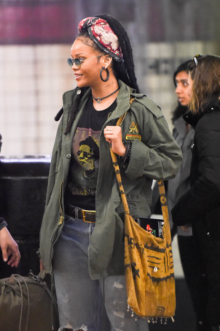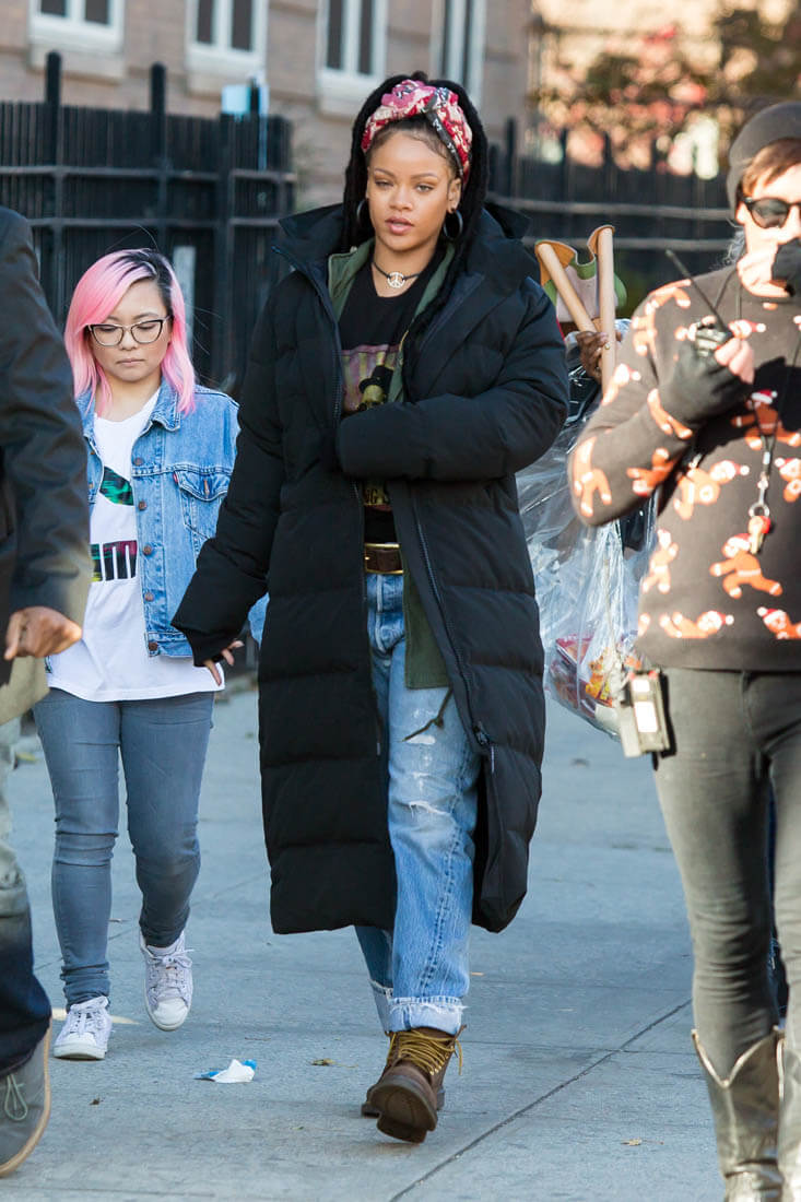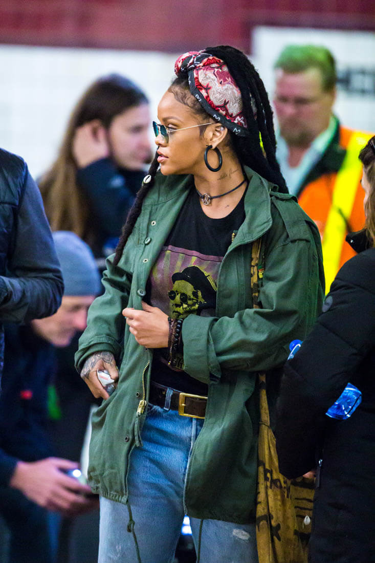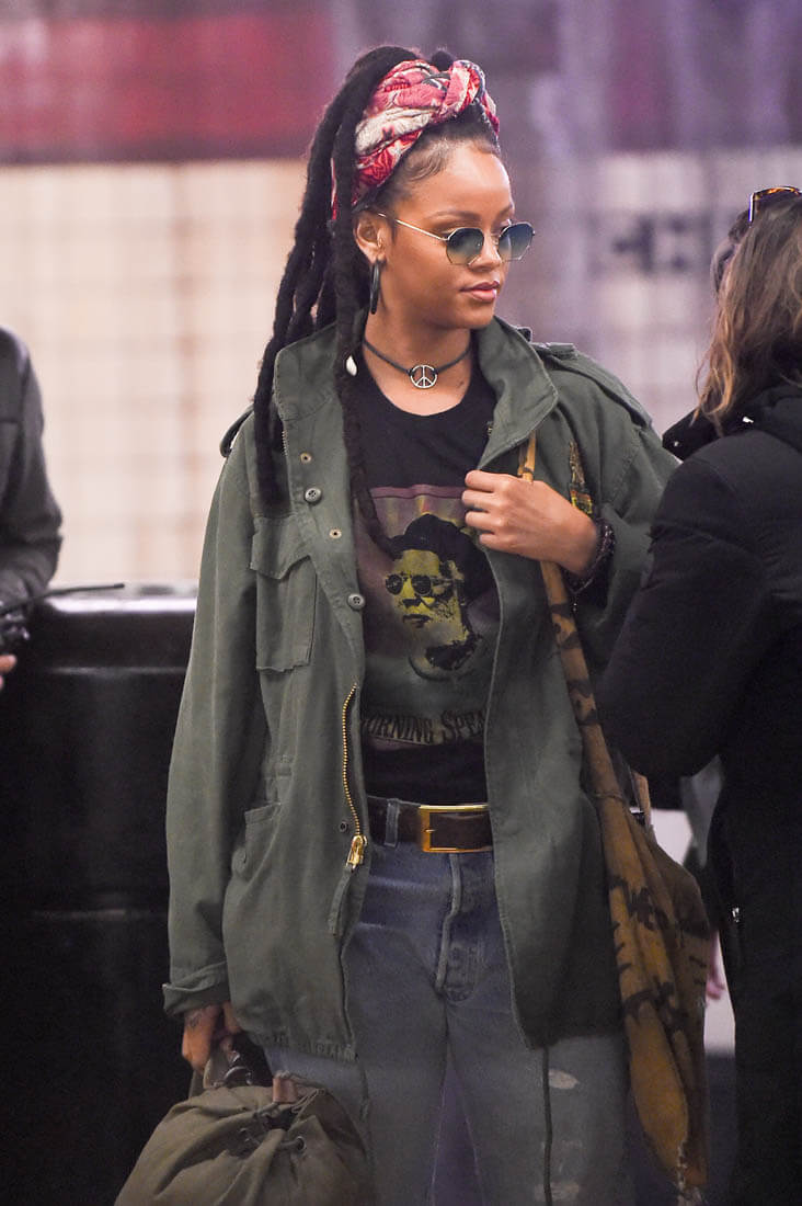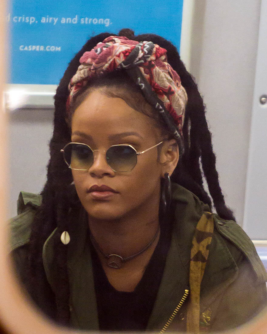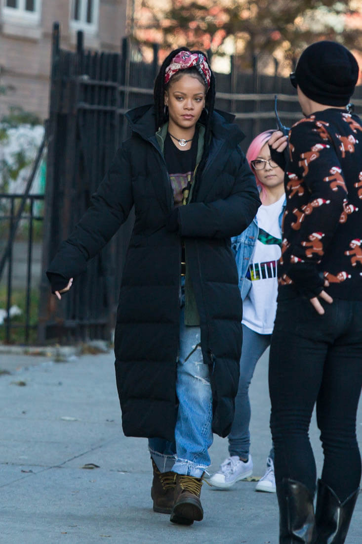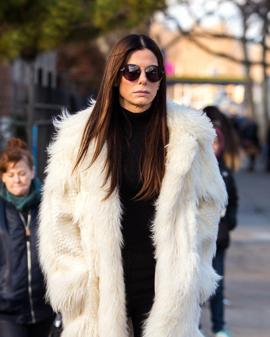 Ocean's Eight continued filming in New York this weekend and all eight women were on set for a scene on the subway: Sandra Bullock, Cate Blanchett, Rihanna, Anne Hathaway, Sarah Paulson, Mindy Kaling, Awkwafina, and Helena Bonham Carter. I can’t wait to see this movie. I can’t stand that we still have to wait almost another year for it. I want to see how these characters are represented. I want to see these women bring those representations – presumably, considering the diversity of the cast – a wide variety of representations, to life. Right now, based only on costumes, I have some ideas. Kathleen wrote about Rihanna’s hacker girl a couple of weeks ago. As for Anne Hathaway…