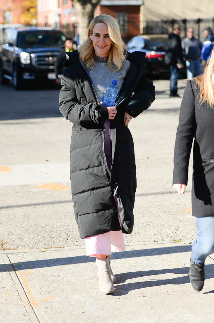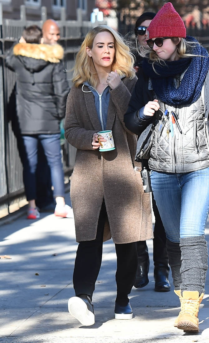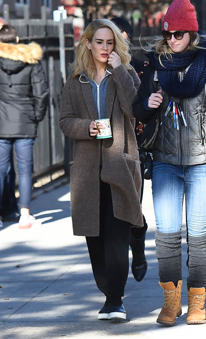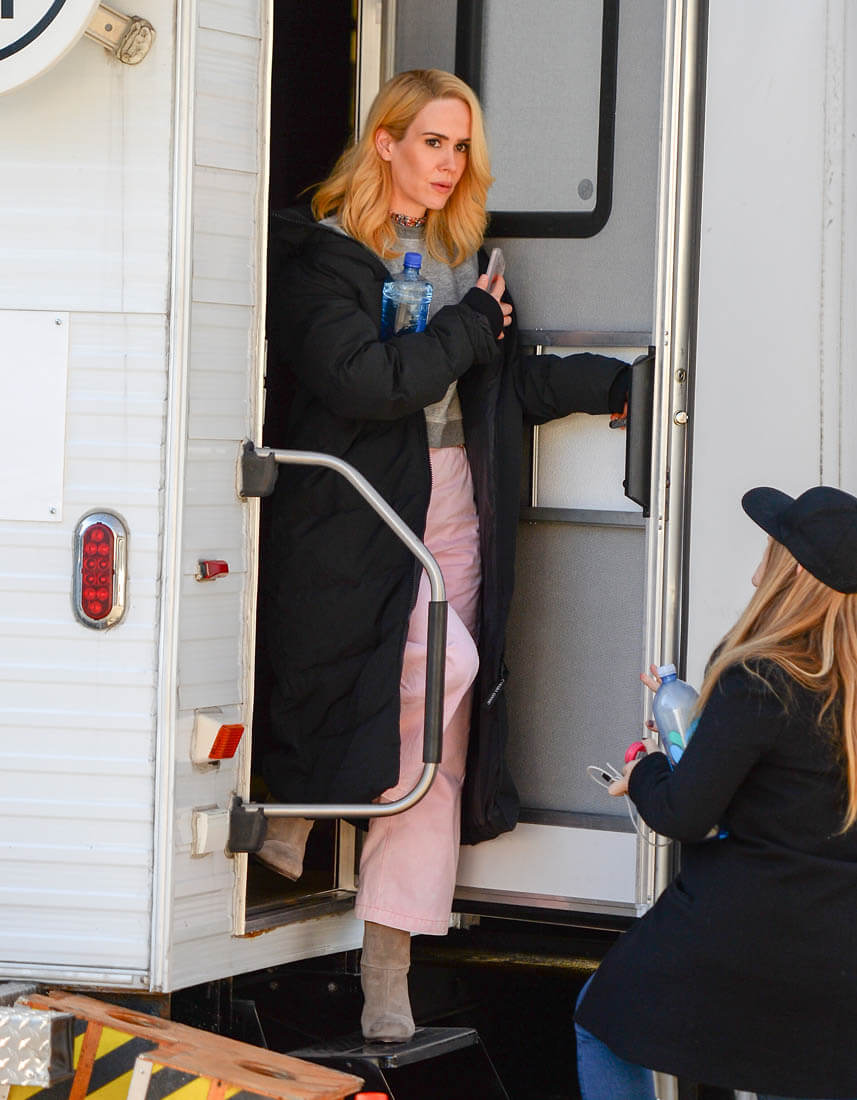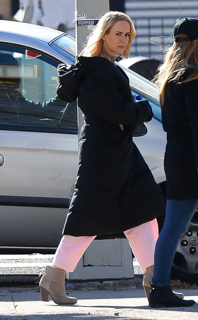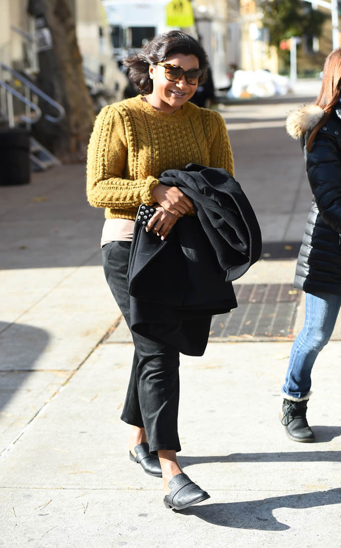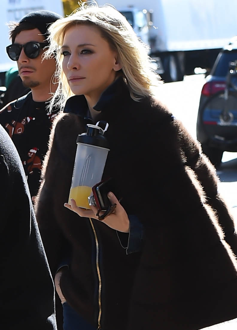 We saw her character earlier on a poster on top of a cab in a scene from the film. So she’s probably some kind of celebrity. What kind of celebrity? Like an “Anne Hathaway” kind of celebrity? Or a “Housewives” kind of celebrity? Check out those nails. Those fake nails with the French manicure. That’s definitely not “Anne Hathaway”. Or the real Cate Blanchett. Or Kerry Washington. Or Scarlett Johansson. With nails like that? F-ck no. And each and every one of those actresses, especially Annie, would know that. So if this is how they’re building the character, style-wise, with these kinds of details, I’m so curious about who she is. Vanderpump or Lisa Rinna?