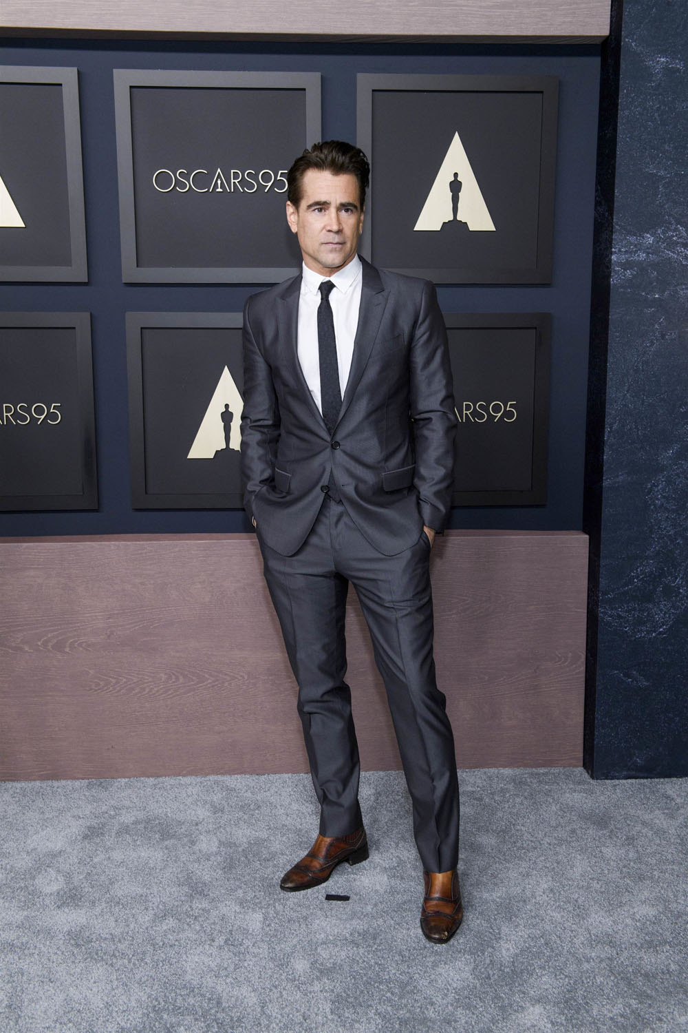 But the visual that made me happier didn’t involve Tom at all. It’s Austin with Colin Farrell and apparently the Best Actor nominee fashion trend is 80s gangster suits now: