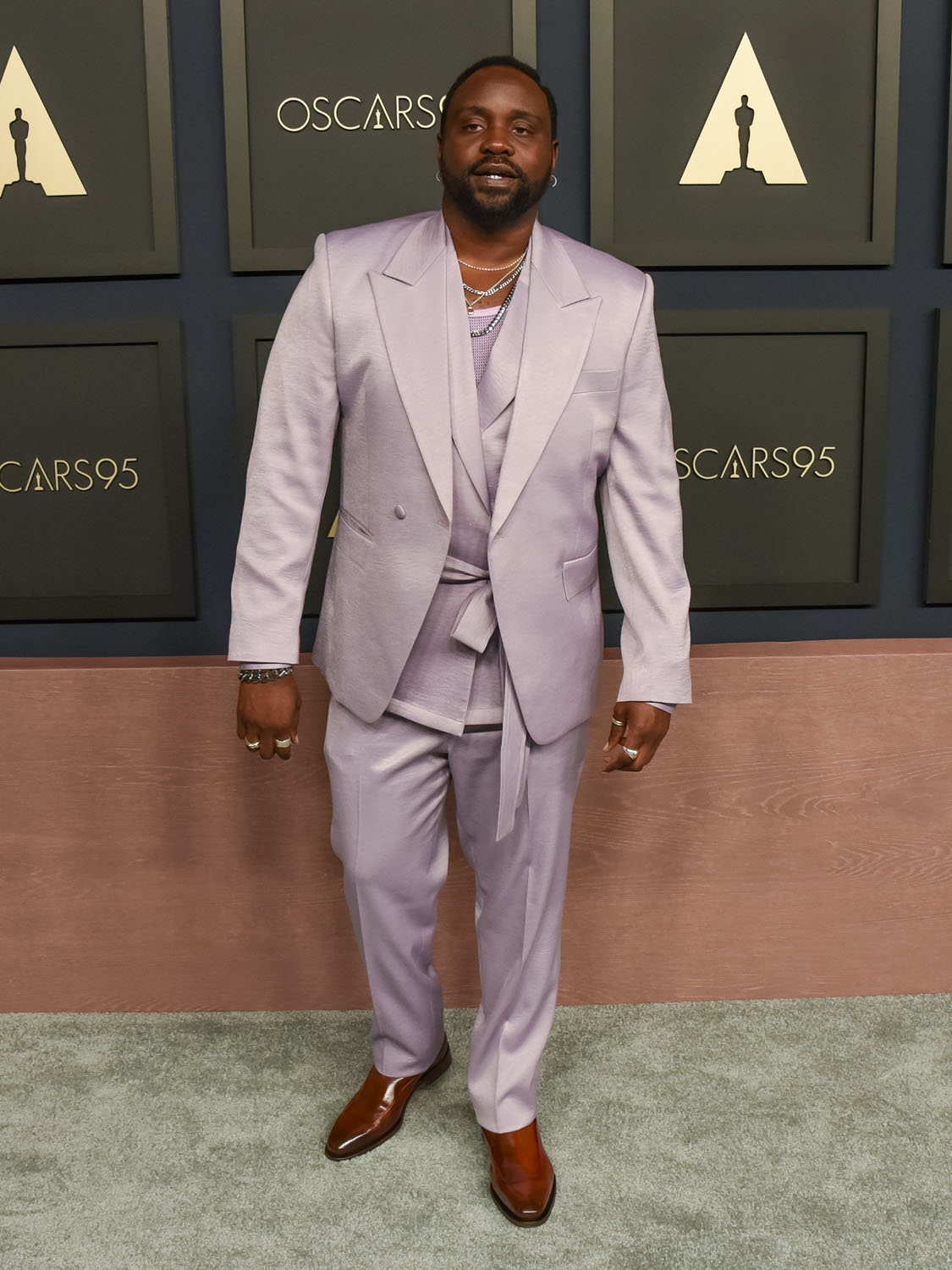 Ke got his wish. He got his selfie with Tom. And everybody else. I love his lucky green velvet suit! I also love the shot of him with fellow Supporting Actor nominee Brian Tyree Henry who turned it out in a pale violet fit.