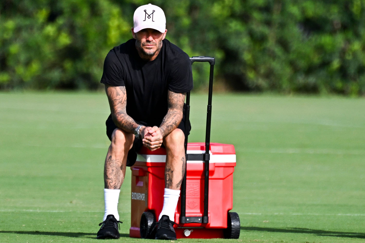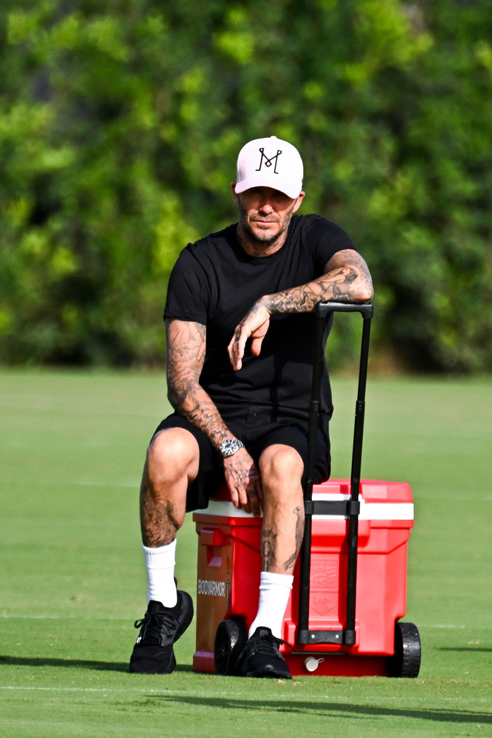 Also attached - David at a training session with Messi today in Miami.