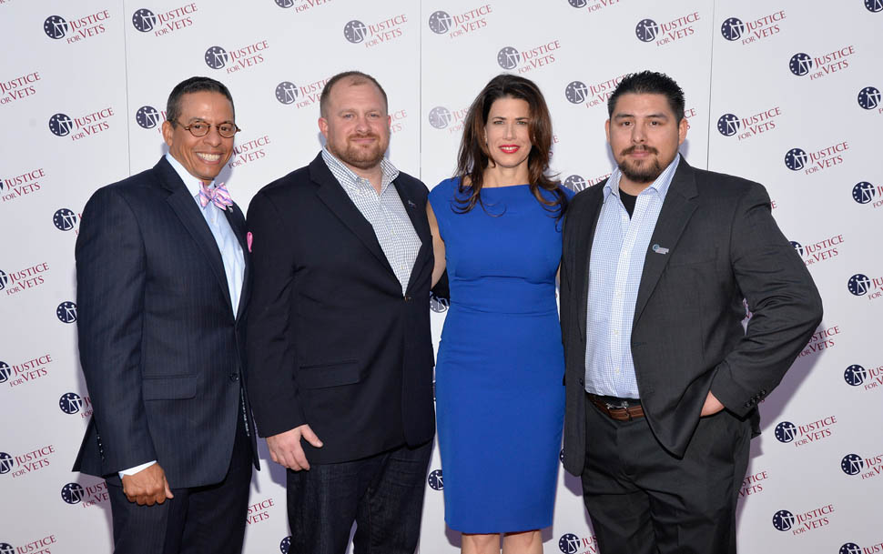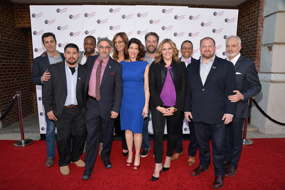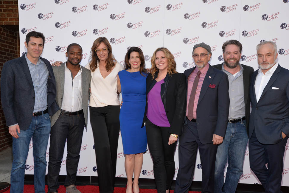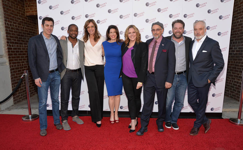 Team Bartlet got back together to shoot a PSA for Justice For Vets. The video is below. Here they are at the launch – the President, CJ, Charlie, Toby, Carol. No Josh or Donna but they’re in the PSA.