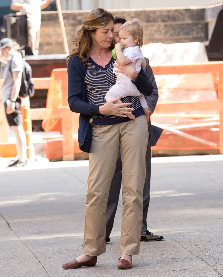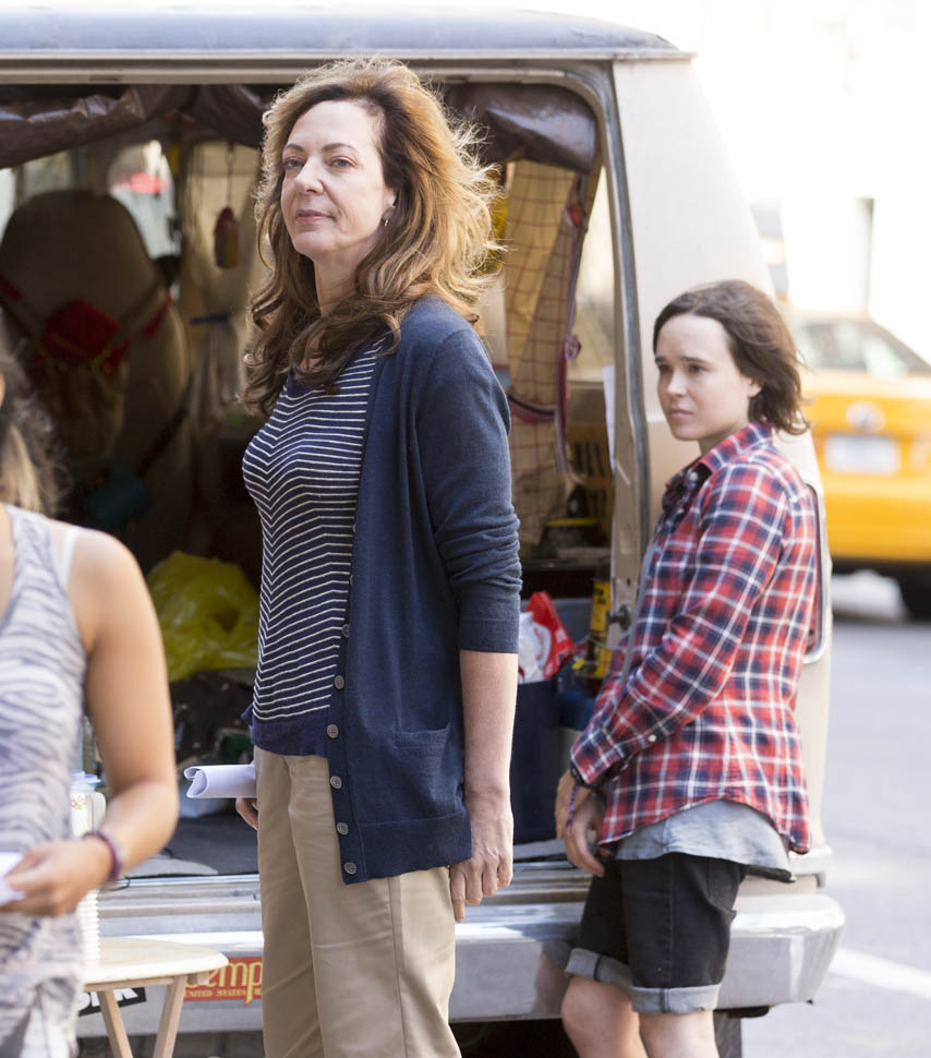 Allison Janney and Ellen Page are back together, seen here yesterday on the set of Tallulah in New York. Coincidentally, it’s another movie about a baby. The baby’s mother is evidently a f-ck up. So Ellen rescues her and pretends she’s the mother instead, helped by her boyfriend’s mother, presumably played by Allison. But then they make up with the real mother and the three of them mother the child together. Three Women And A Baby? I’ll watch that. I’m partial to Allison Janney. And I’ve been thinking about her a lot because of my nostalgic West Wing tangent earlier and my favourite episode from the show. Remember this scene?