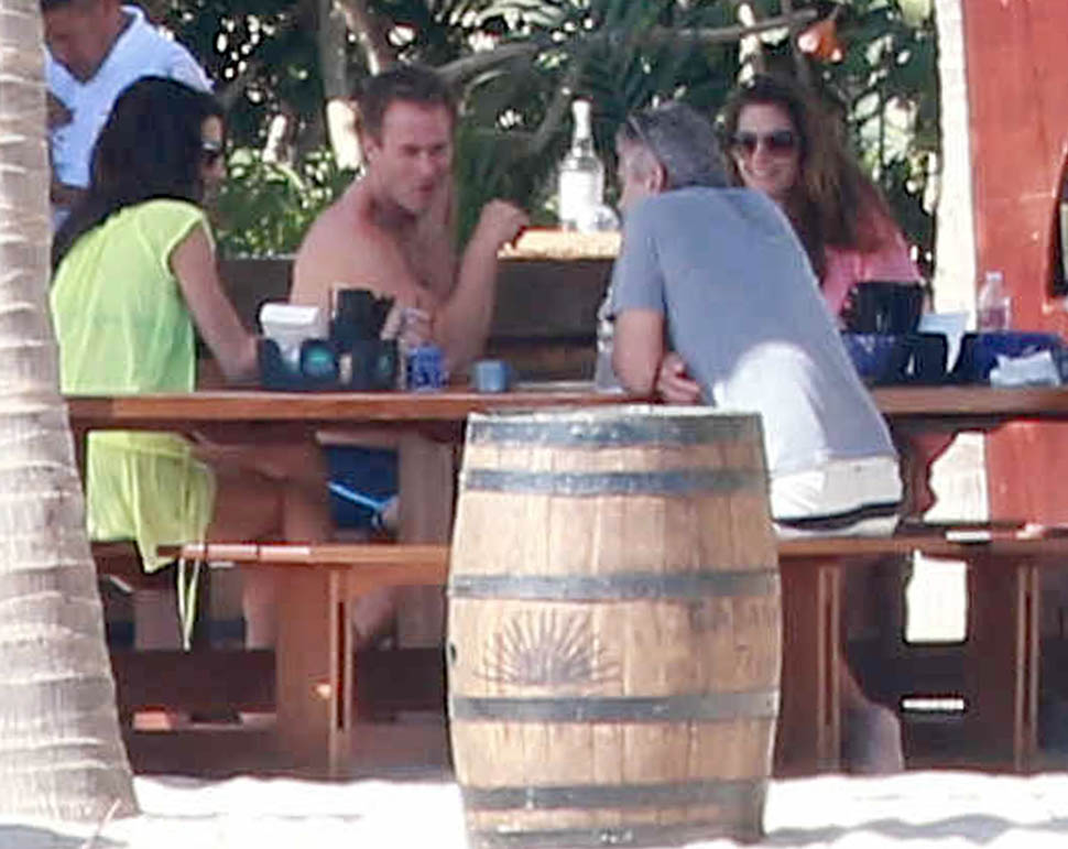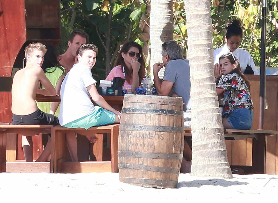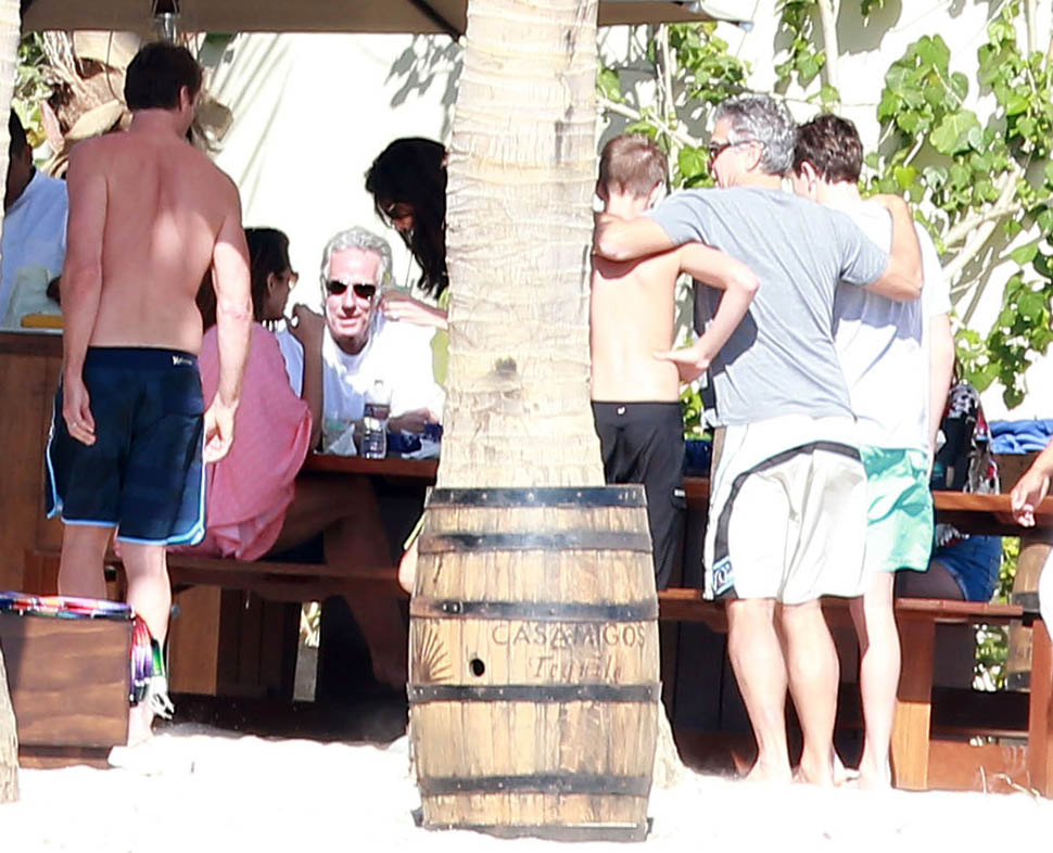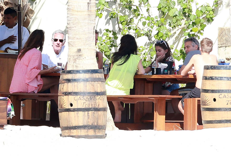 Amal and George Clooney, along with Cindy Crawford and Rande Gerber, were photographed with friends and family in Cabo yesterday. We know this by now, right? Summers in Como, winters in Cabo. Amal is the one in yellow.