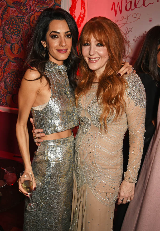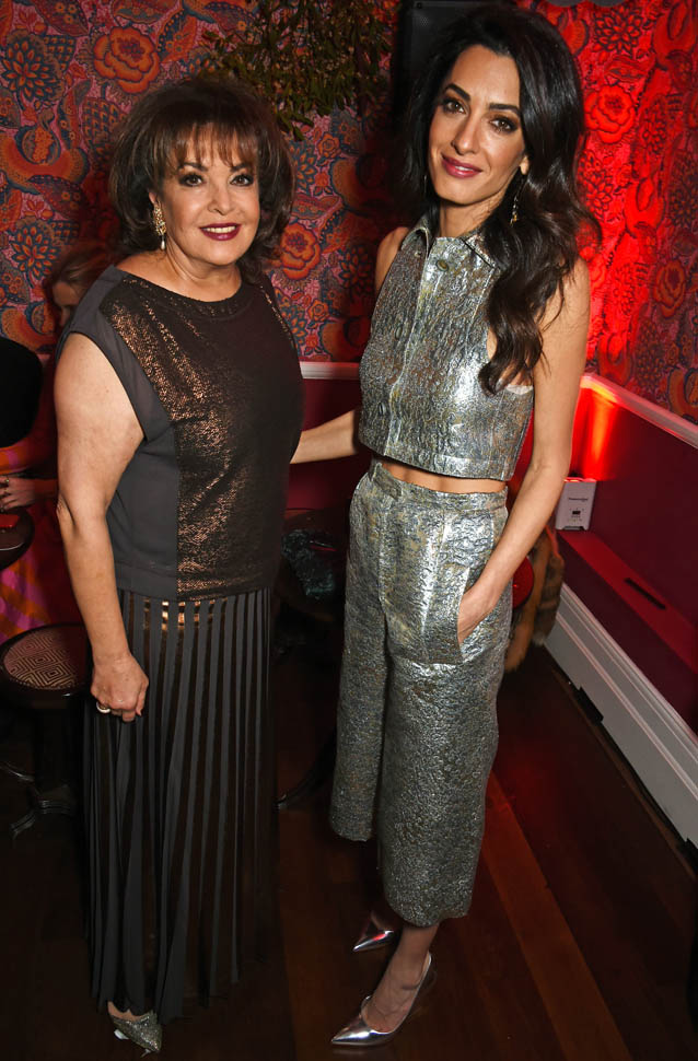 Amal Clooney, accompanied by her mother, Baria Alamuddin, was at Charlotte Tilbury’s flagship opening and Christmas party last night in London. She wore silver vintage Lanvin. It’s the perfect holiday party outfit. I love it.