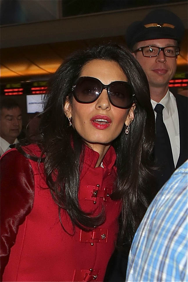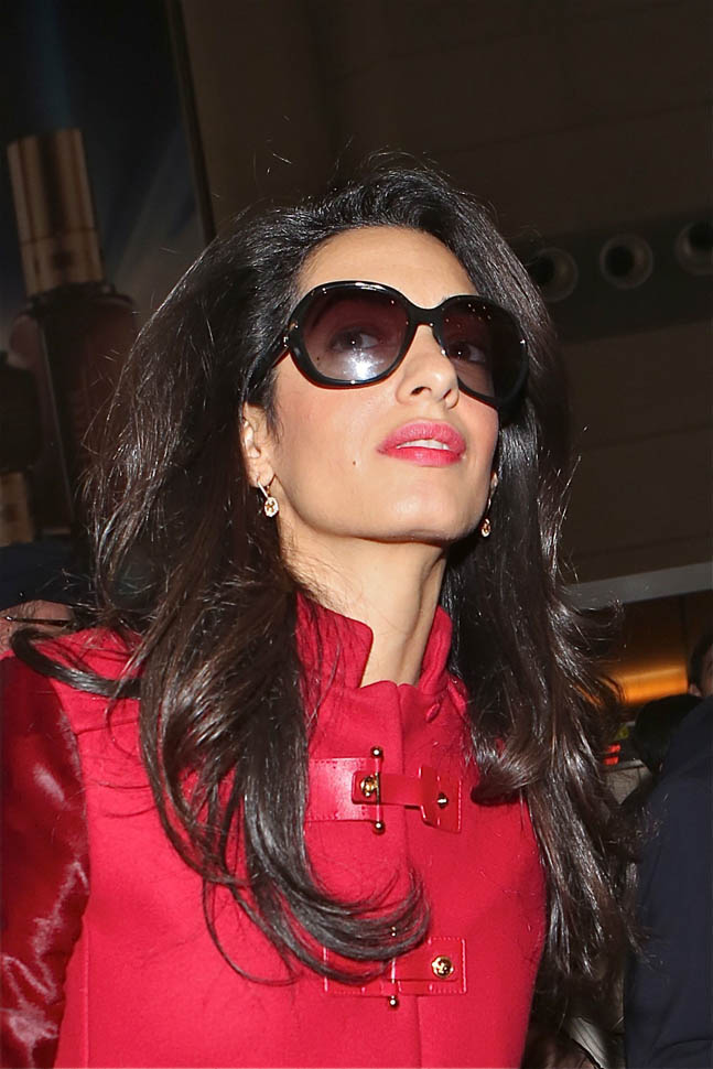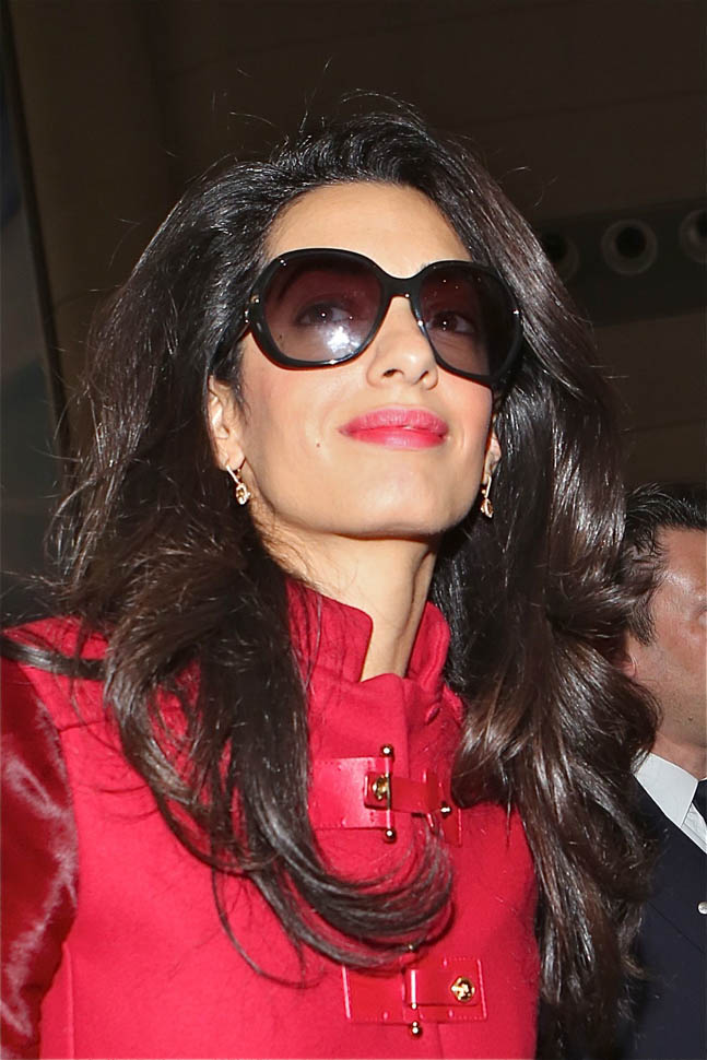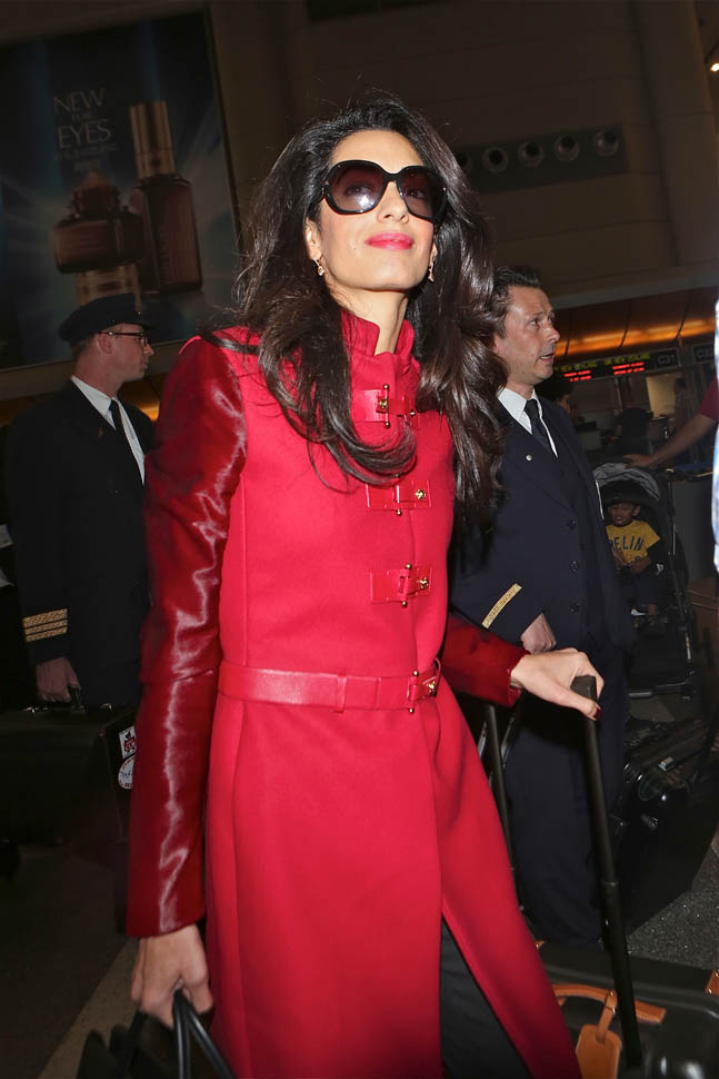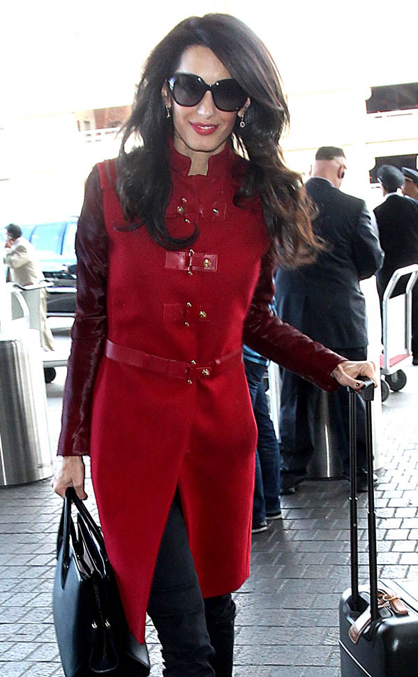 Amal Clooney was photographed at LAX this weekend, reportedly returning to London after spending several weeks with George through the holidays in Cabo and then back in Hollywood for the Golden Globes. That’s a sick leather jacket, non? It’s Versace.