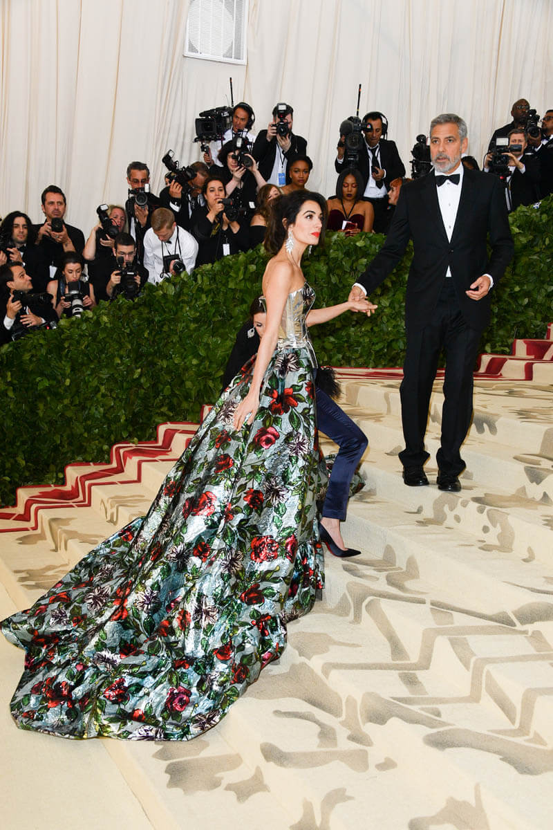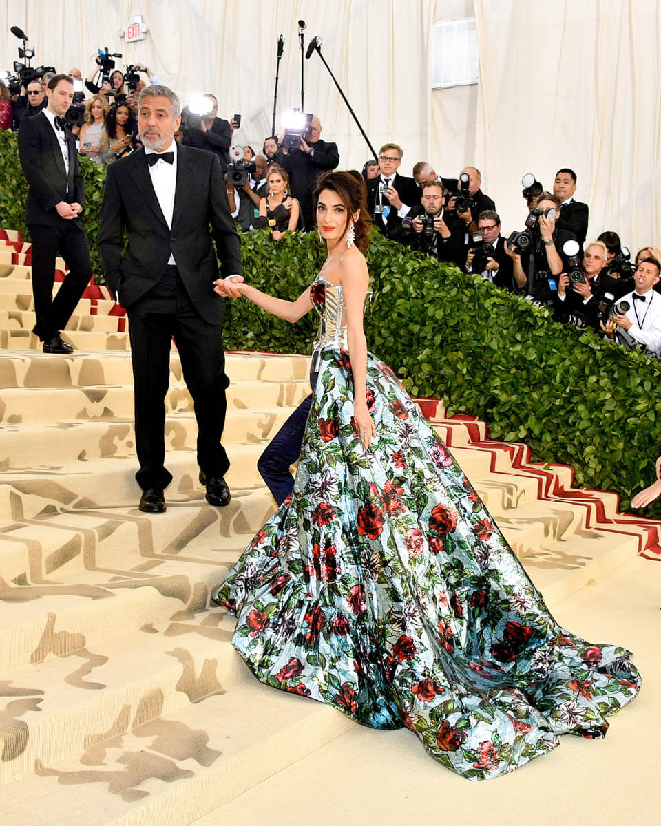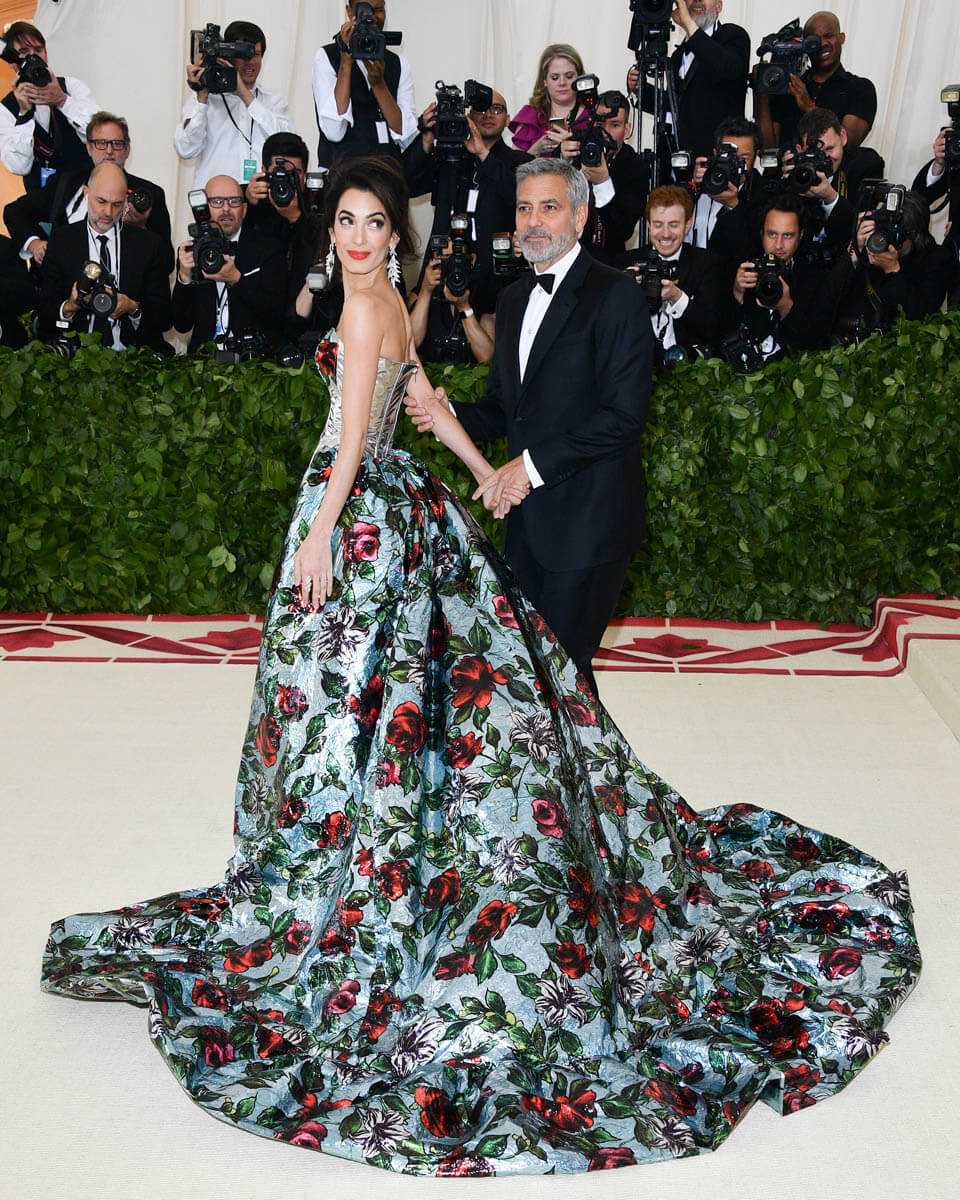 She’s beaming in a way you can’t fake. She is feeling this so, so much. As far as Amal is concerned, she is embodying Heavenly Bodies, pardon the pun, like she decisively chose the theme because she wanted to wear this explosion of flowers. Like bursting into bloom is the closest thing she can think of to heaven.