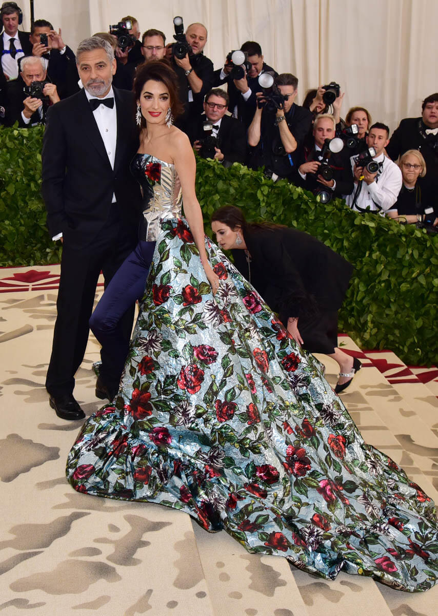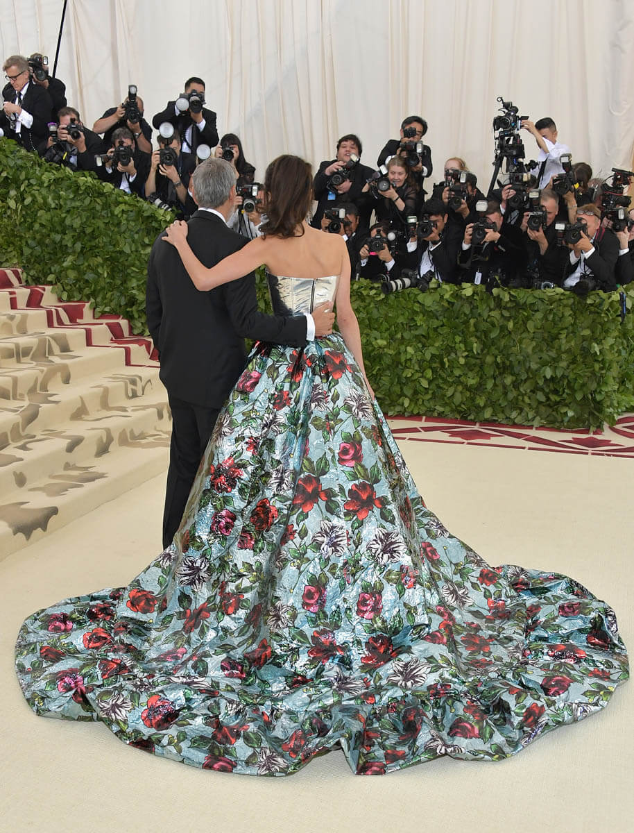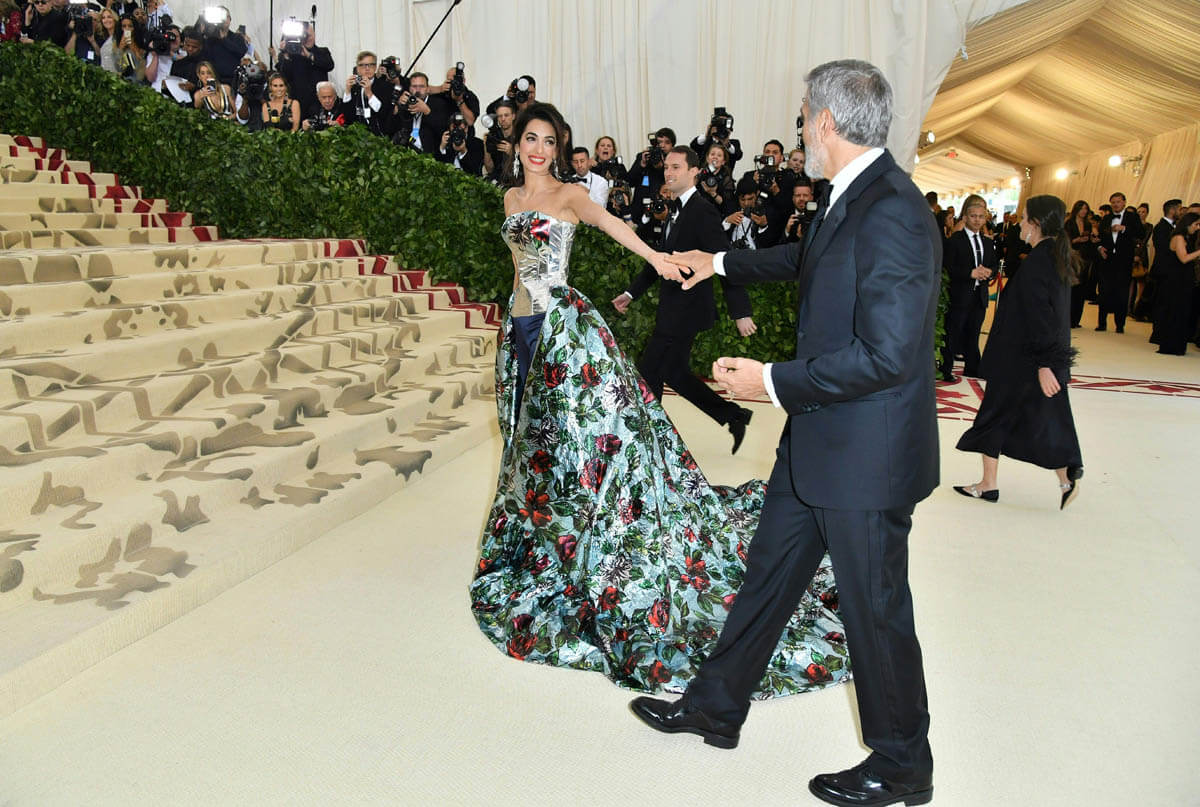 She’s beaming in a way you can’t fake. She is feeling this so, so much. As far as Amal is concerned, she is embodying Heavenly Bodies, pardon the pun, like she decisively chose the theme because she wanted to wear this explosion of flowers. Like bursting into bloom is the closest thing she can think of to heaven.
