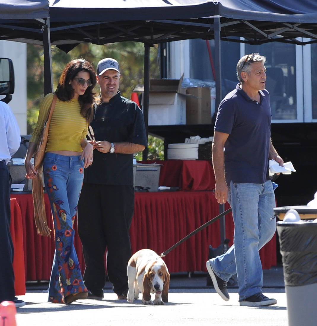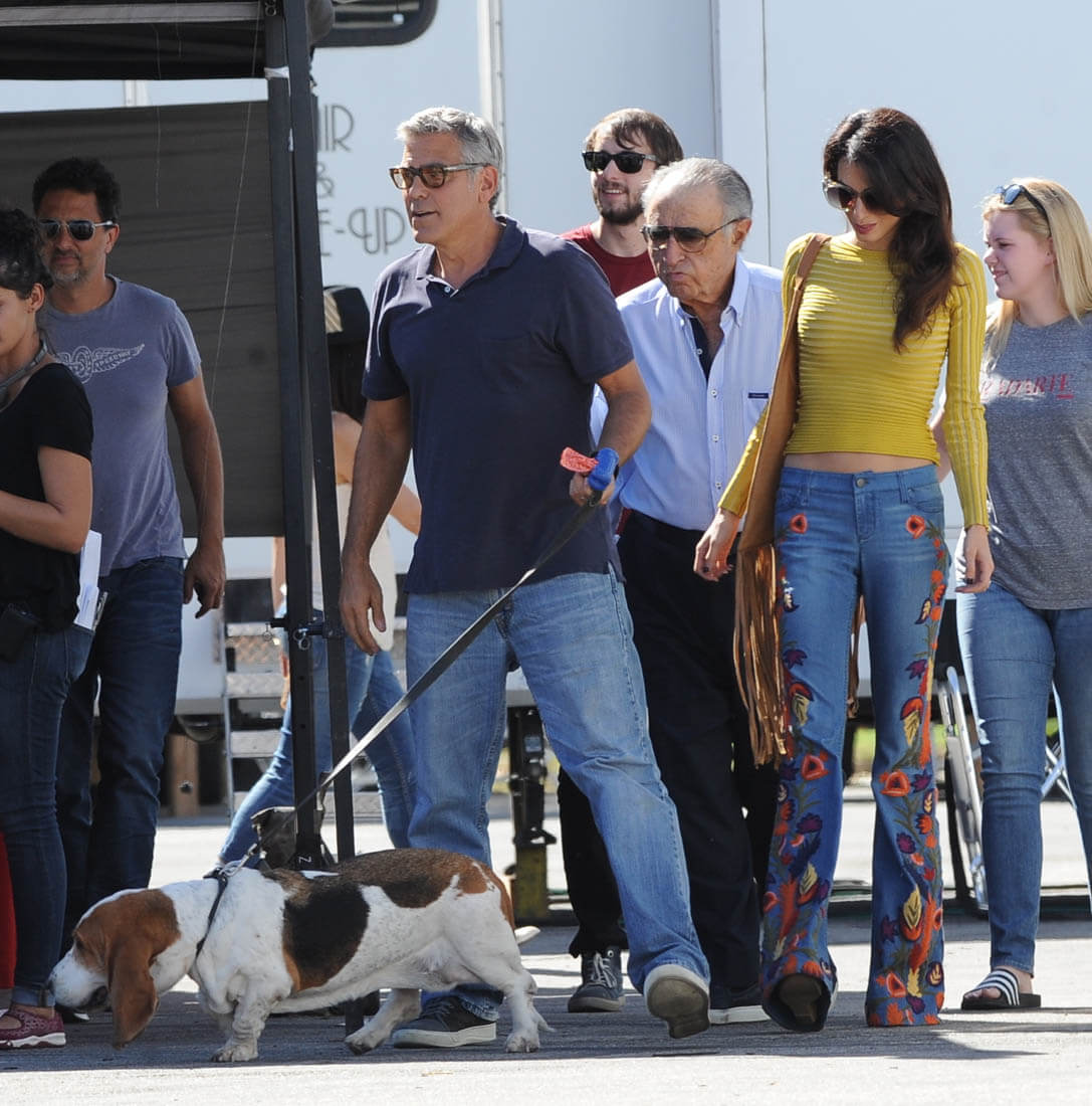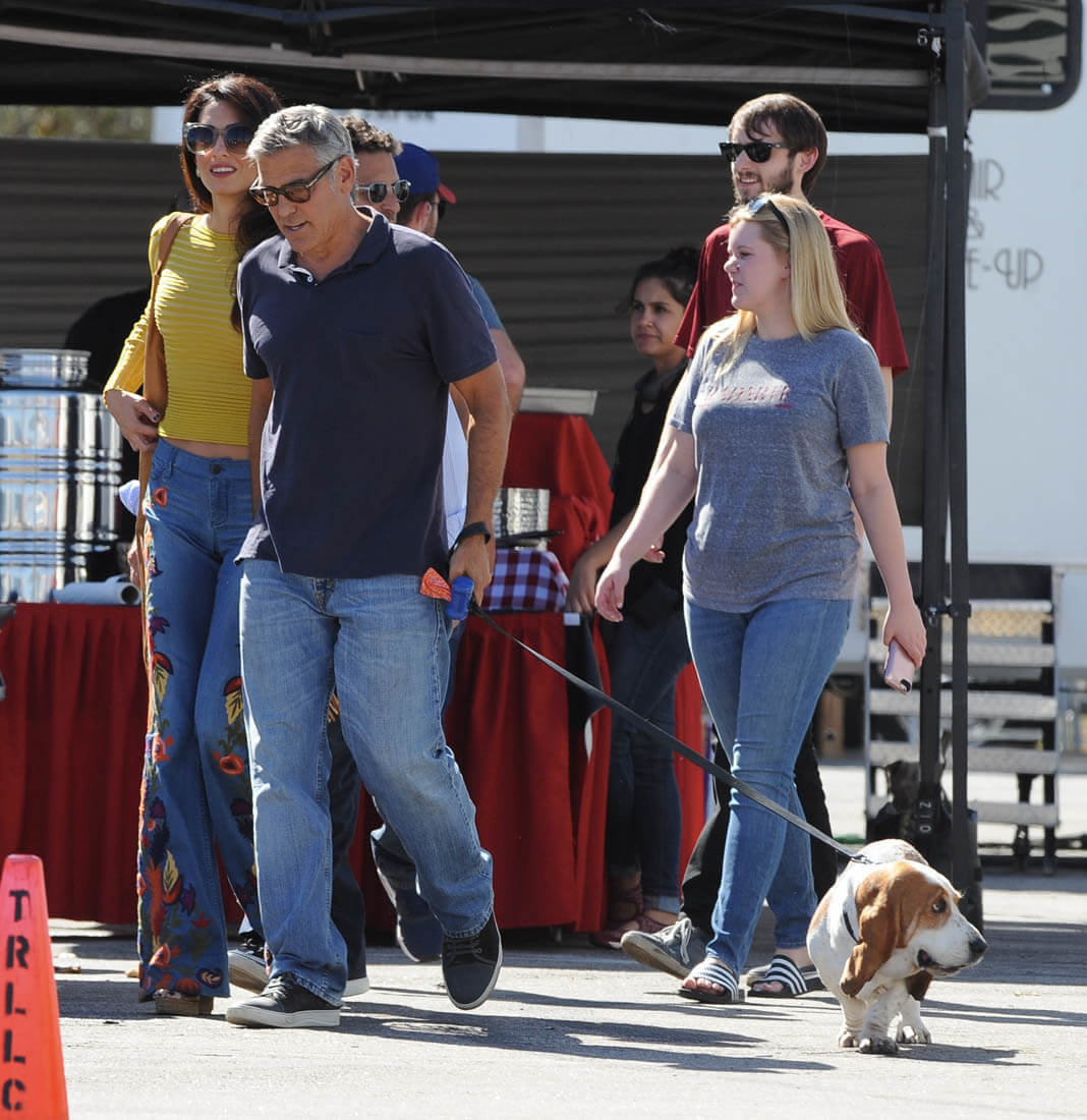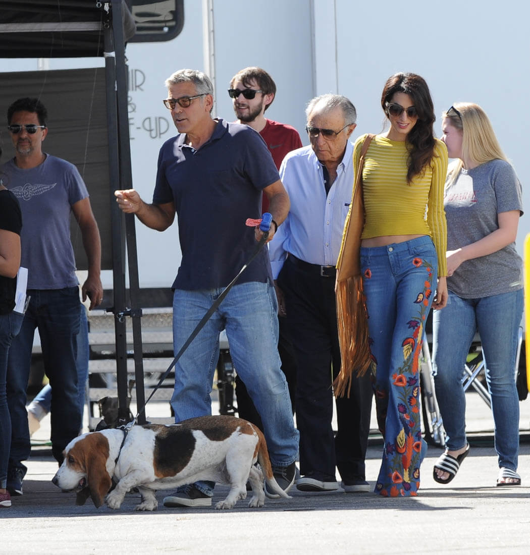 George Clooney is directing a movie called Suburbicon in LA. Yesterday Amal came by set to see him and most of the conversation about this visit was about her clothes (baaaad jeans and an eye roll of a fringe bag) and the fact that they’re holding hands. Whatever. The only conversation worth having about this visit is a conversation about the VIP of these photos: Millie Clooney.