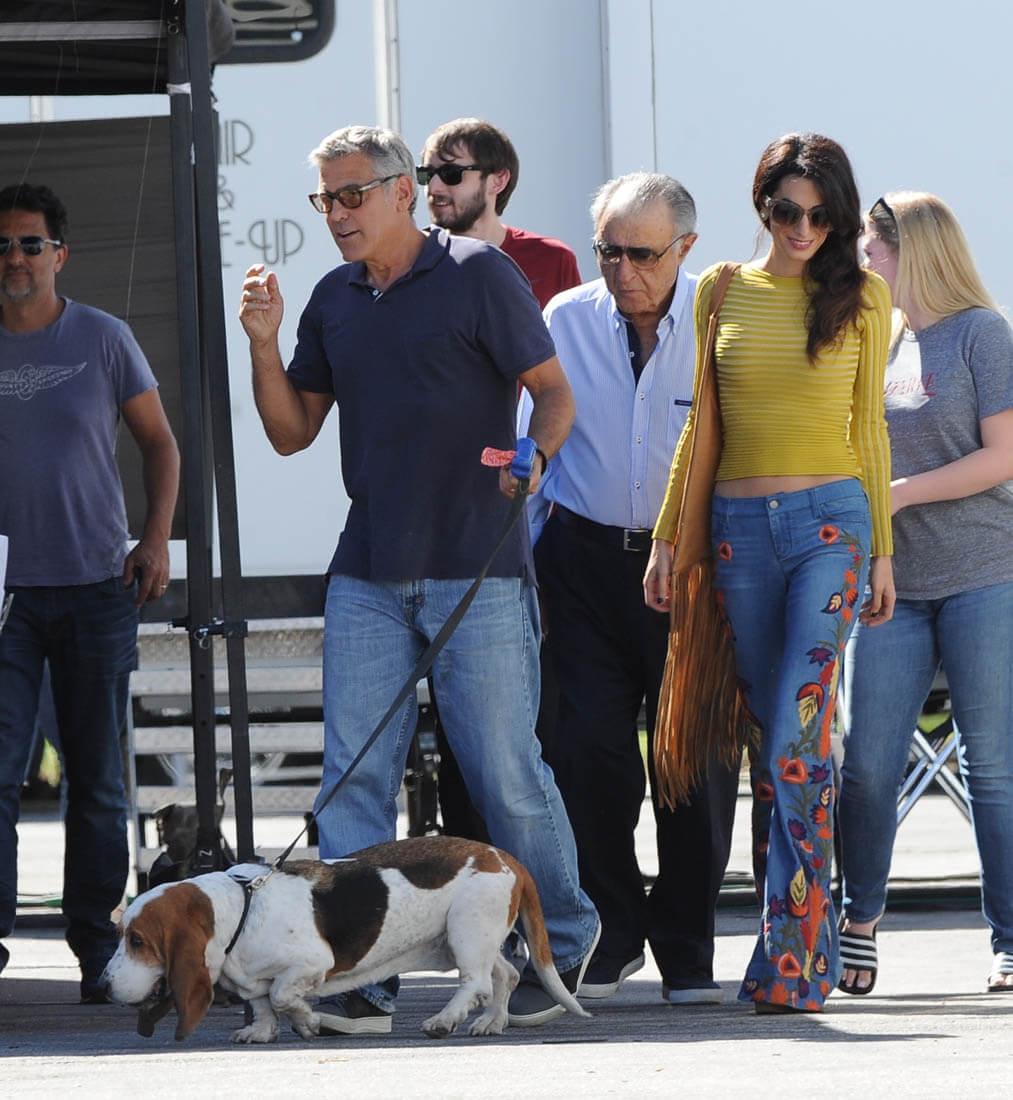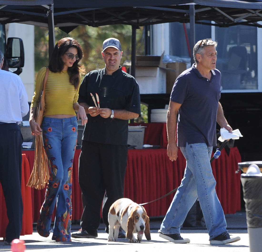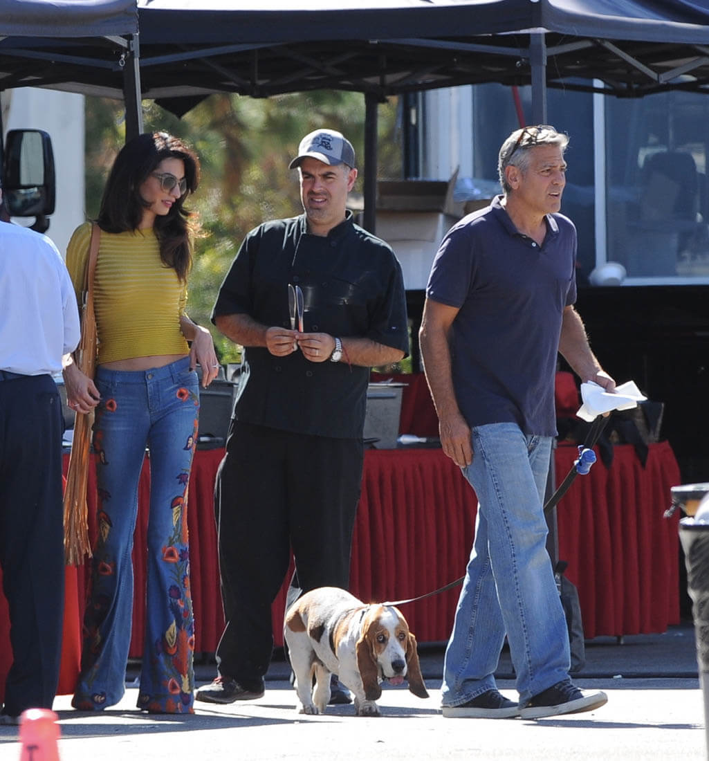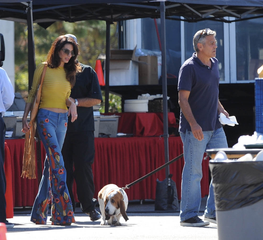 George Clooney is directing a movie called Suburbicon in LA. Yesterday Amal came by set to see him and most of the conversation about this visit was about her clothes (baaaad jeans and an eye roll of a fringe bag) and the fact that they’re holding hands. Whatever. The only conversation worth having about this visit is a conversation about the VIP of these photos: Millie Clooney.