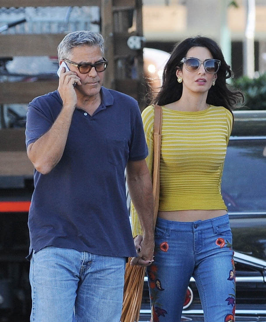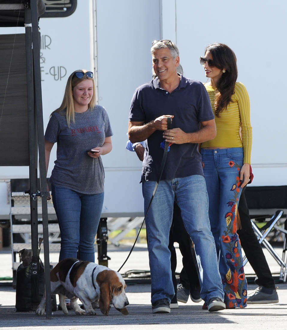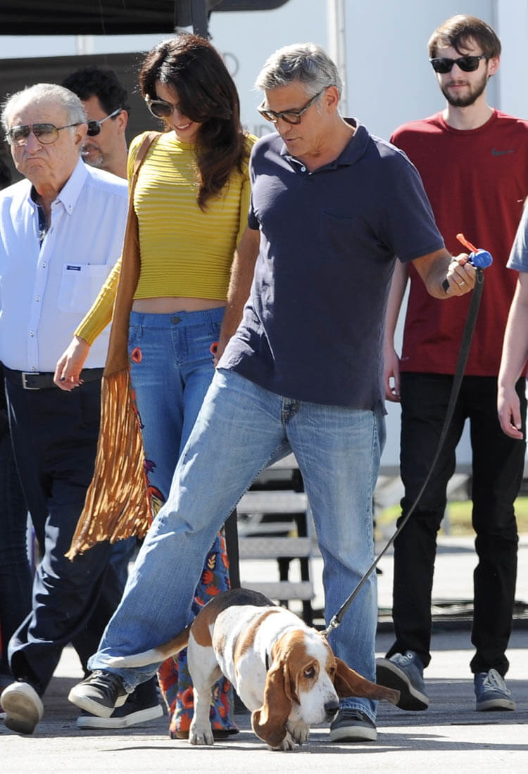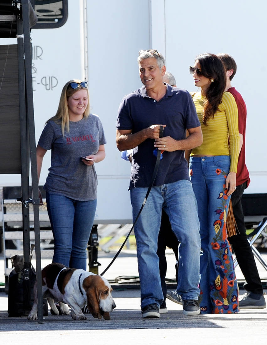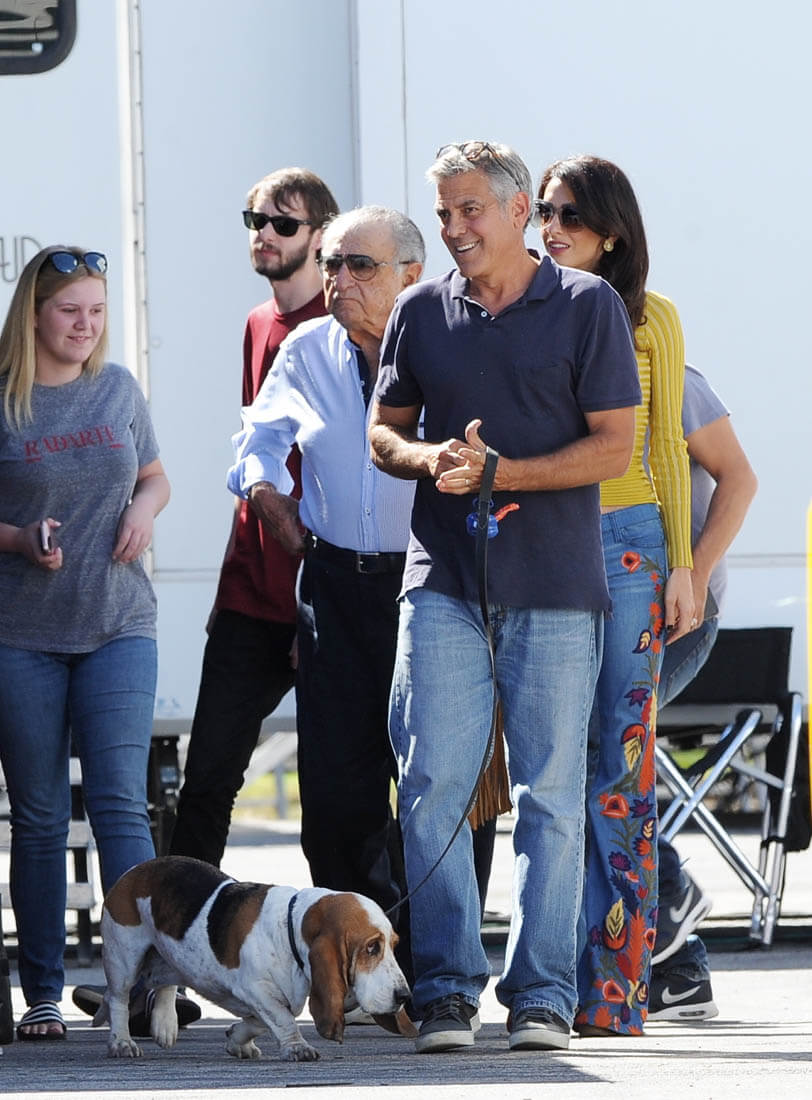 George Clooney is directing a movie called Suburbicon in LA. Yesterday Amal came by set to see him and most of the conversation about this visit was about her clothes (baaaad jeans and an eye roll of a fringe bag) and the fact that they’re holding hands. Whatever. The only conversation worth having about this visit is a conversation about the VIP of these photos: Millie Clooney.