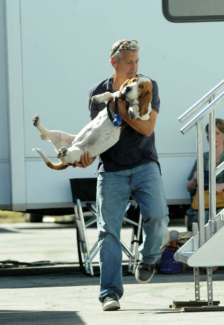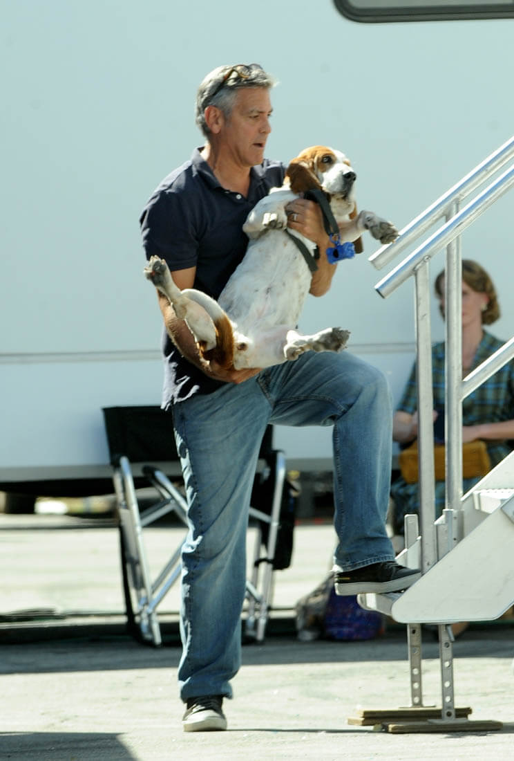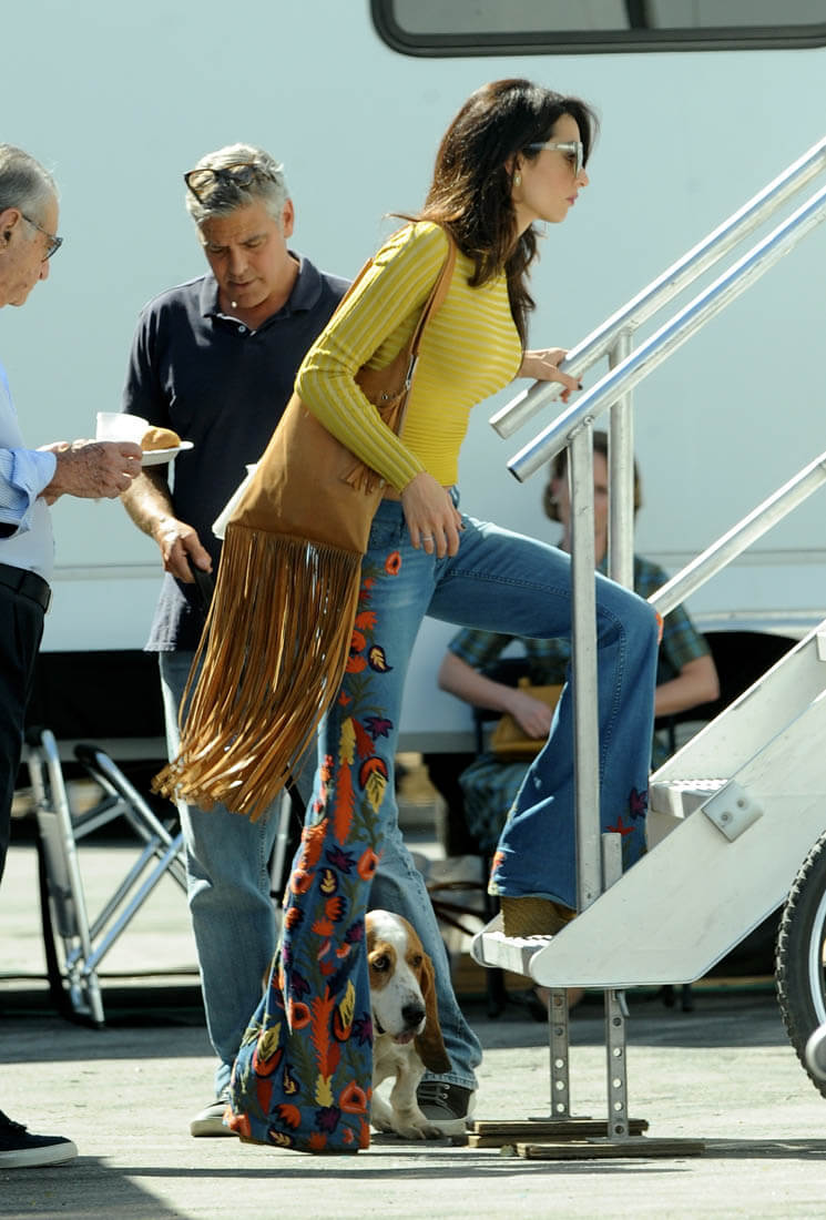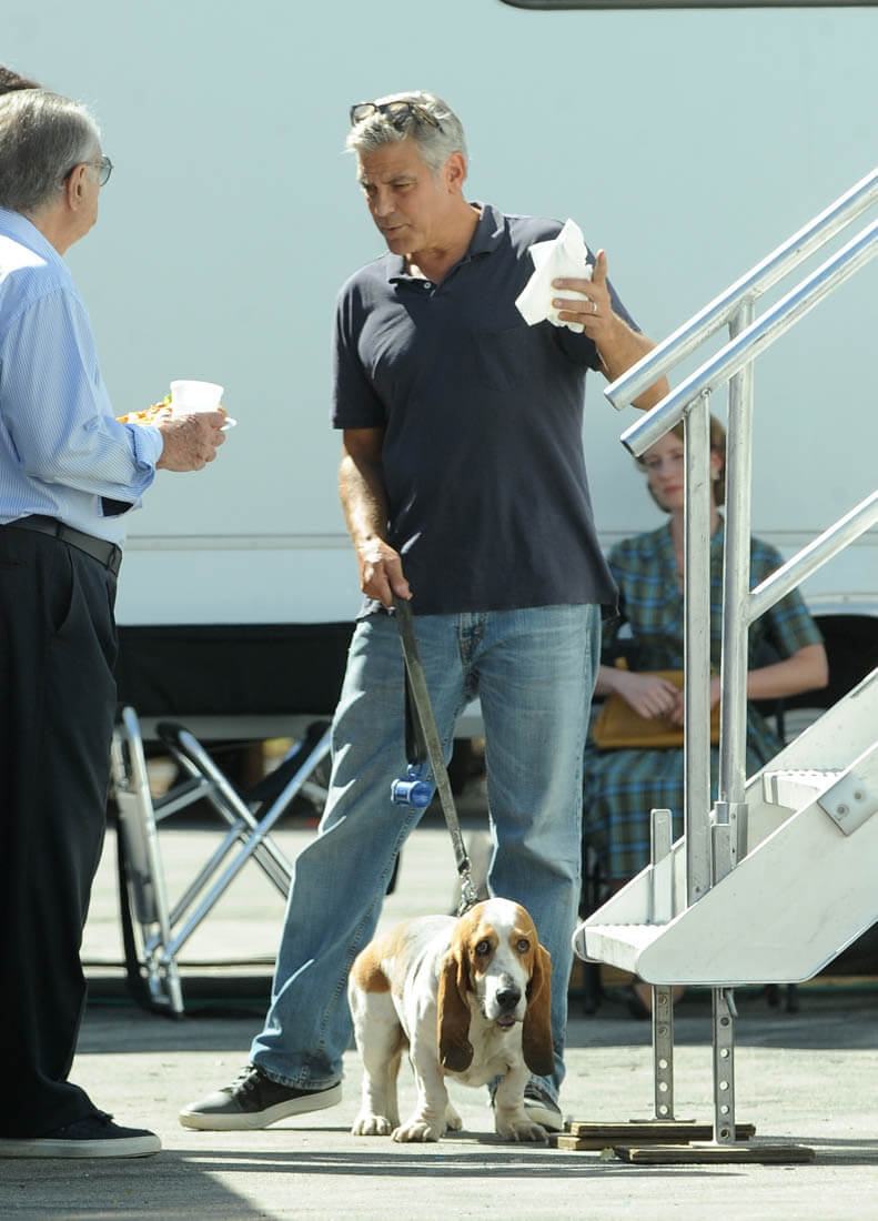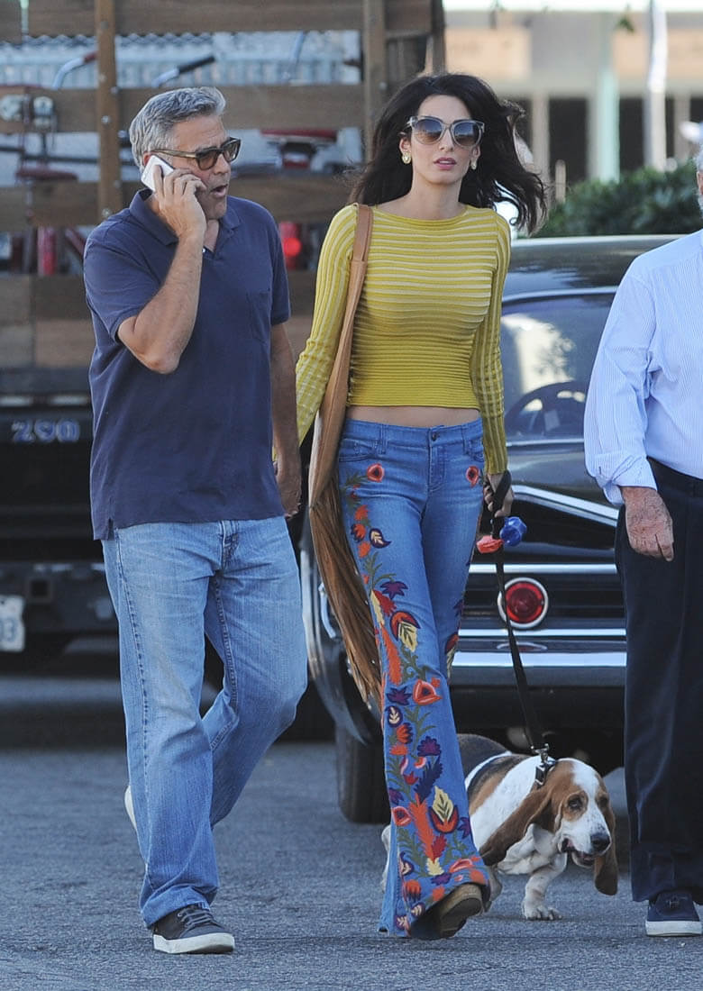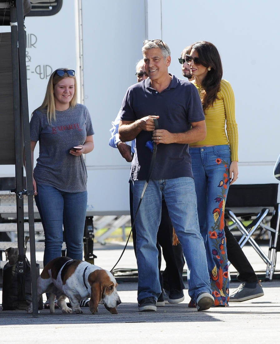 George Clooney is directing a movie called Suburbicon in LA. Yesterday Amal came by set to see him and most of the conversation about this visit was about her clothes (baaaad jeans and an eye roll of a fringe bag) and the fact that they’re holding hands. Whatever. The only conversation worth having about this visit is a conversation about the VIP of these photos: Millie Clooney.