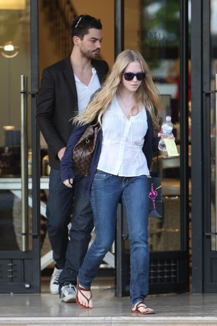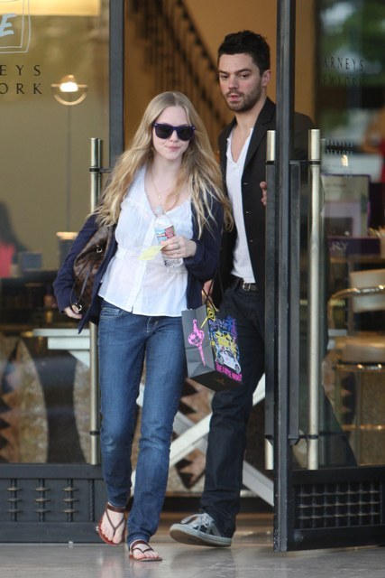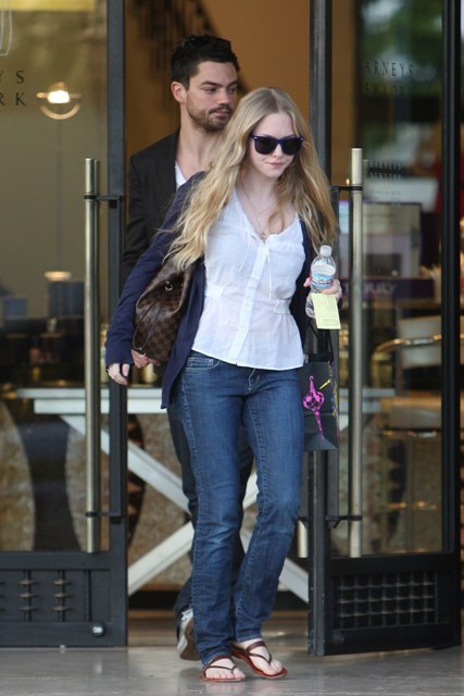 For now though, in that idyllic bloom of early love, Amanda and Dominic are inseparable. Shopping together in Beverly Hills before the Globes, at the Globes, and then again last night at the Big Love Season 3 premiere.