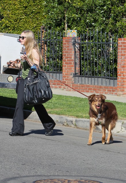 Amanda Seyfried was photographed leaving her personal trainer’s place yesterday with her dog. Now I’m curious what her dog does when she works out. Marcus thinks it’s hilarious to step on me while I’m crunching my abs. Anyway, sorry to digress. The point of this post is not her dog, the point of this post is her boyfriend Ryan Phillippe.