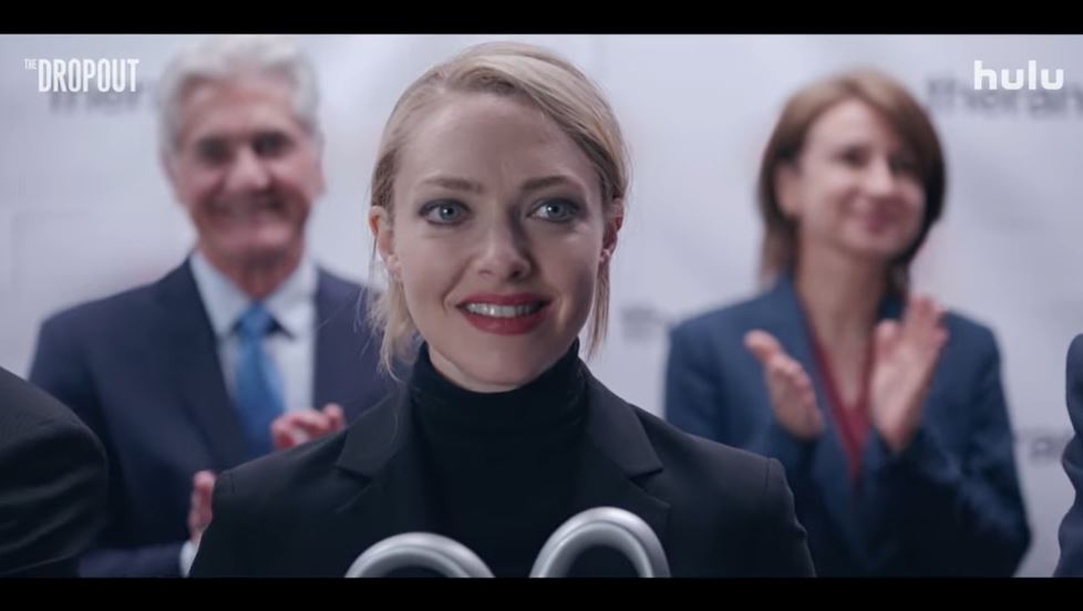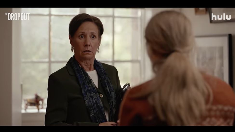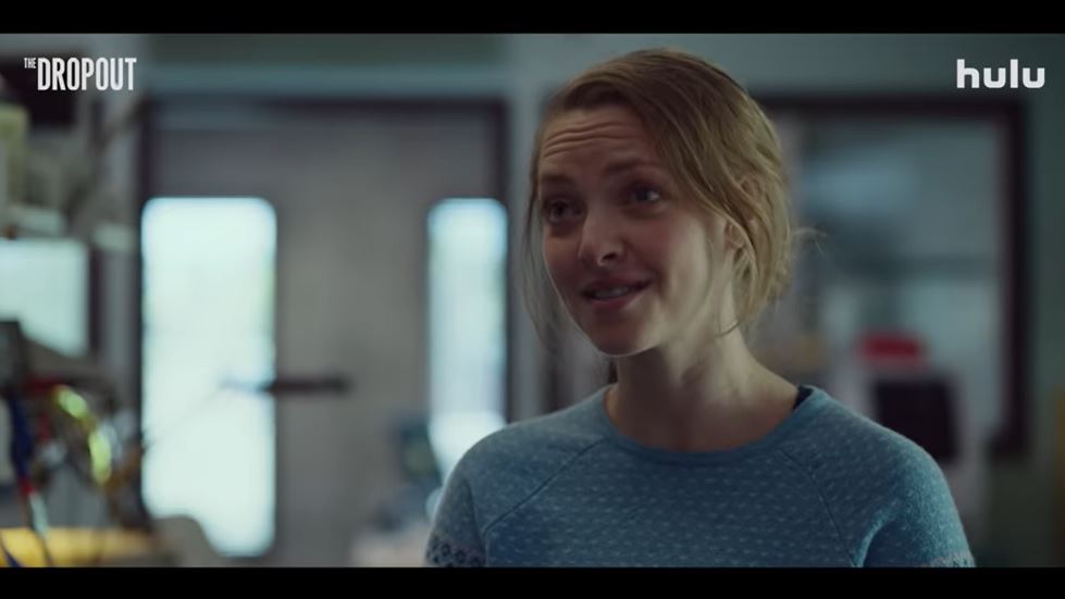It's not that she sounds 100% like Elizabeth Holmes. She doesn’t. But it’s the way Seyfried’s voice deepens at different points in the story, it’s the way we actually see Holmes practicing The Voice to get the pitch just right—The Dropout isn’t pulling punches, they’re flat out calling The Voice fake (which is obvious, but Holmes never admitted it). I love the progression from Stanford-era Holmes speaking normally, sounding like Amanda Seyfried using her natural voice. There’s maybe a little bit of an inflection, a roundness of vowels to Seyfried’s voice, a put-on West Coast accent, if you will. But otherwise, she sounds normal. Then, in the scene where she quotes Yoda at her professor, played by Laurie Metcalf, her voice is a little lower, not deep, exactly, but that inflection is more noticeable. It gets a little deeper still in the clip where she talks about their series B funding, and then we flat-out see her faking The Voice in the mirror.