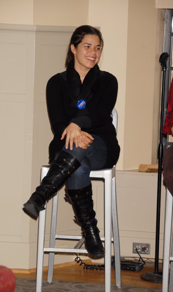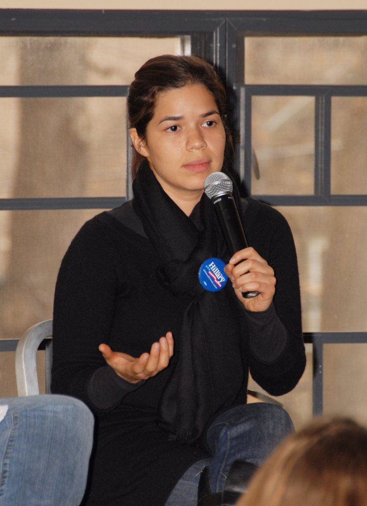 Understatement: There is a serious shortage of positive role modelling in young Hollywood. With the likes of Lilo and Ebola and Britney running around, skeezing it up in an effort to become the next Pamela Anderson, how refreshing to see someone like America Ferrera not shaving her pootie and putting it up for consumption. Or engaged in photo opp after photo opp with her dogs at the gym angling for a career.