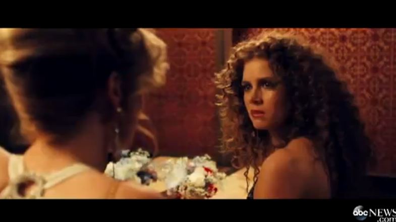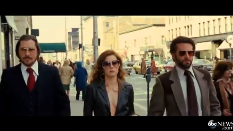 So here’s your first preview of American Hustle, directed by David O Russell, his follow-up to Silver Linings Playbook, with many of his regulars returning to work for him including Oscar winners and nominees Christian Bale, Jennifer Lawrence, Amy Adams, Bradley Cooper, and Jeremy Renner. This, you remember, is the film for which Coop had to have his hair permed. But, really, his curls just blend into the crazy hair landscape of the whole movie. Bale has hilarious hair too. And Renner. And the women go big as well. It’s amazing. All of it. The wide lapels, the cleavage, the lipstick, the gold chains, it’s all amazing.