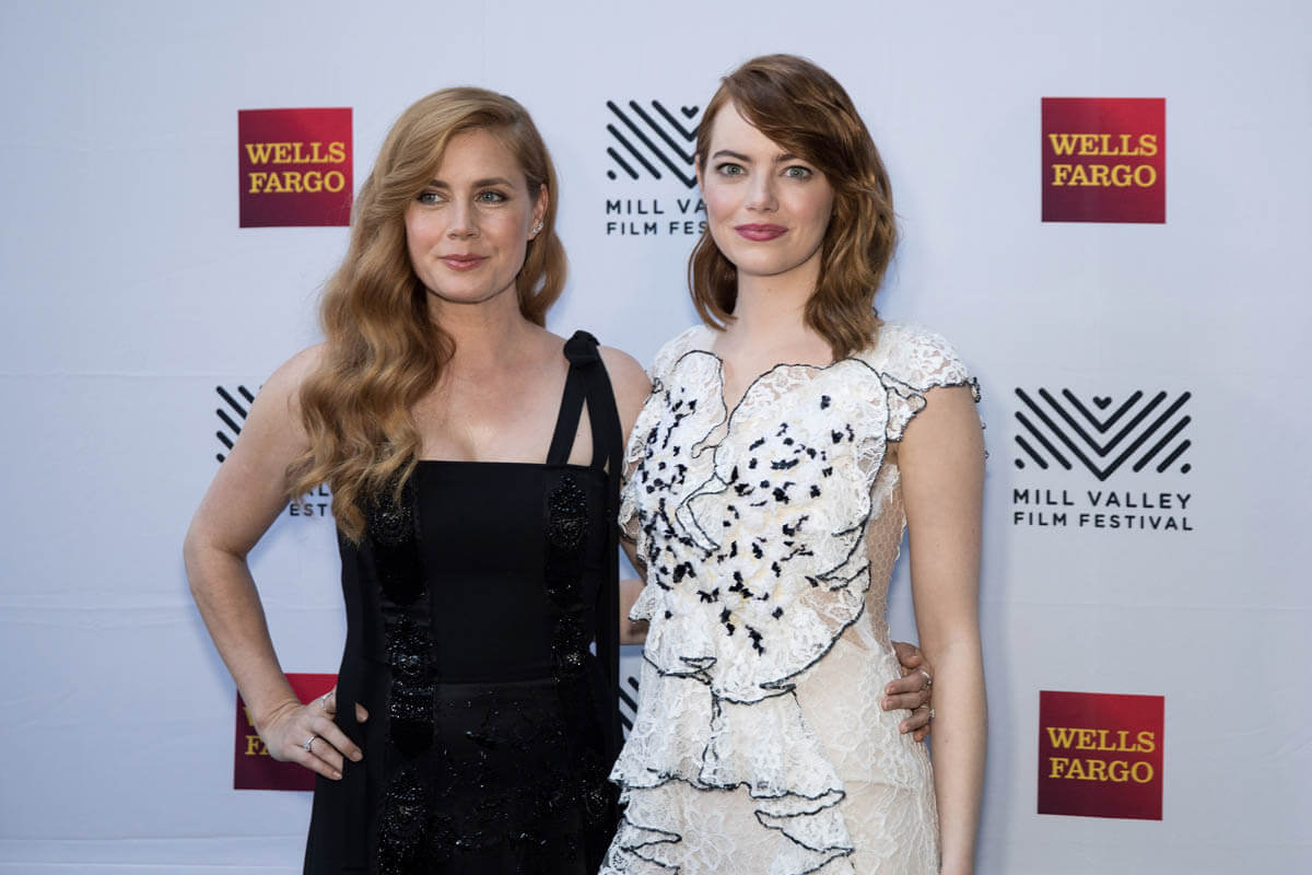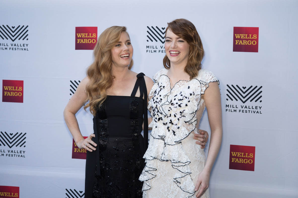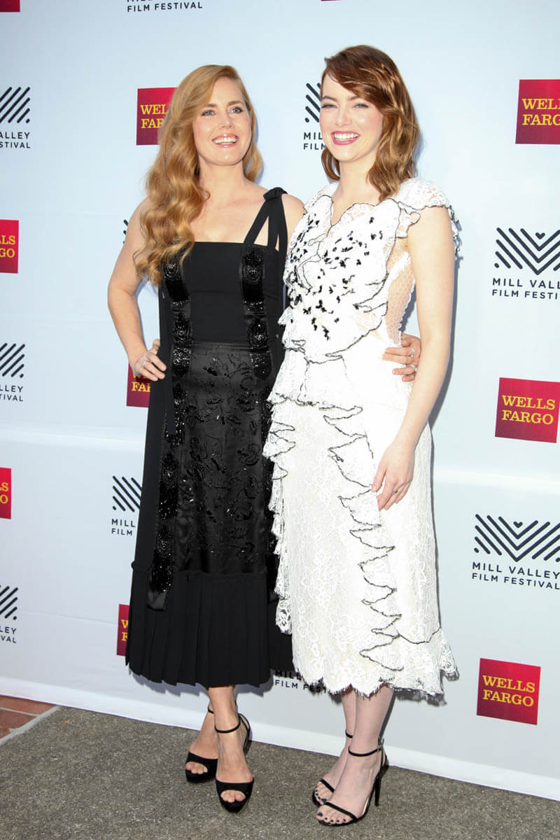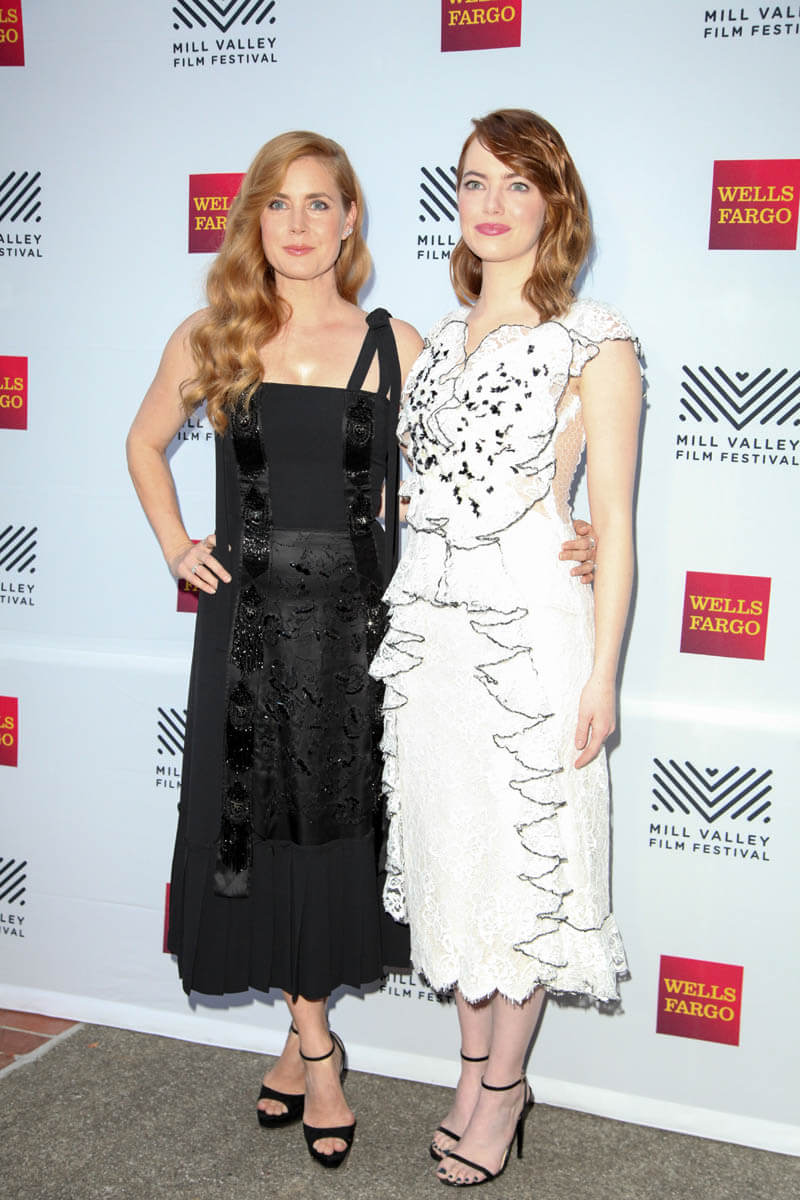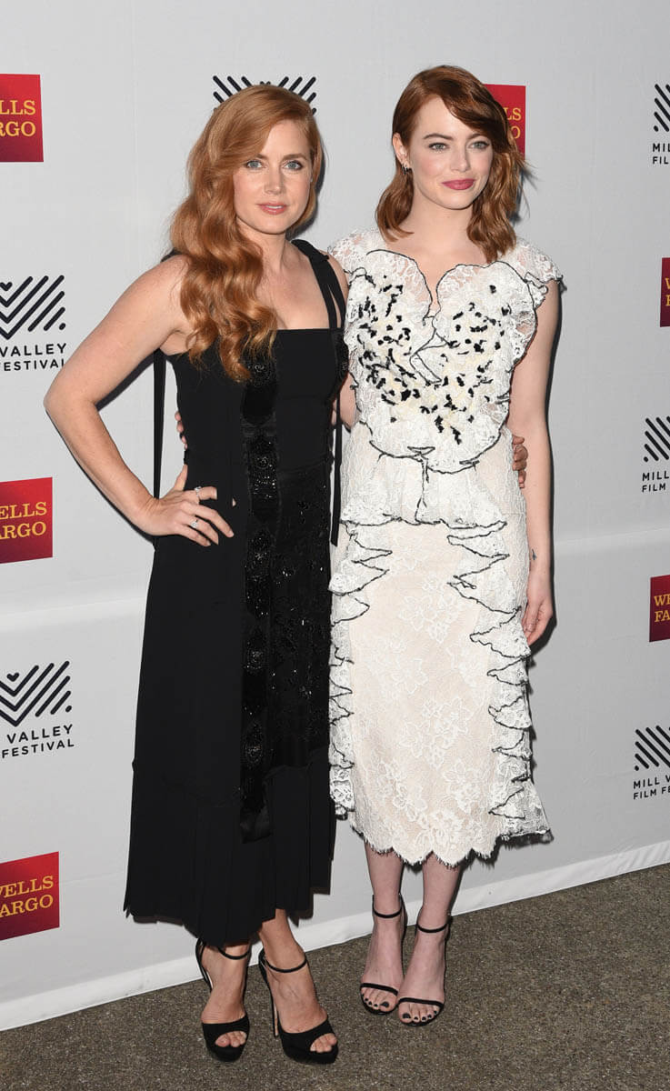 After the Venice Film Festival and TIFF, Emma Stone emerged as the current frontrunner for Oscar Best Actress for her work in La La Land. Amy Adams also generated some buzz for her performances in Nocturnal Animals and Arrival. We’re still four months away but we’re well into award season now and both Emma and Amy were together last night at the Mill Valley Film Festival. Given the momentum she’s had so far, Emma will likely be hitting every stop she can. And Amy too. Look at them, side by side. Even their hair is styled similarly, with one side pinned back.