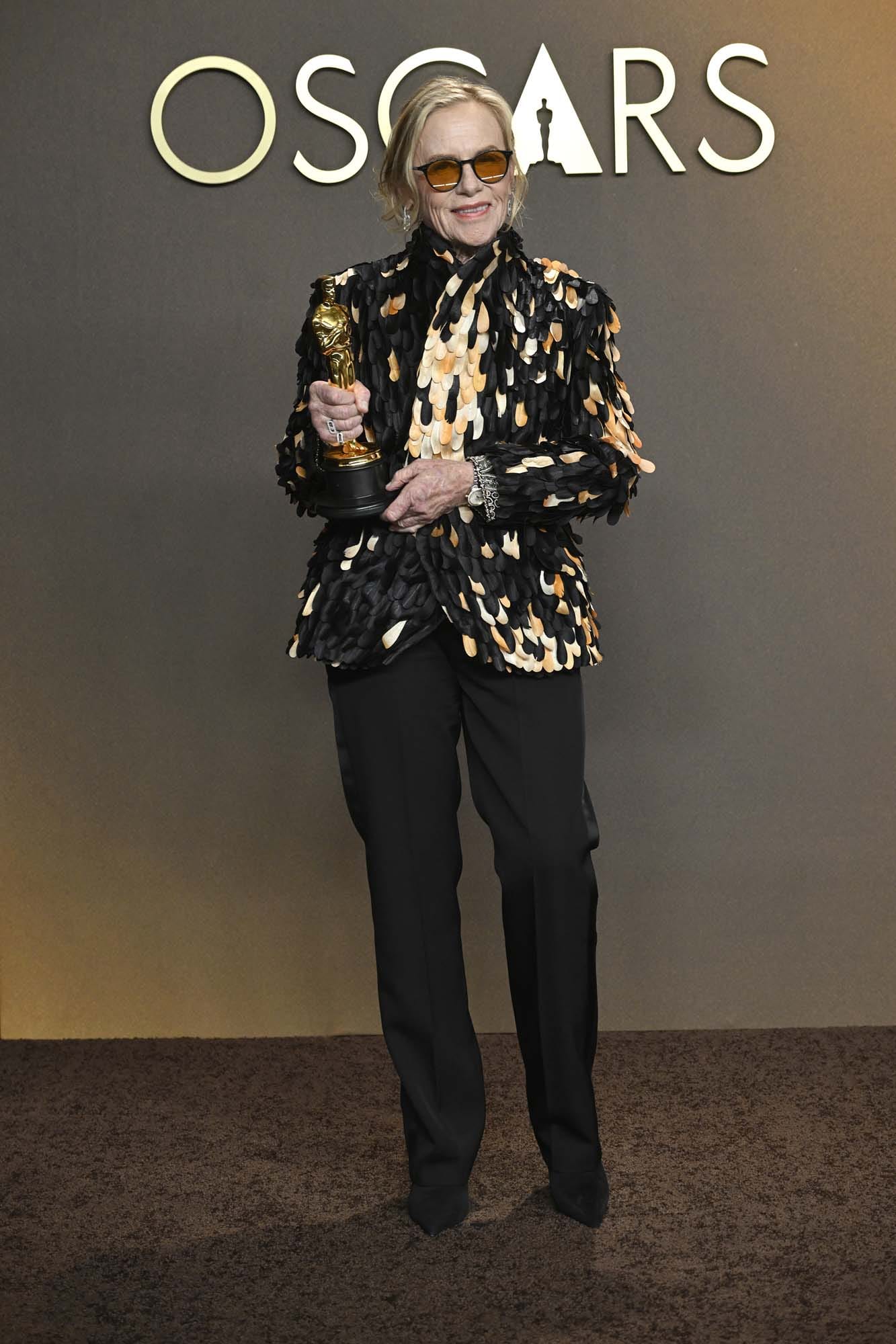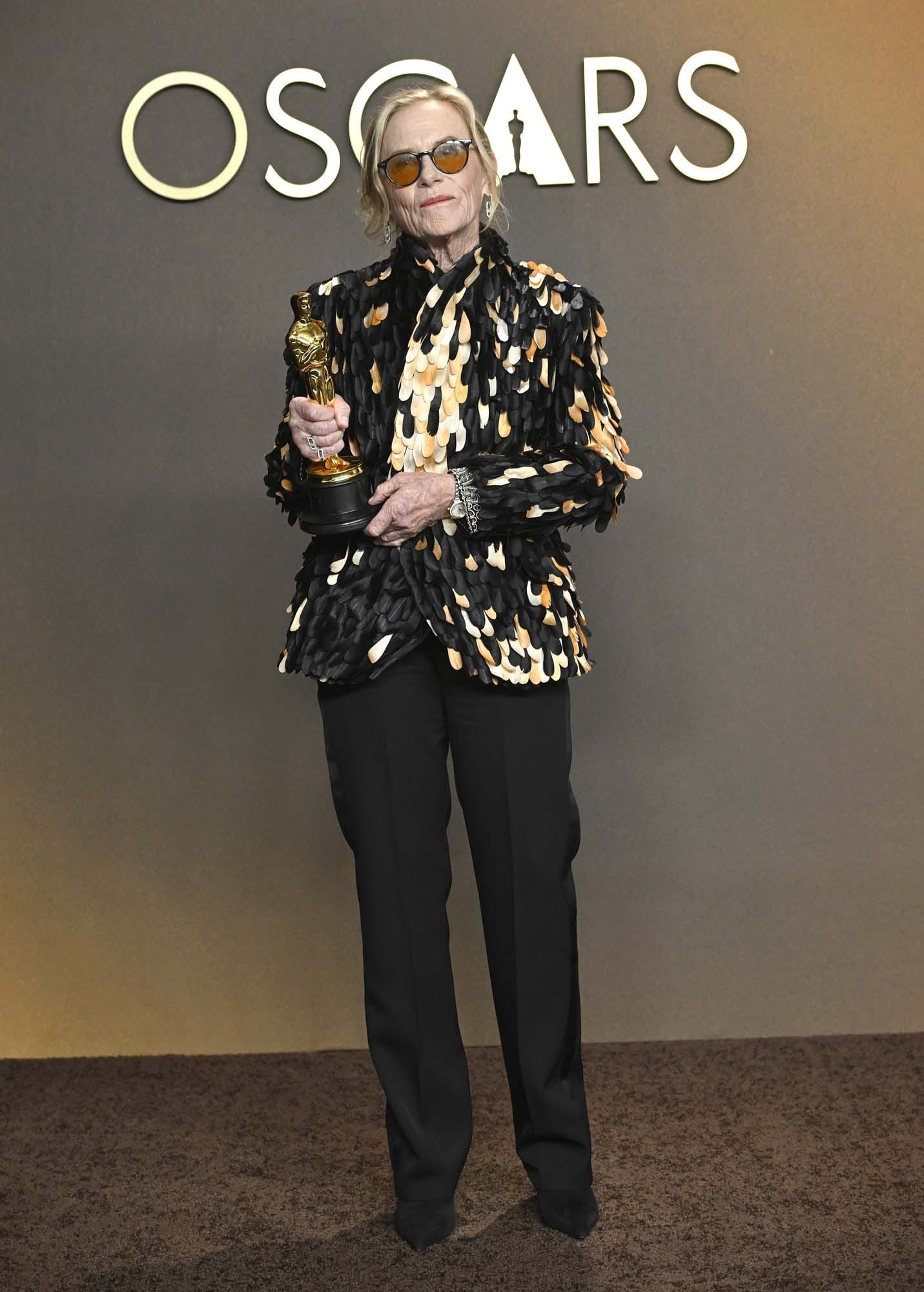 She was flabbergasted at the whim of the fates, delighted that the destiny had curved in her direction, finally, but at this point in her life, processing it as a bonus and not a necessity. Award season has been a fun experience for her – you can tell by how much flair she’s had in her red carpet choices, saving the best of all her looks, a pure streak of pantsuits, for Oscar night.