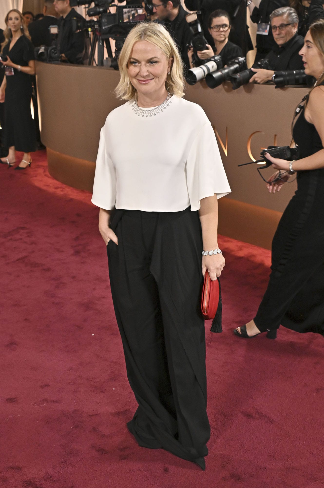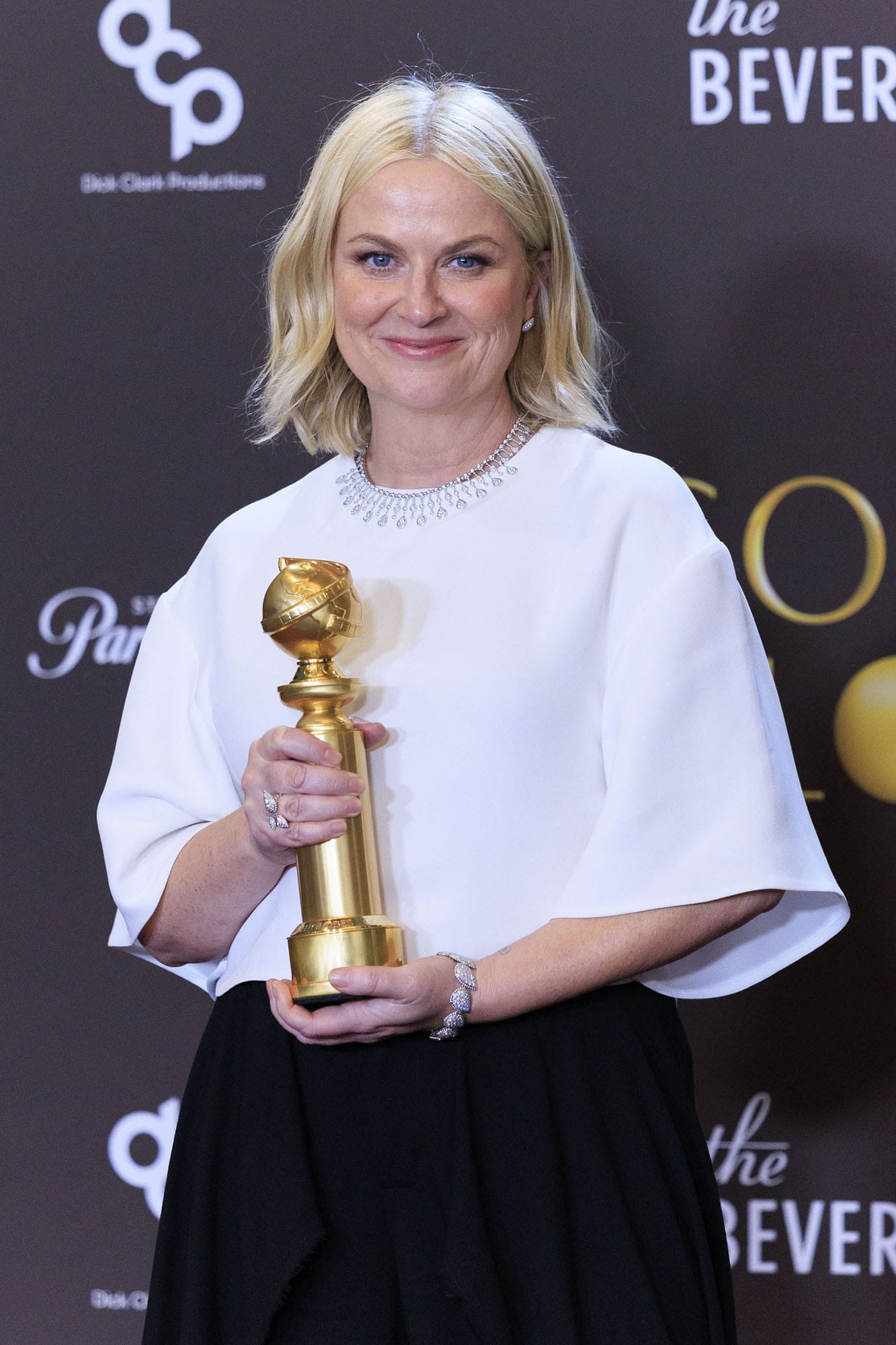 Amy Poehler at the 83rd Annual Golden Globes held at The Beverly Hilton on January 11, 2026 in Beverly Hills, California