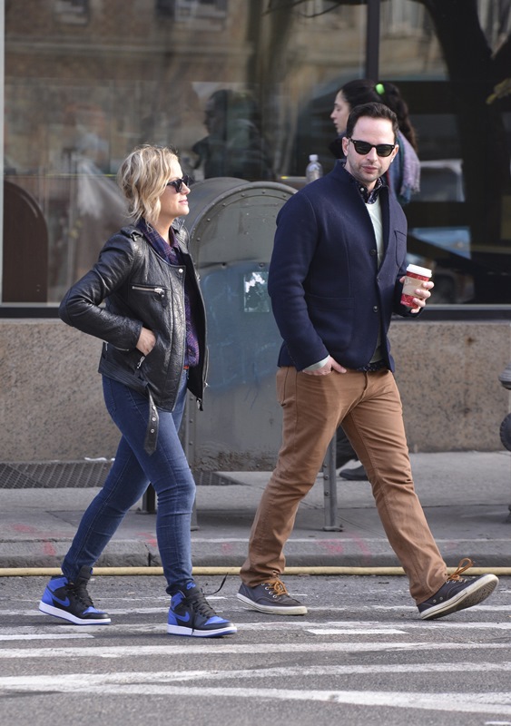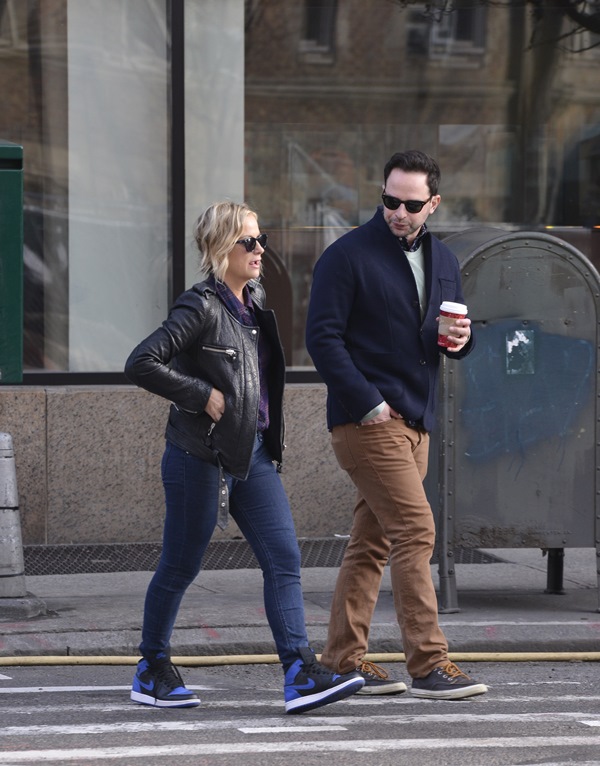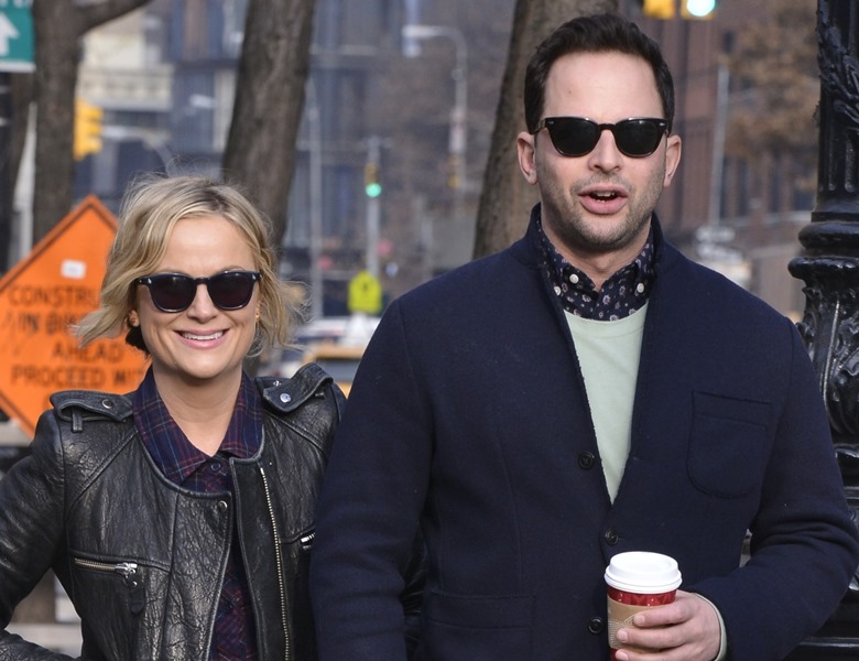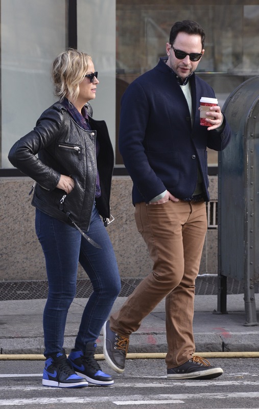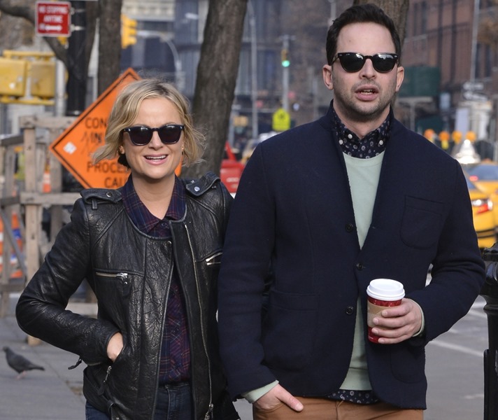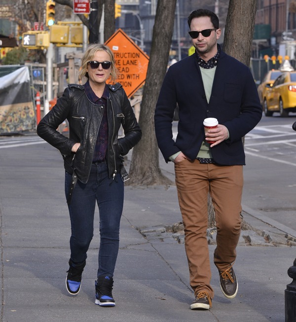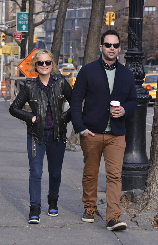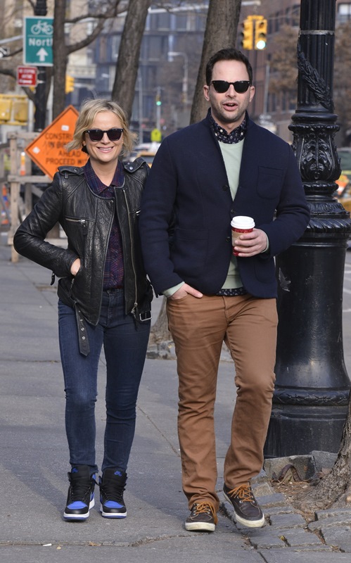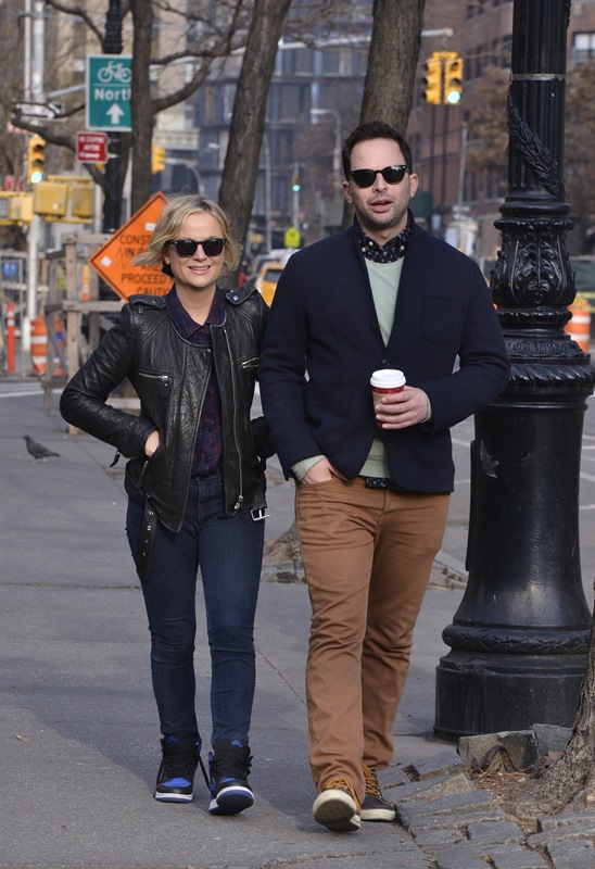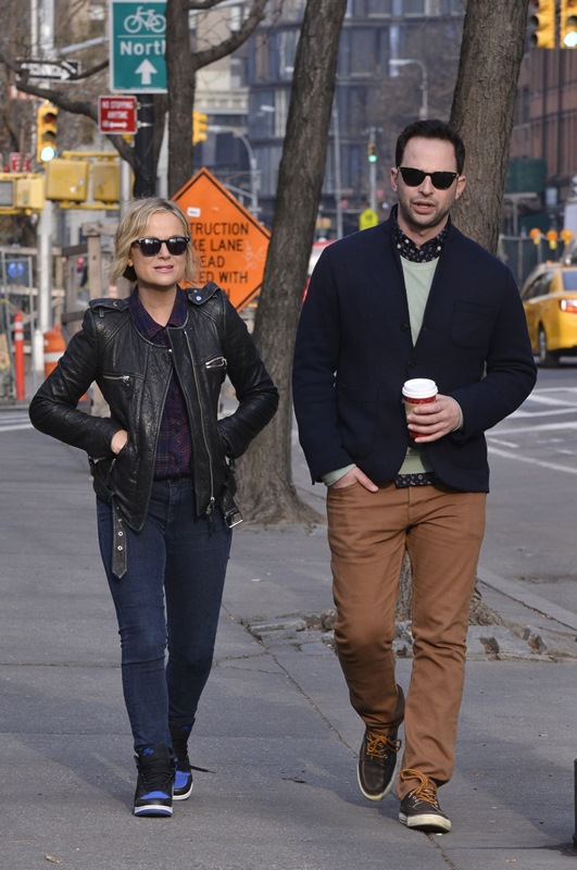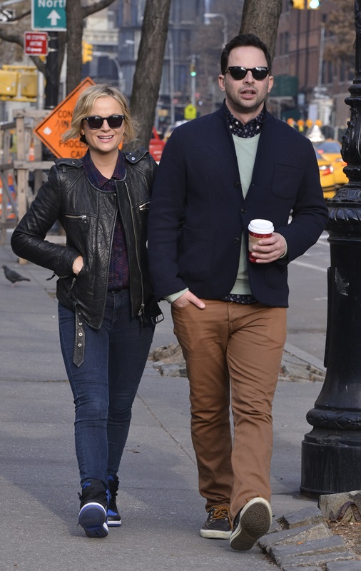Amy Poehler went for a walk in New York with her boyfriend Nick Kroll yesterday. They’ve been dating at least 6 months now. Did you know he had such smart style? Look at that shirt underneath his sweater – sharp!