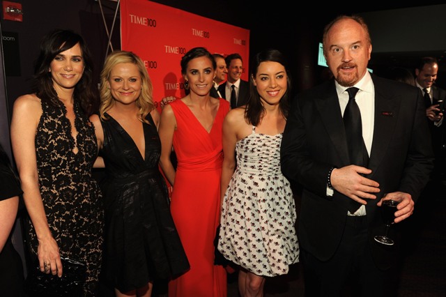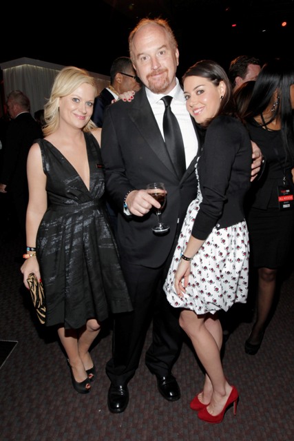 Amy looks great. I’m really into how low her dress is cut at the Time party. I’m also really, really into the white blouse she was wearing last week with Aubrey Plaza at the premiere of Five Year Engagement. What do you think she and Louis CK talk about?