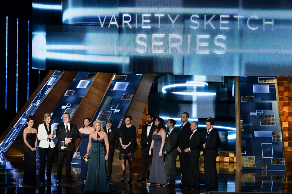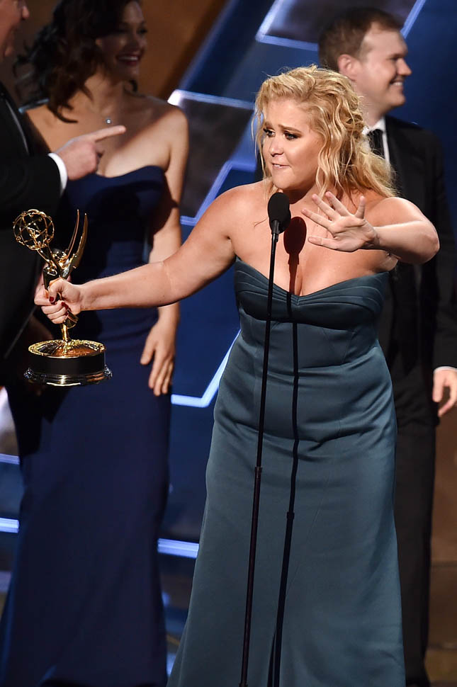 Amy Schumer picked up her first Emmy for Inside Amy Schumer, for Outstanding Variety Sketch Series. This has been Schumer’s year, from the breakout success of Inside to a hit feature film, to #squadding with Jennifer Lawrence, and now she caps it off with her first Emmy win. The Emmys hit this one at the right moment. Inside is in its third season but it’s only just opened up to [be available to] a wider audience, so they’re getting it right alongside everyone else, and not two years later. And Schumer seemed legit surprised to win—when she says she didn’t prepare a speech, I believe her, and her semi-rambling thank yous to everyone from her head writer, Jessi Klein, to the makeup artist who gave her “this smoky eye” was incredibly endearing. Although she did say something about only having two more years left, so does that mean she intends to shut down Inside after five years? That makes me like her even more—too many TV shows go on too long.