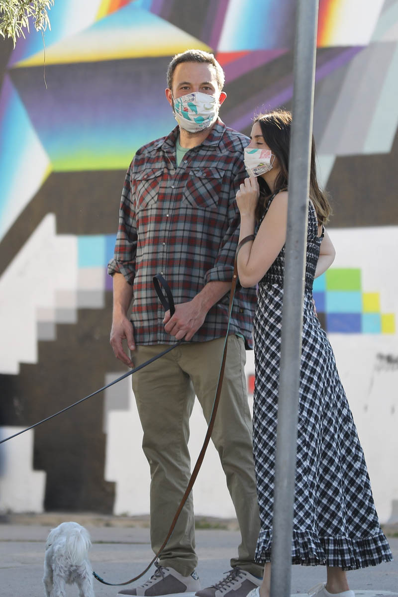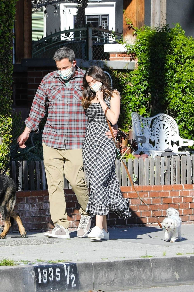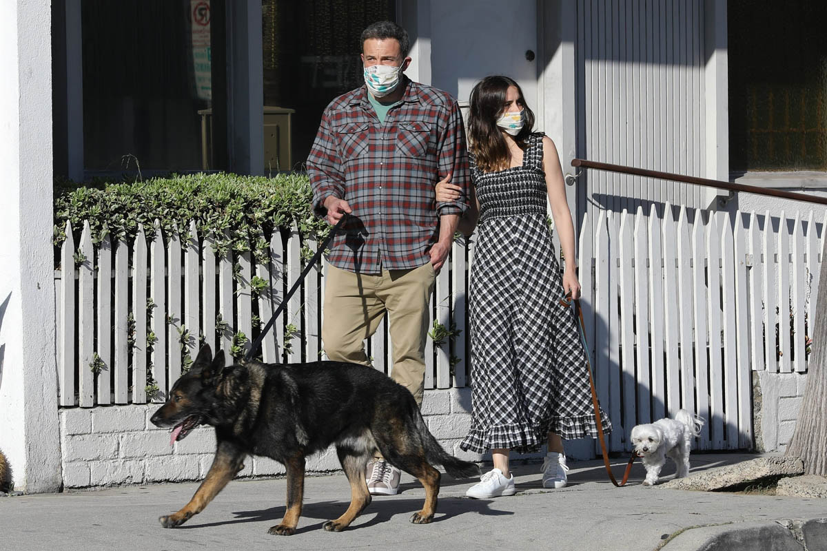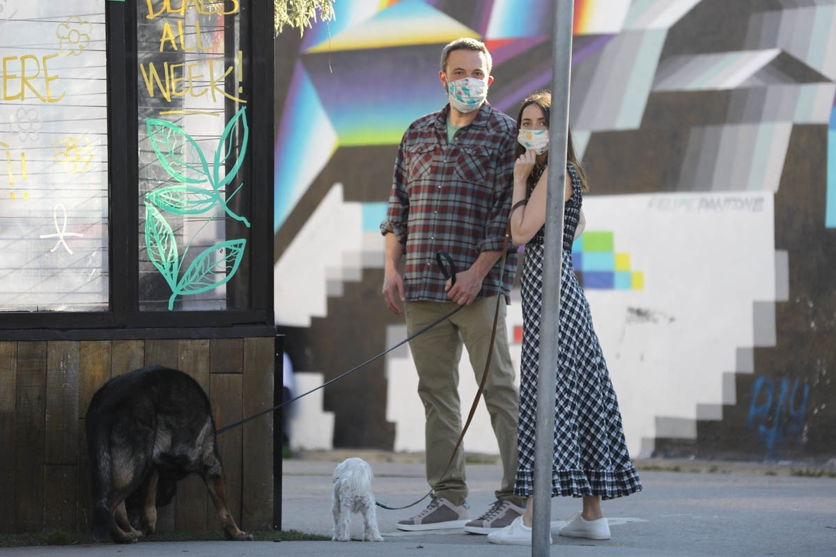 Ana de Armas & Ben Affleck get early morning coffee and walk their dogs together while finally wearing masks when outside. (April 10, 2020) pic.twitter.com/V85b2tBJiF